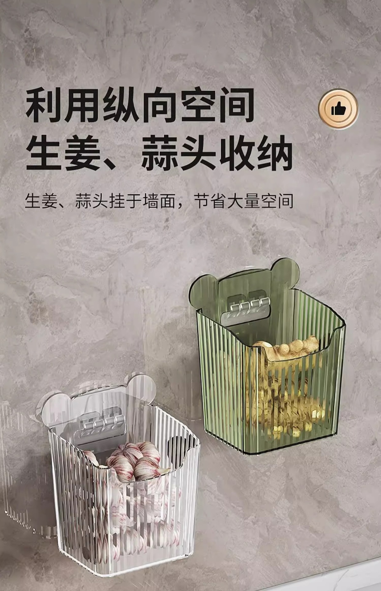 24 새로운 벽에 장착 된 생강 마늘 저장 상자 주방 생강 마늘 매달린 바구니 ISN 바람 욕실 아크릴 보관 랙스토어 가기