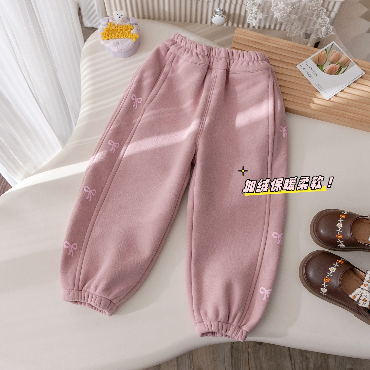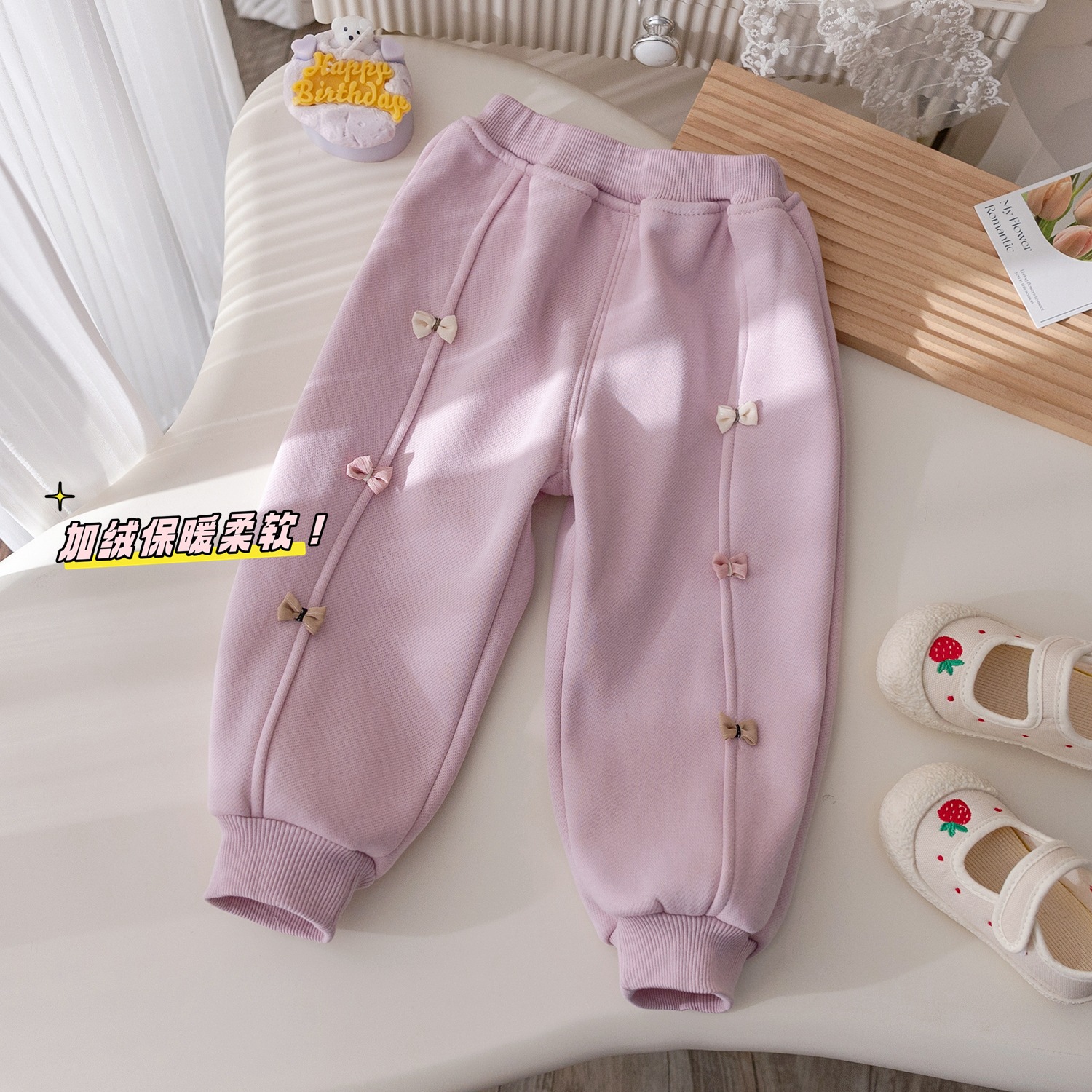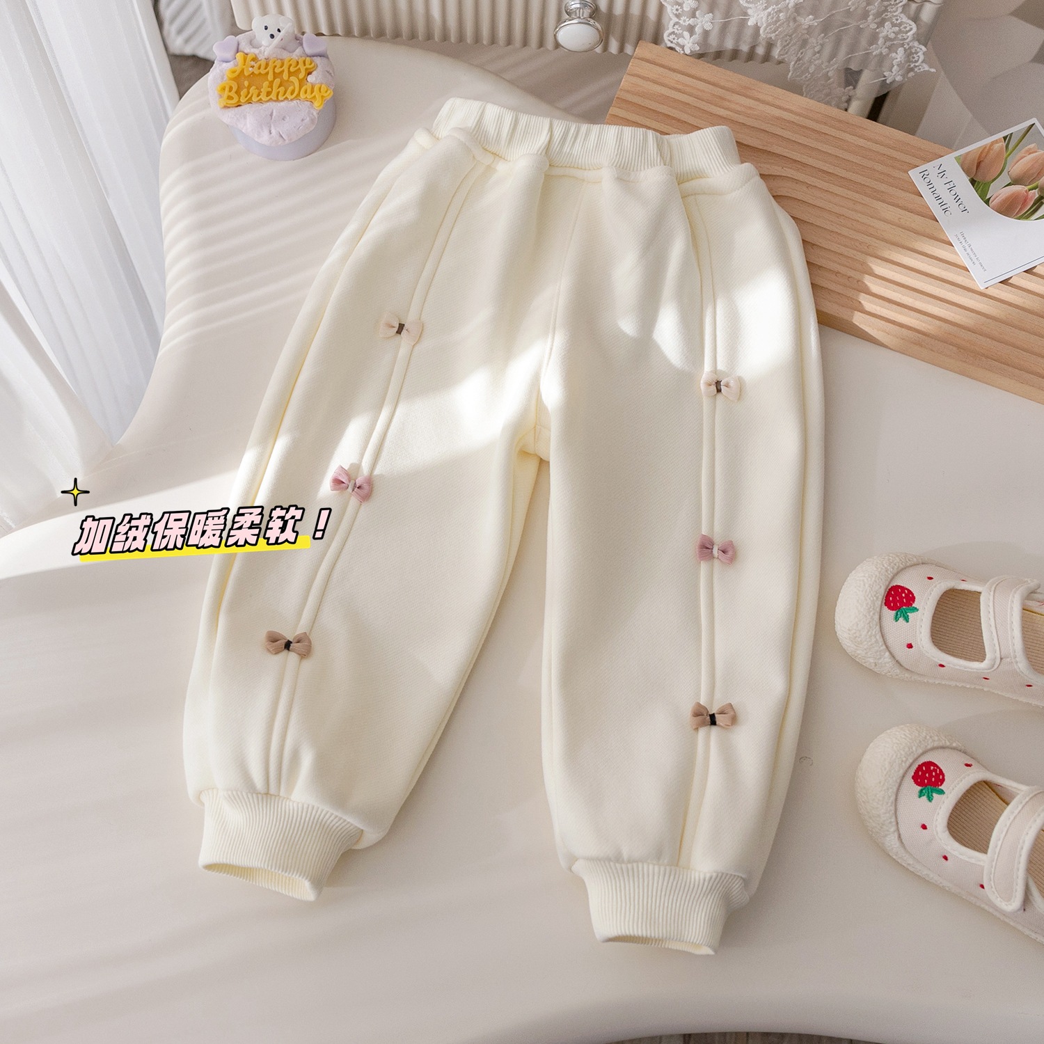 여자 한국 스타일 기모 캐주얼 바지 겨울 달콤한 귀여운 Bowknot 두꺼운 운동복 소녀 겨울 올 매치 바지스토어 가기