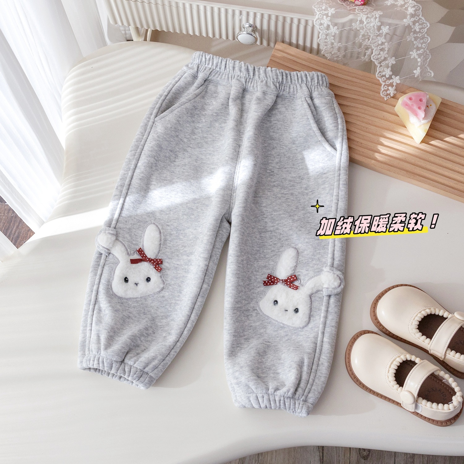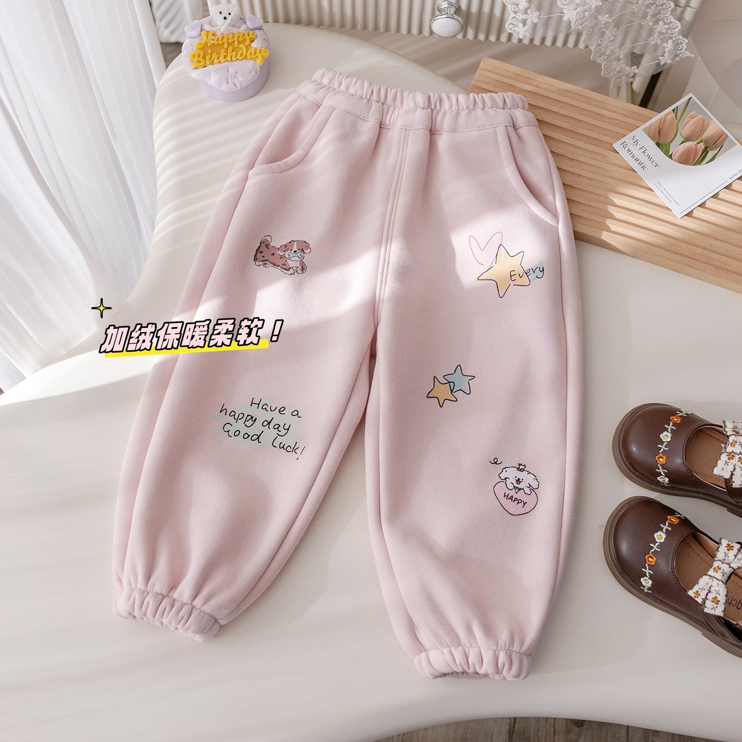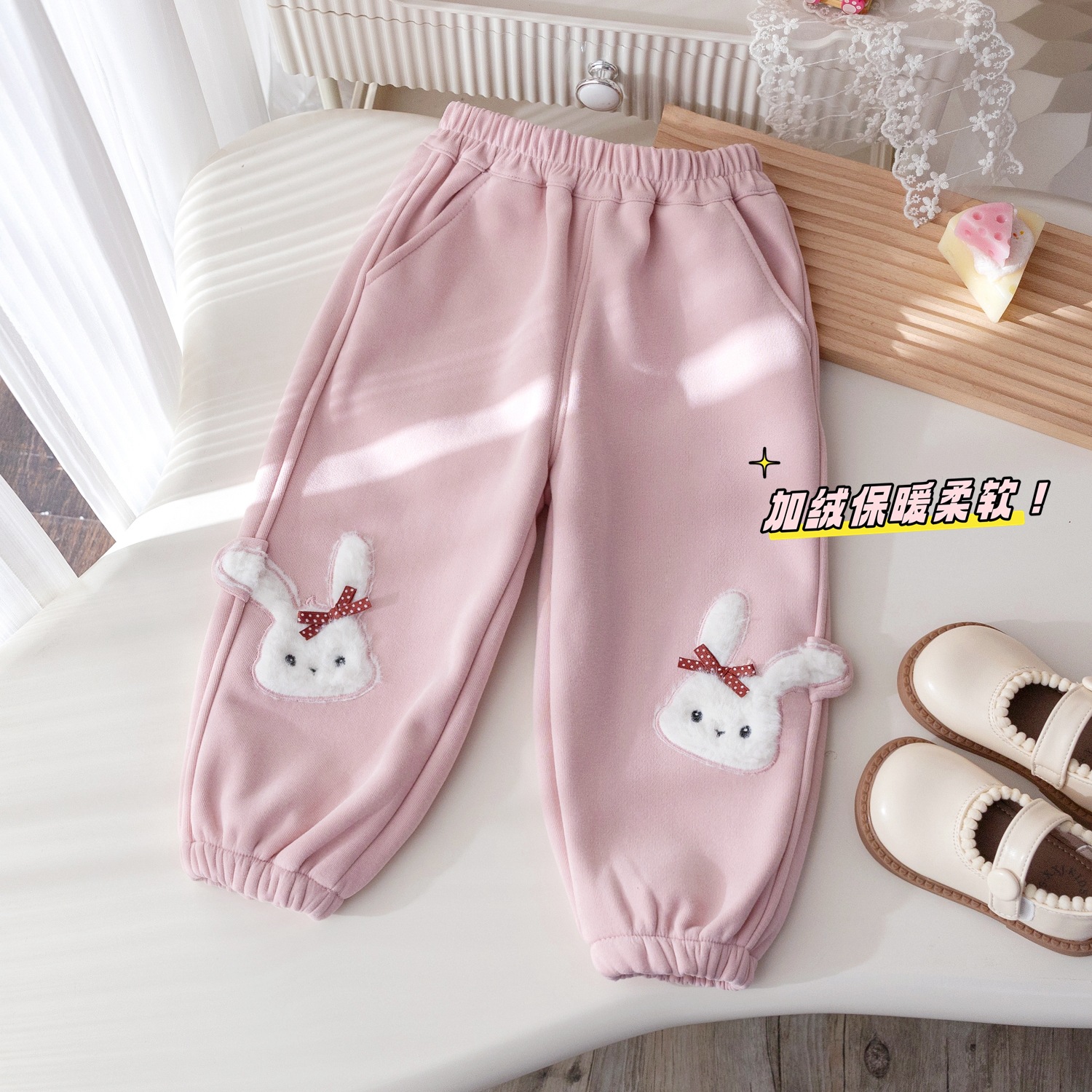 여자 한국 스타일 기모 캐주얼 바지 겨울 달콤한 귀여운 Bowknot 두꺼운 운동복 소녀 겨울 올 매치 바지스토어 가기