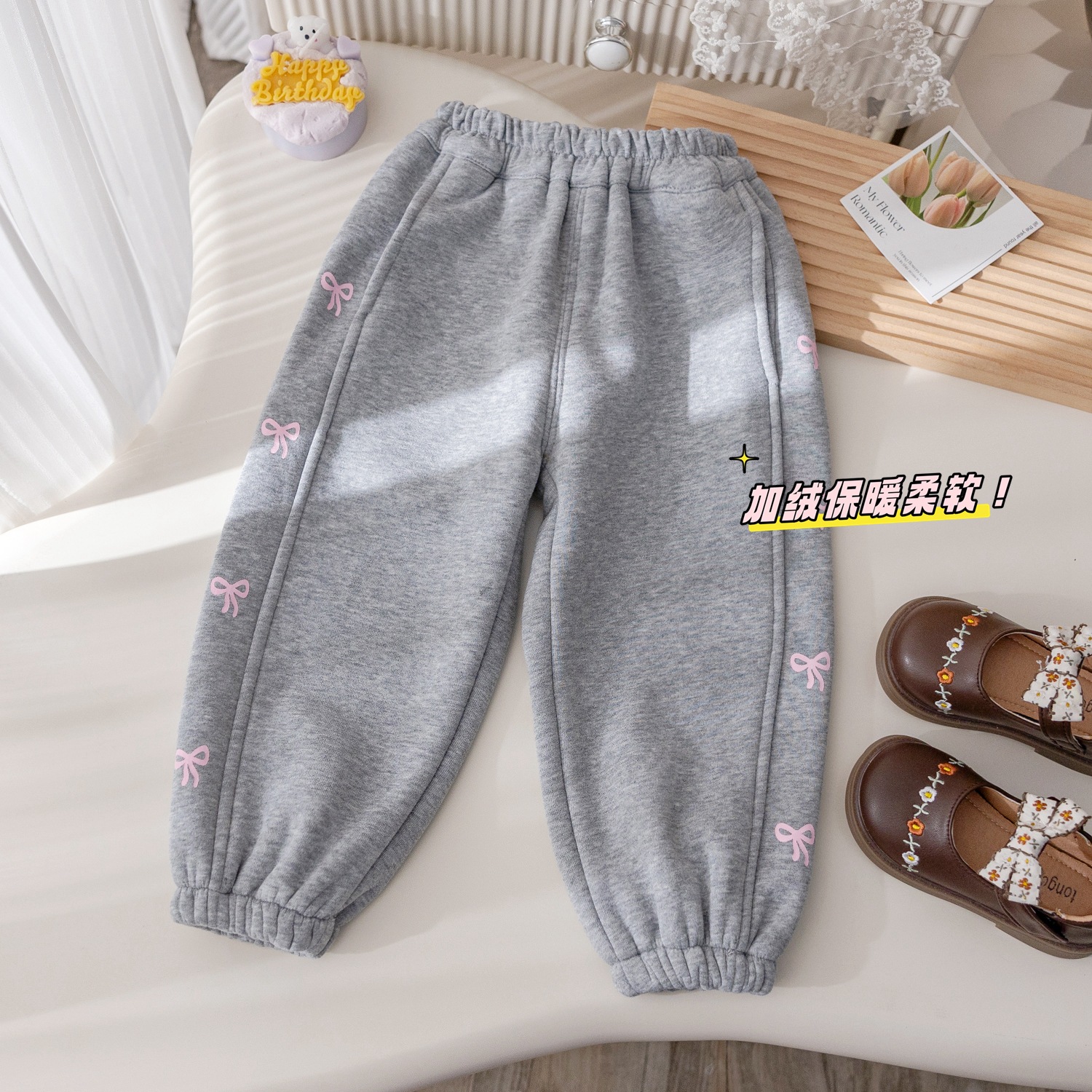 여자 한국 스타일 기모 캐주얼 바지 겨울 달콤한 귀여운 Bowknot 두꺼운 운동복 소녀 겨울 올 매치 바지