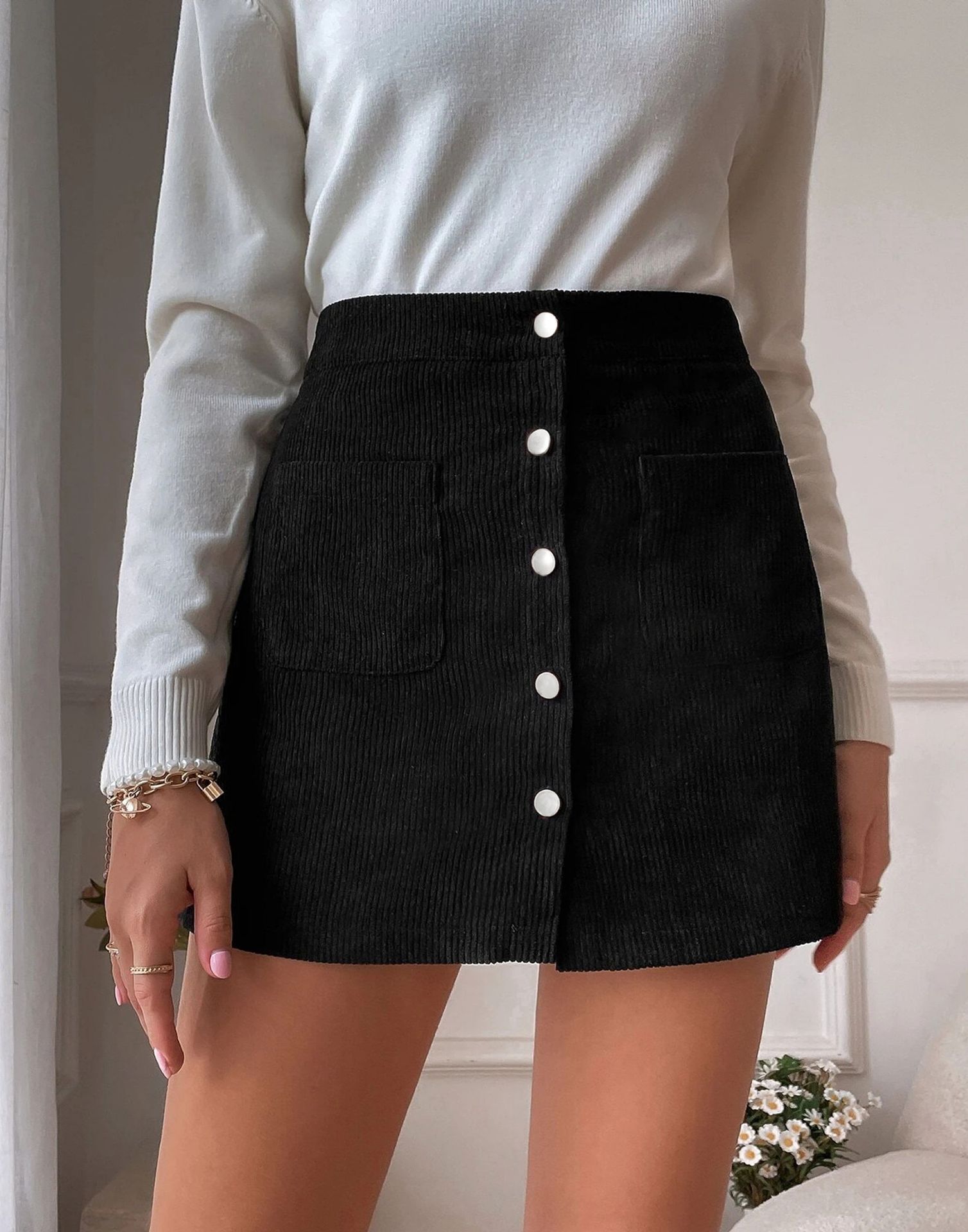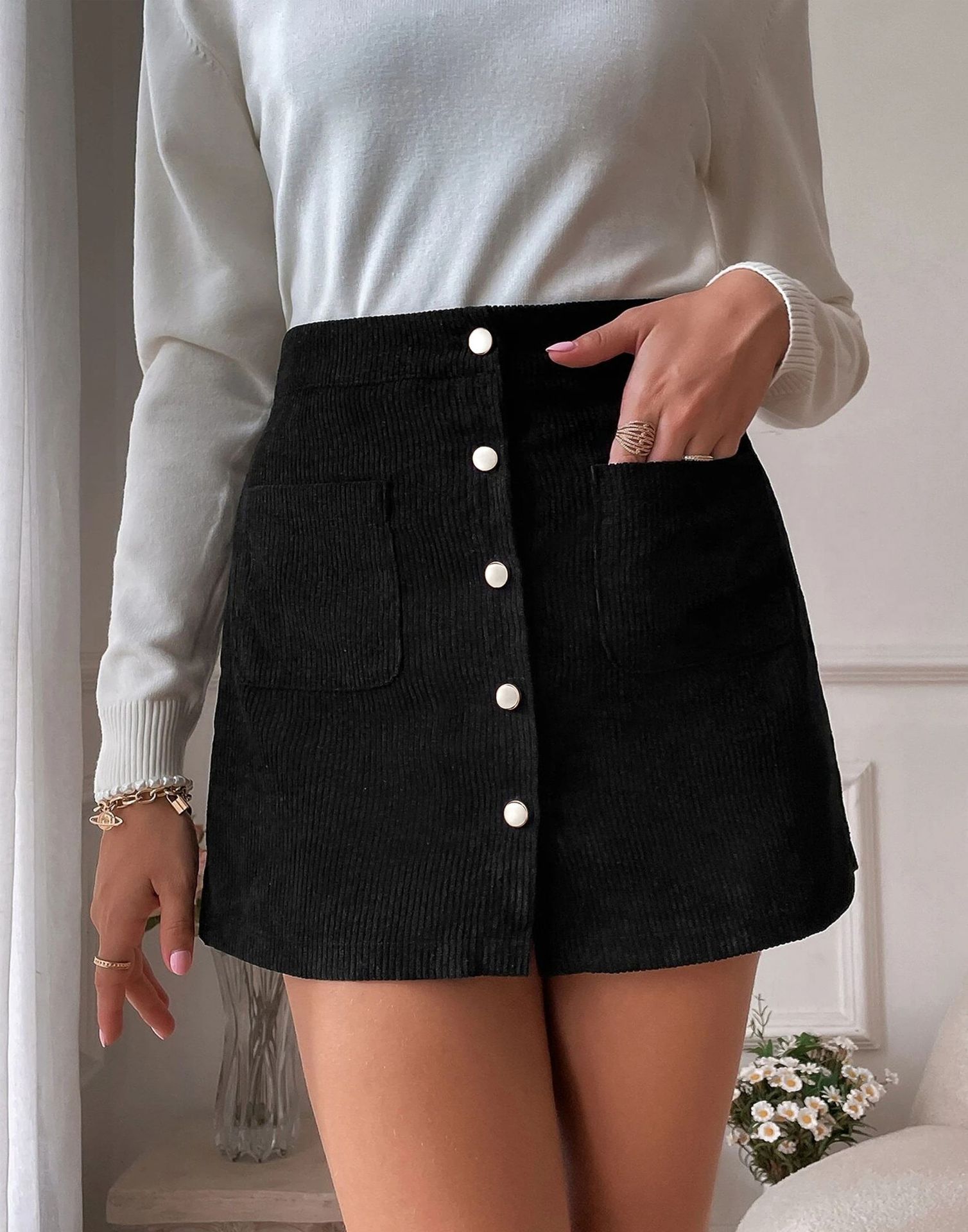 2024 하이 허리 A 라인 쇼트 스커트 새로운 코듀로이 스커트 엉덩이 섹시한 크로스 보더 여성의 기질 우산 스커트스토어 가기
