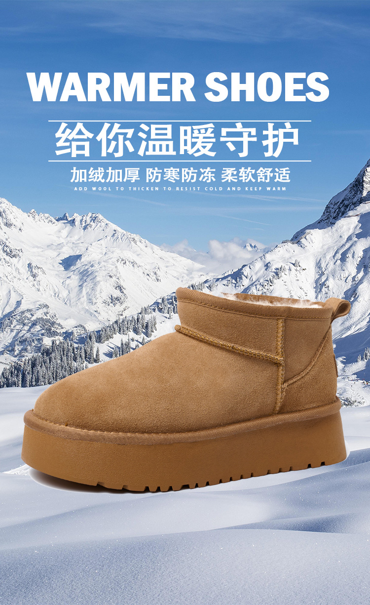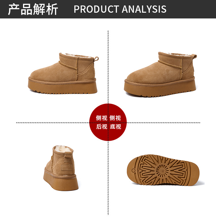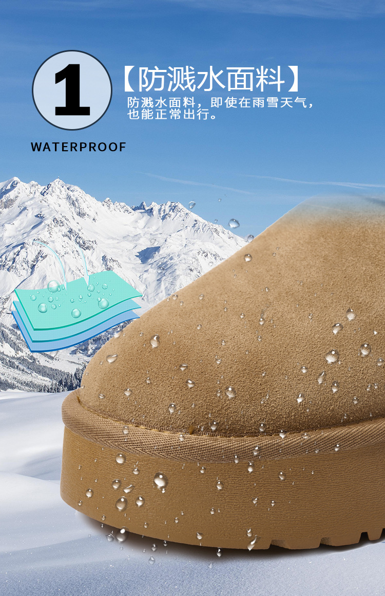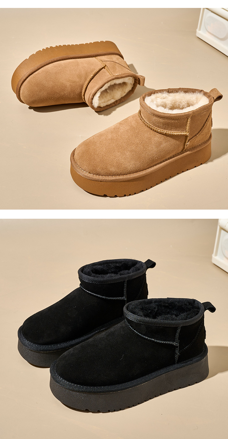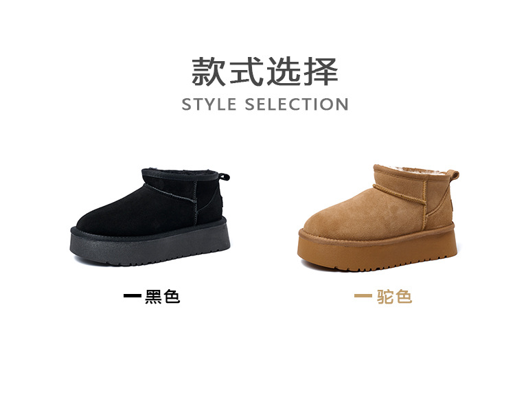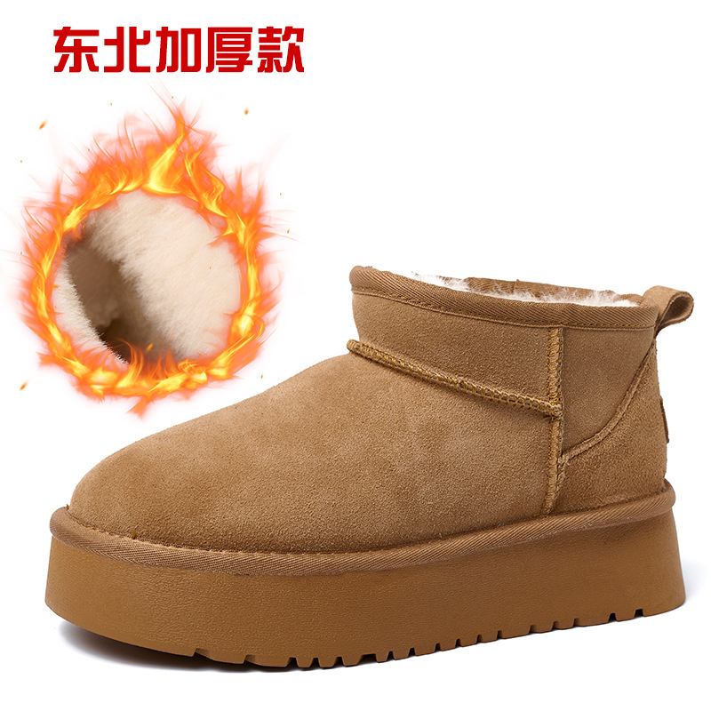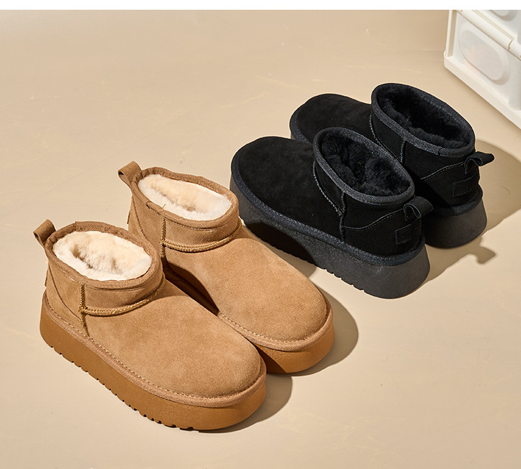 2024 겨울 새 Cowhide 양모 스노우 부츠 편안한 따뜻한 짧은 부츠 야외 냉간 여성 신발 두꺼운 밑창 코튼 부츠 여성스토어 가기