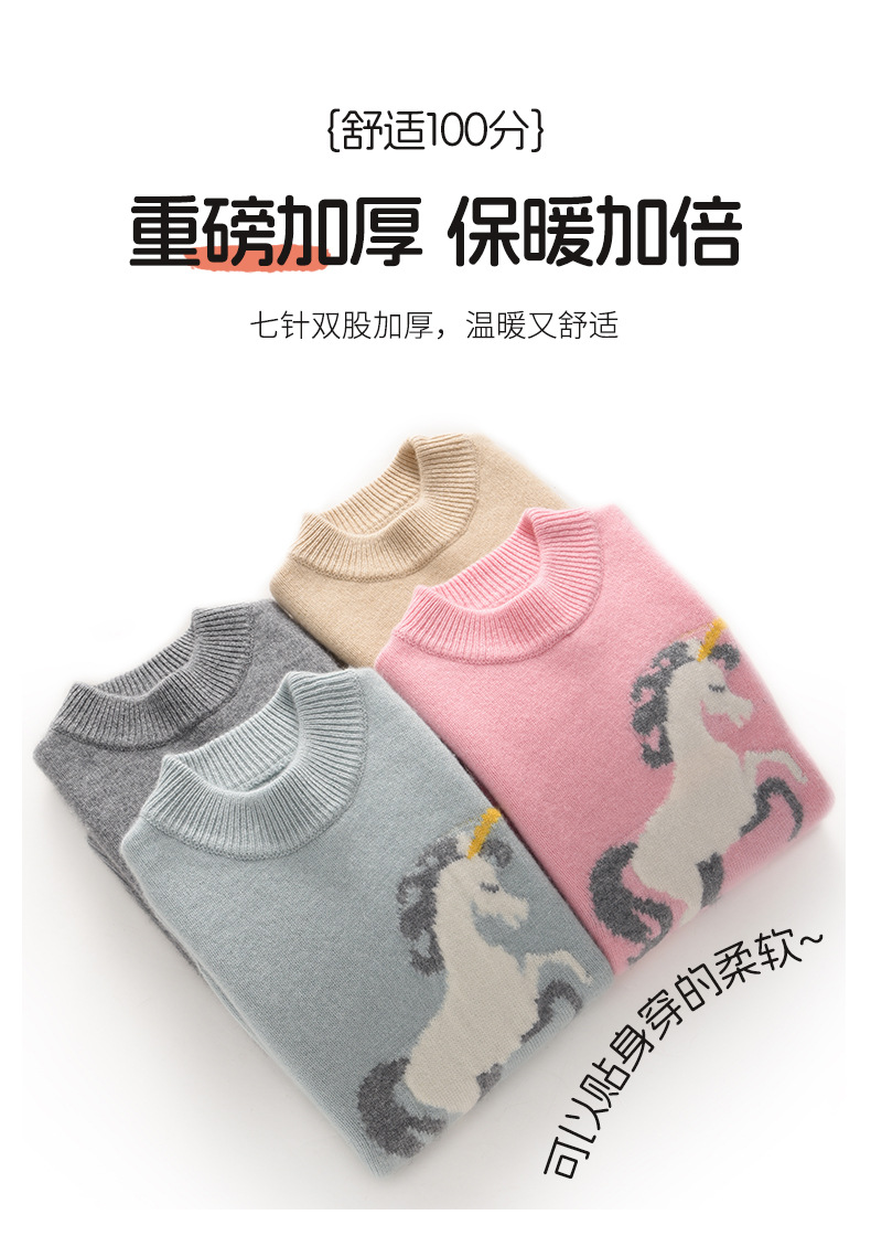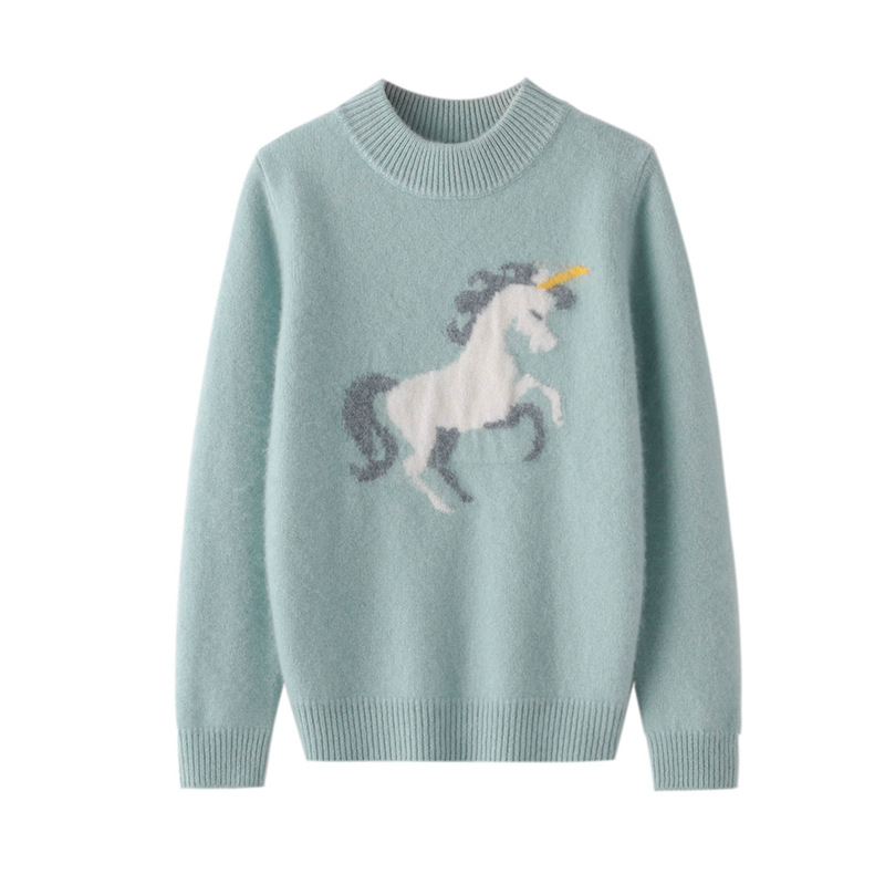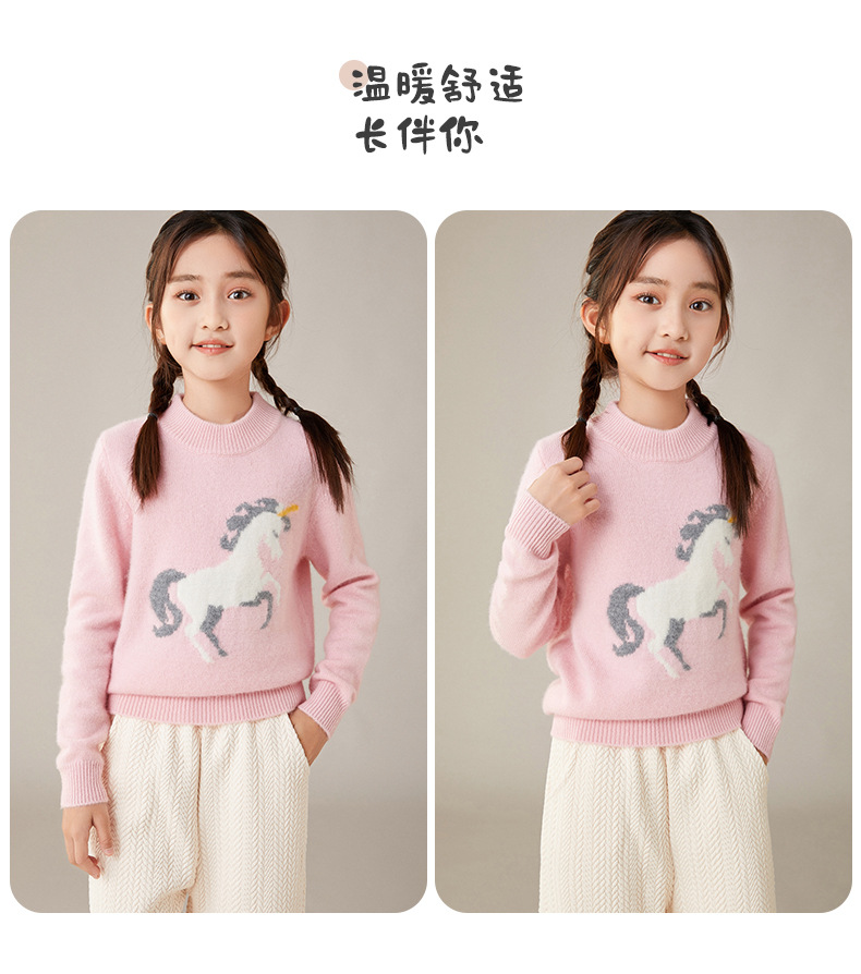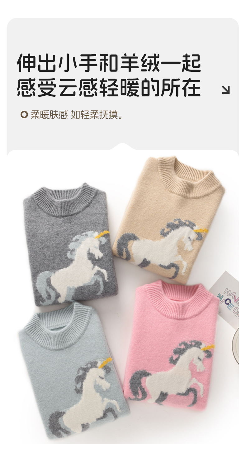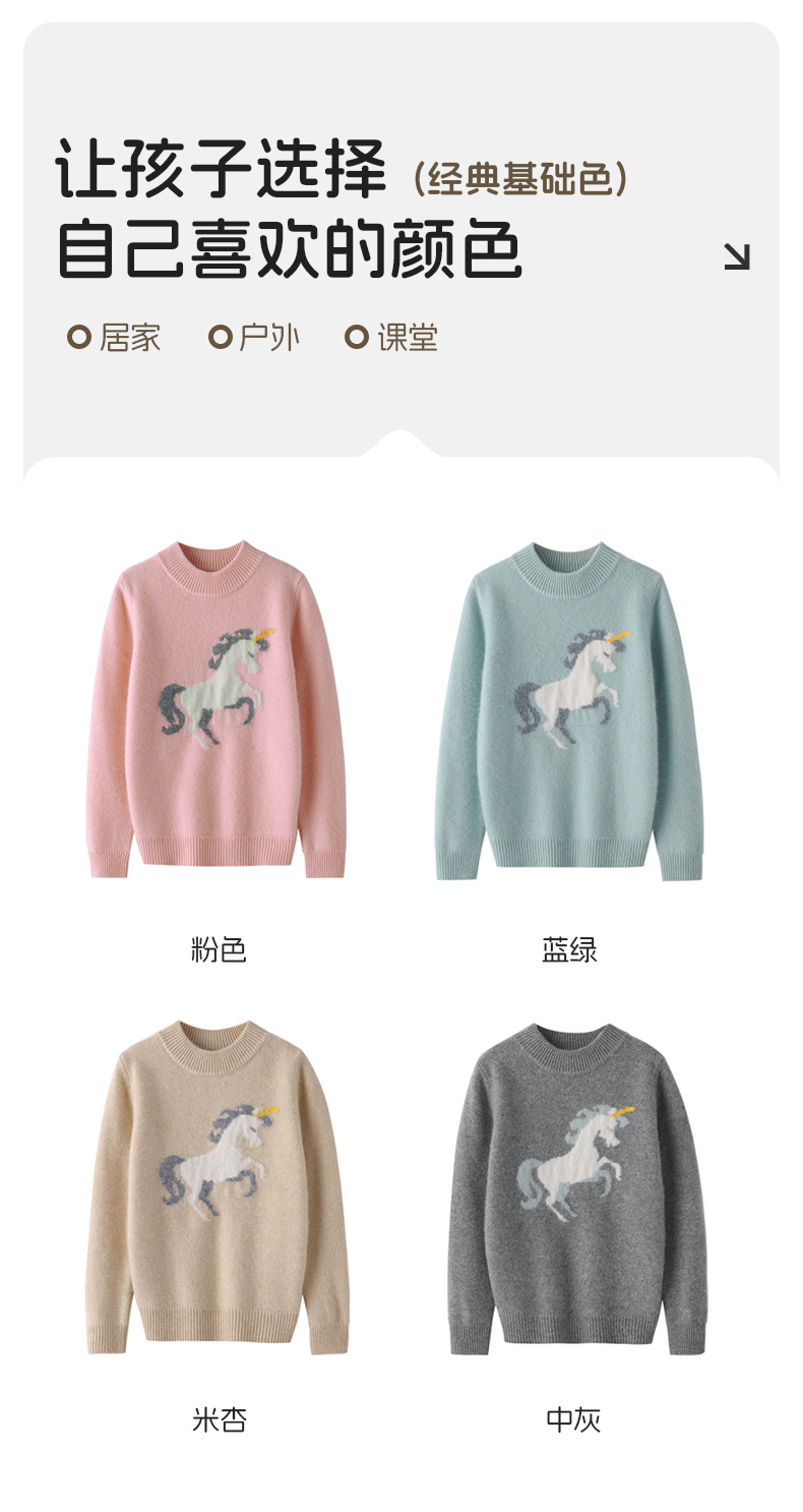 귀여운 대비 컬러 만화 포니 어린이 산 캐시미어 스웨터 크루 넥 풀오버 아동복 따뜻한 긴팔 니트 스웨터 트렌디스토어 가기