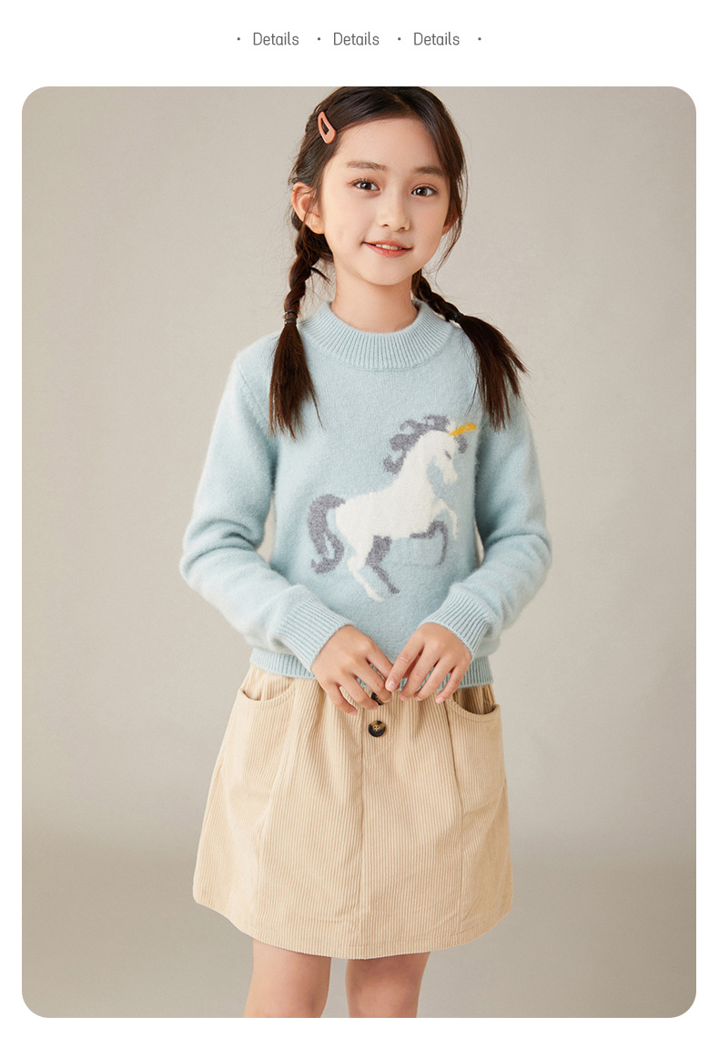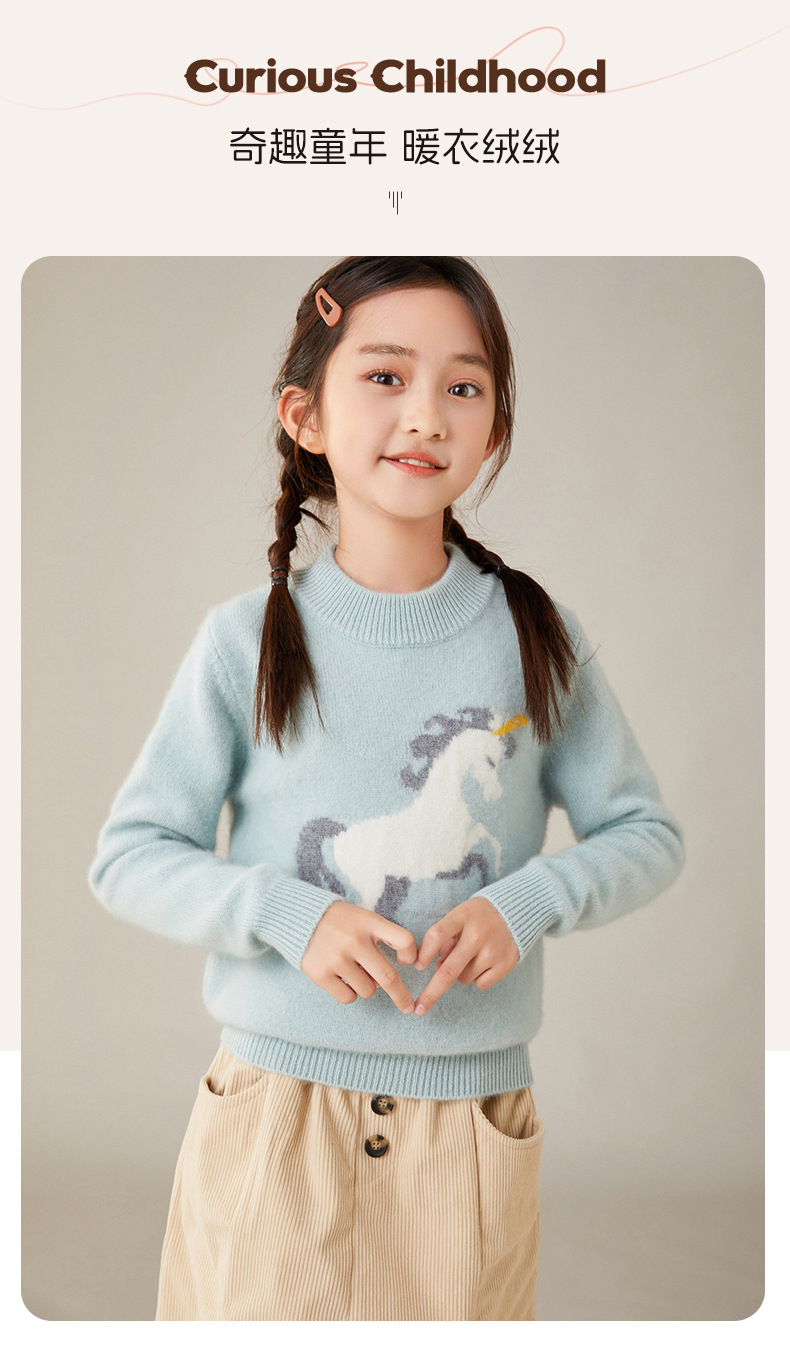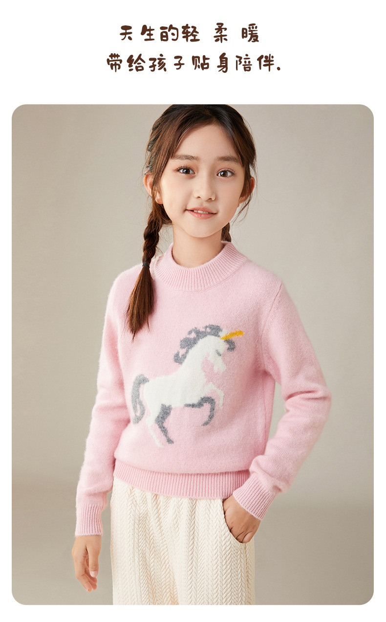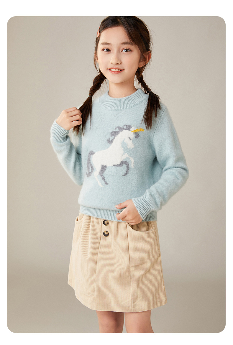 귀여운 대비 컬러 만화 포니 어린이 산 캐시미어 스웨터 크루 넥 풀오버 아동복 따뜻한 긴팔 니트 스웨터 트렌디스토어 가기