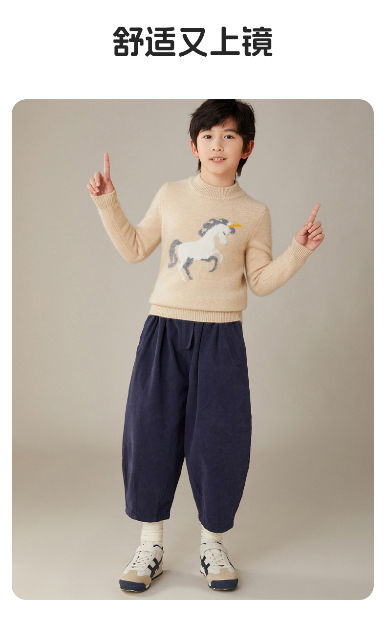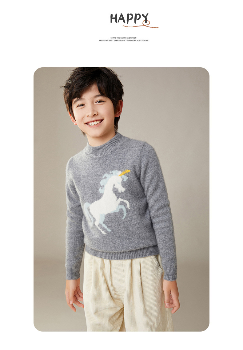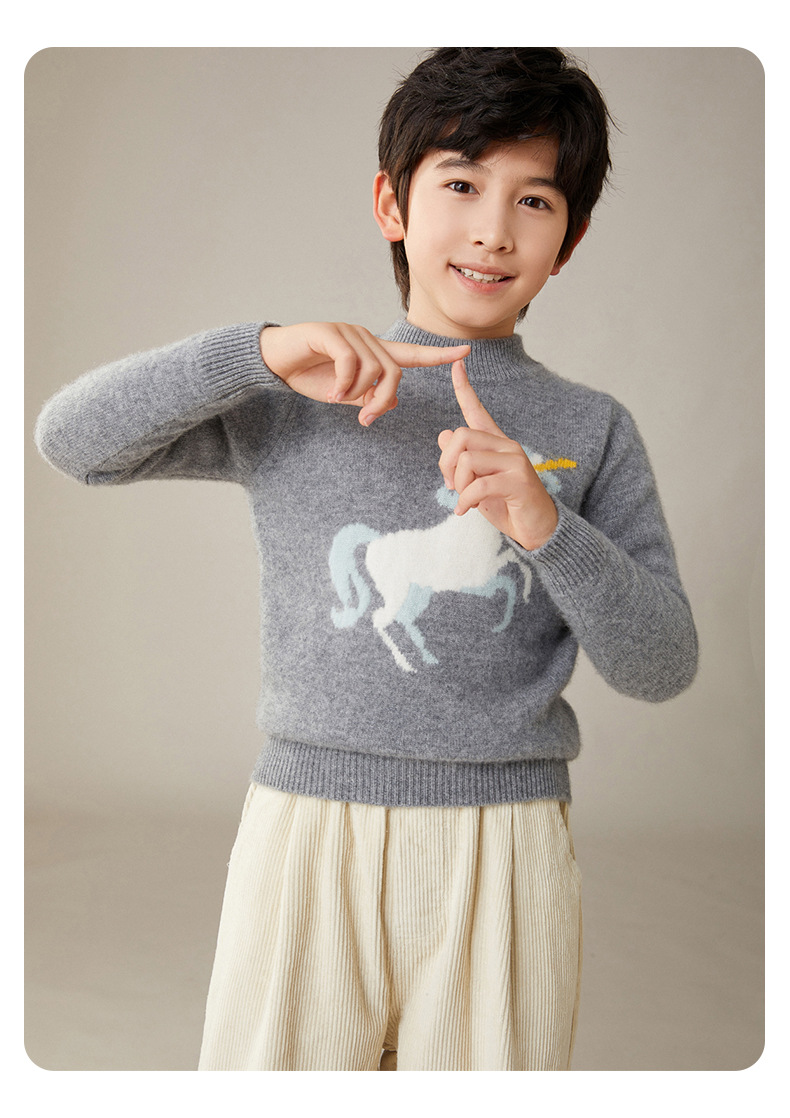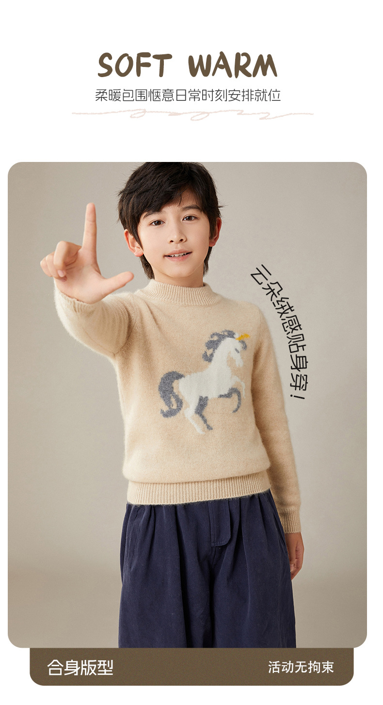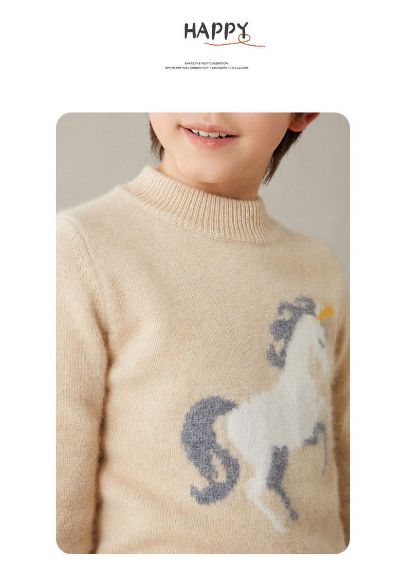 귀여운 대비 컬러 만화 포니 어린이 산 캐시미어 스웨터 크루 넥 풀오버 아동복 따뜻한 긴팔 니트 스웨터 트렌디스토어 가기