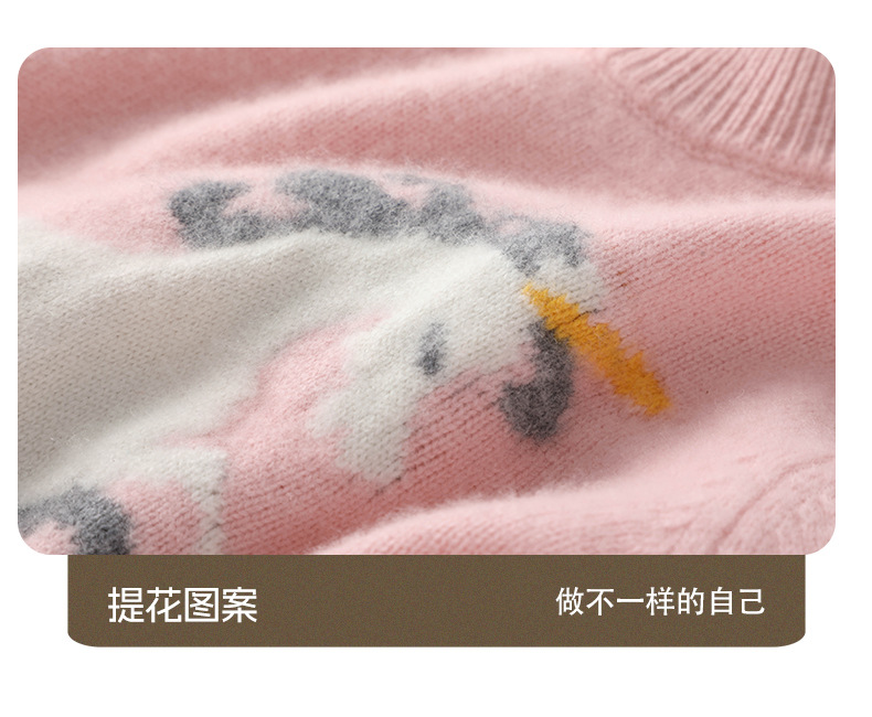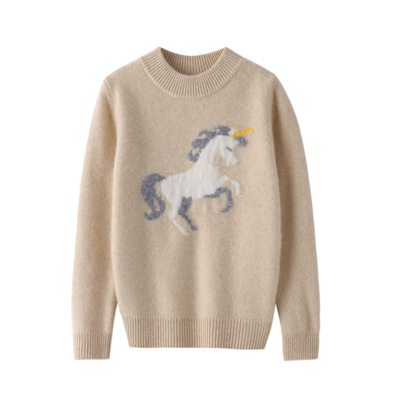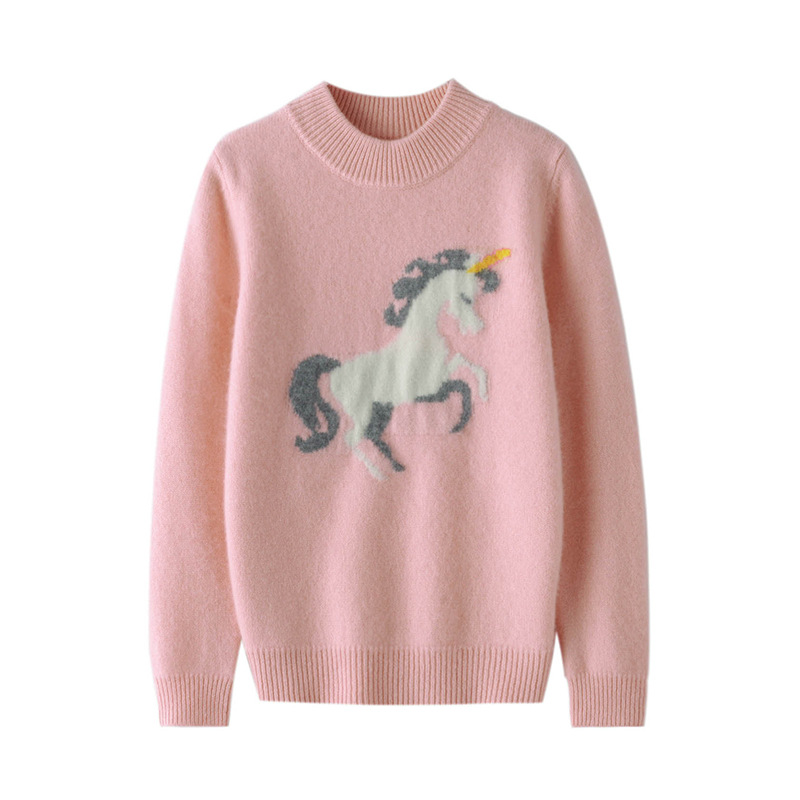 귀여운 대비 컬러 만화 포니 어린이 산 캐시미어 스웨터 크루 넥 풀오버 아동복 따뜻한 긴팔 니트 스웨터 트렌디