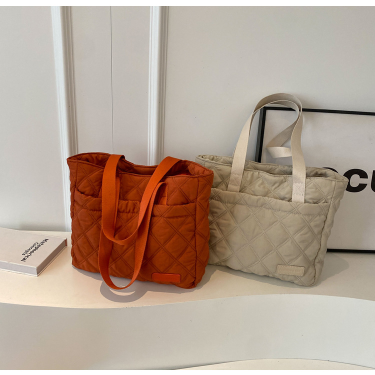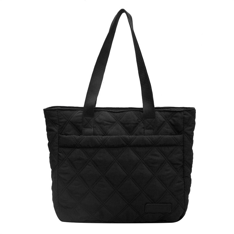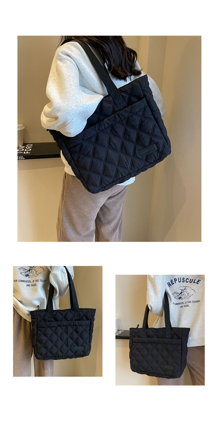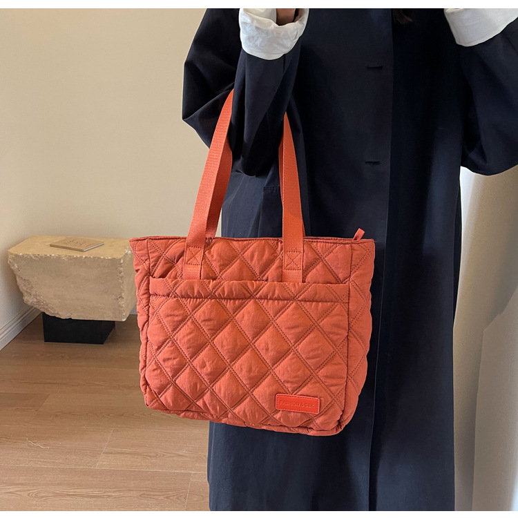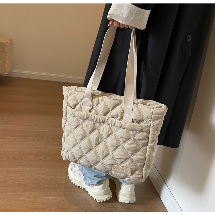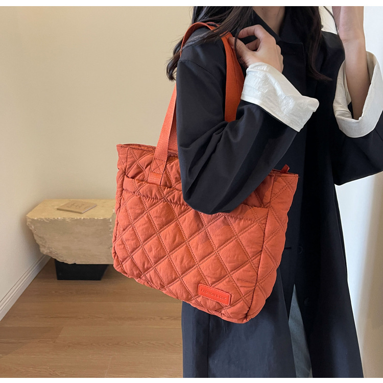 대용량 마름모꼴 토트 백 여성 가방 2024 가을과 겨울 새로운 면 가방 단색 간단한 캐주얼 휴대용 어깨 가방