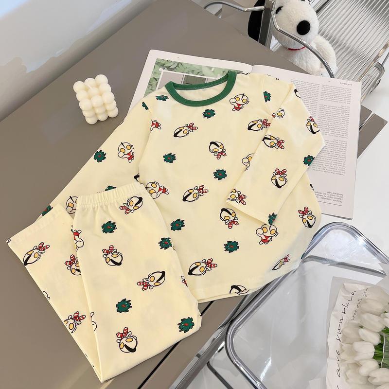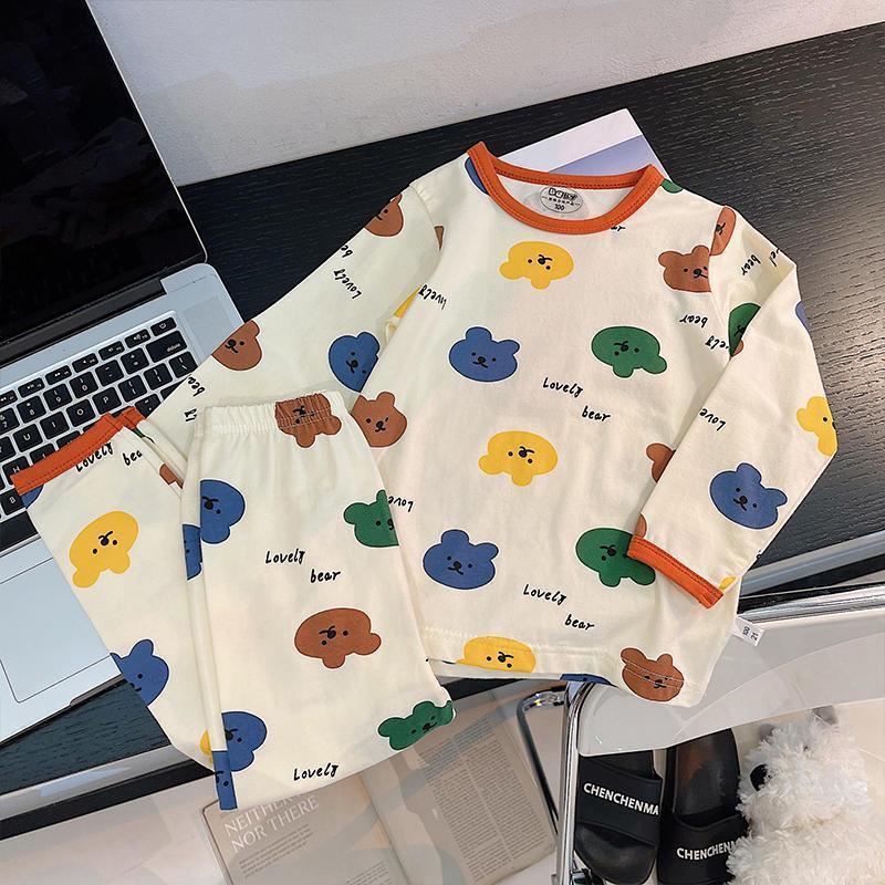 아기 집 에어컨 옷 순수한 면 얇은 여름 아기 긴 소매 어린이 잠옷 세트 소년과 소녀 봄과 가을