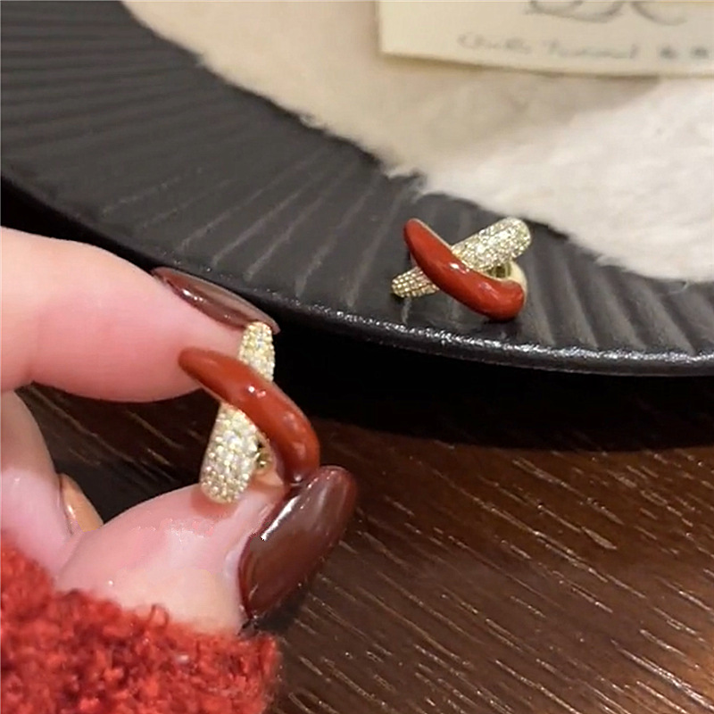 • 레드 오일 드롭 크로스 다이아몬드 스터드 귀걸이