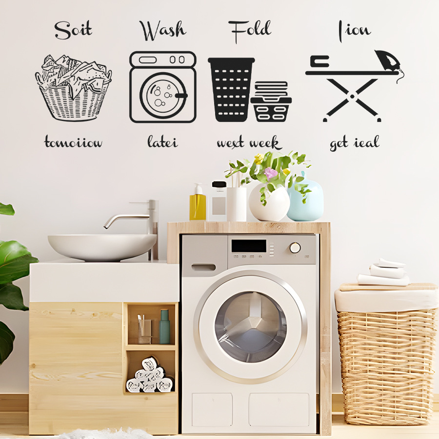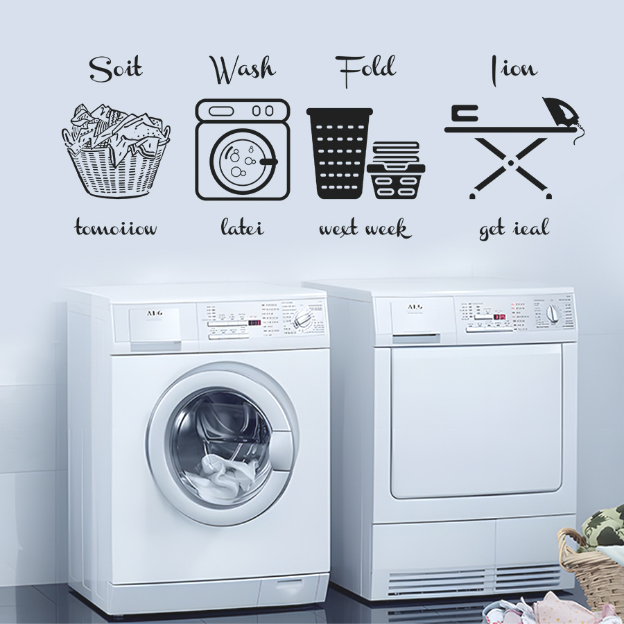 세탁실 분류 아이콘 영어 문구 자체 접착 벽 스티커 간단한 Ins 스타일 세탁실 장식 스티커 ZN3090E스토어 가기