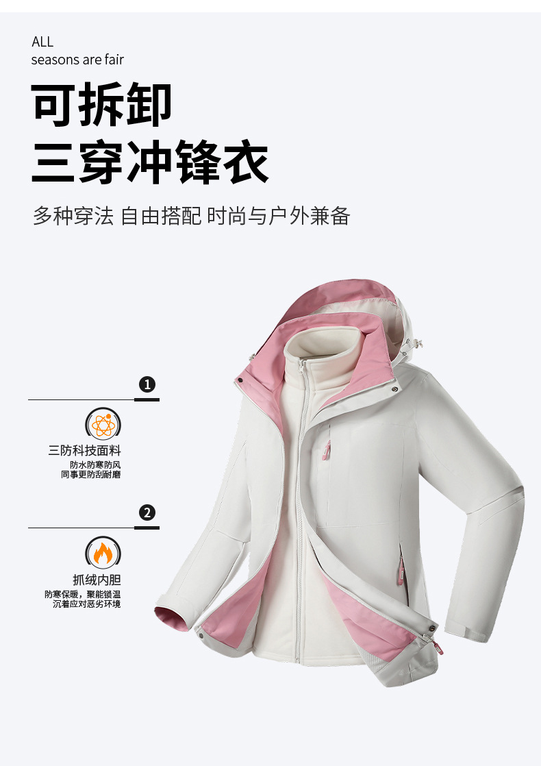 충전 재킷 남성과 여성의 방수 방풍 3 대 1 투피스 분리 가능한 등산 세트 야외 재킷 618S스토어 가기