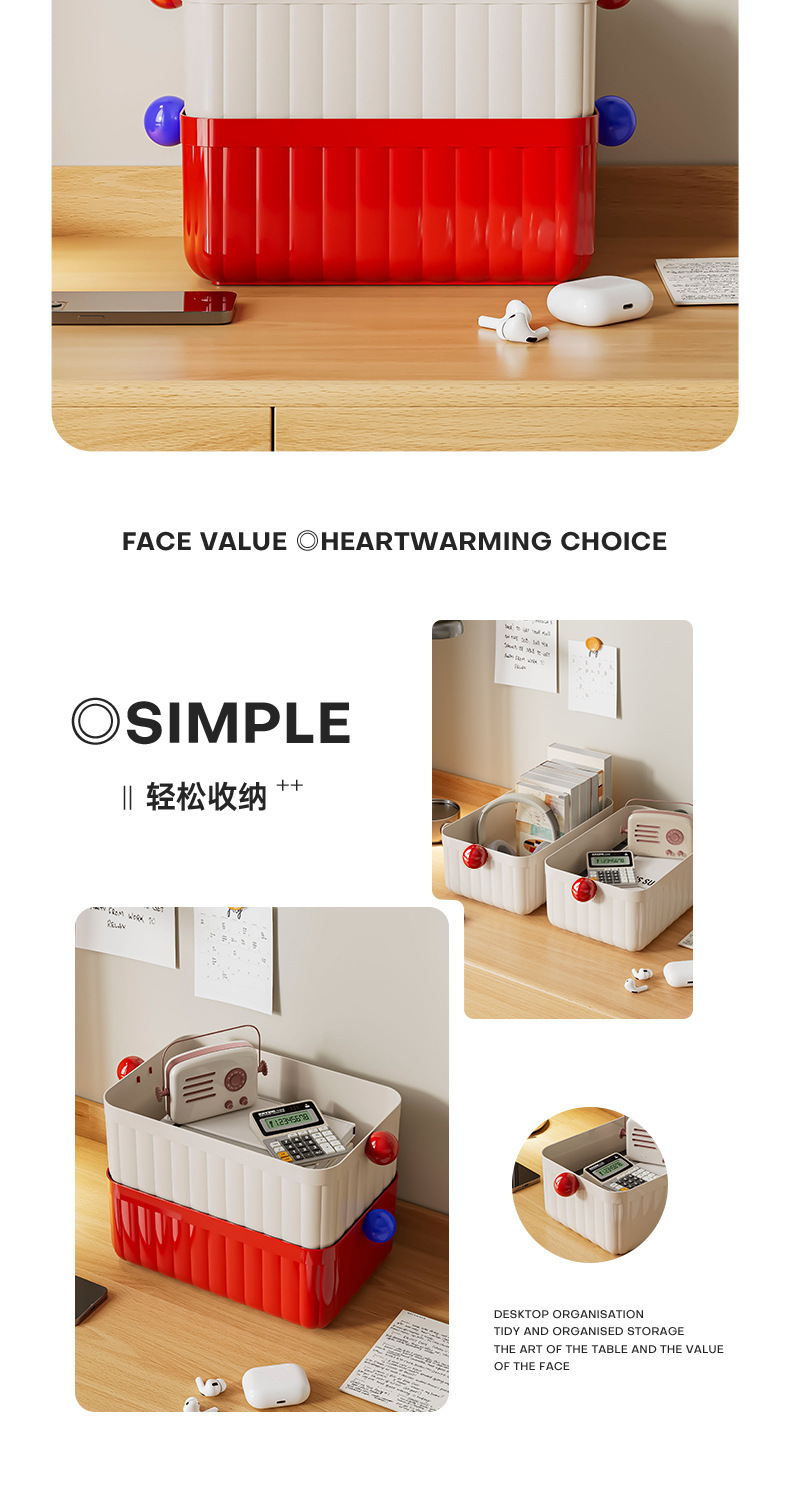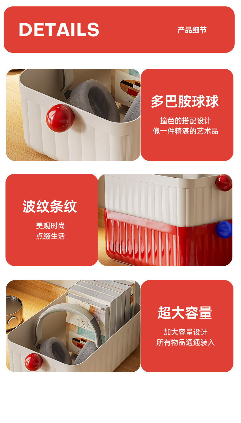 桌面收纳盒大容量杂物整理盒办公室书桌文具收纳筐家用圆球收纳盒
