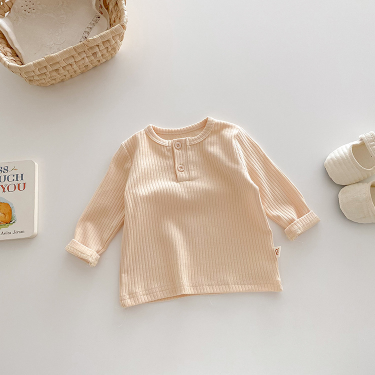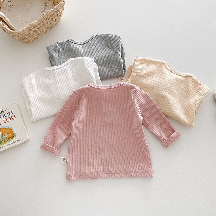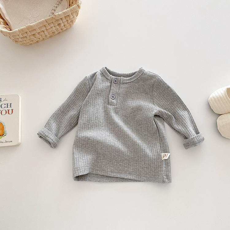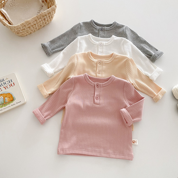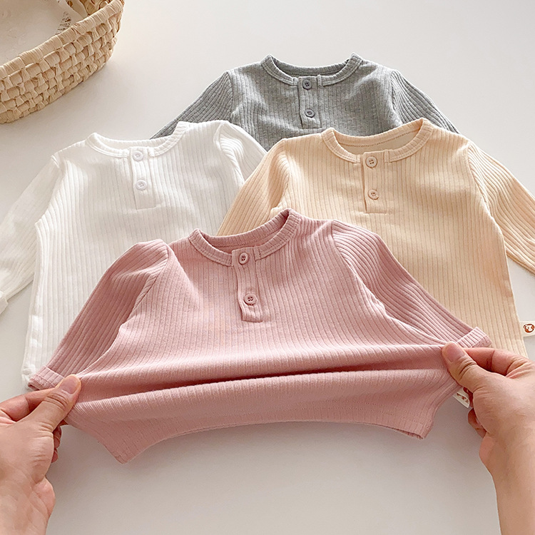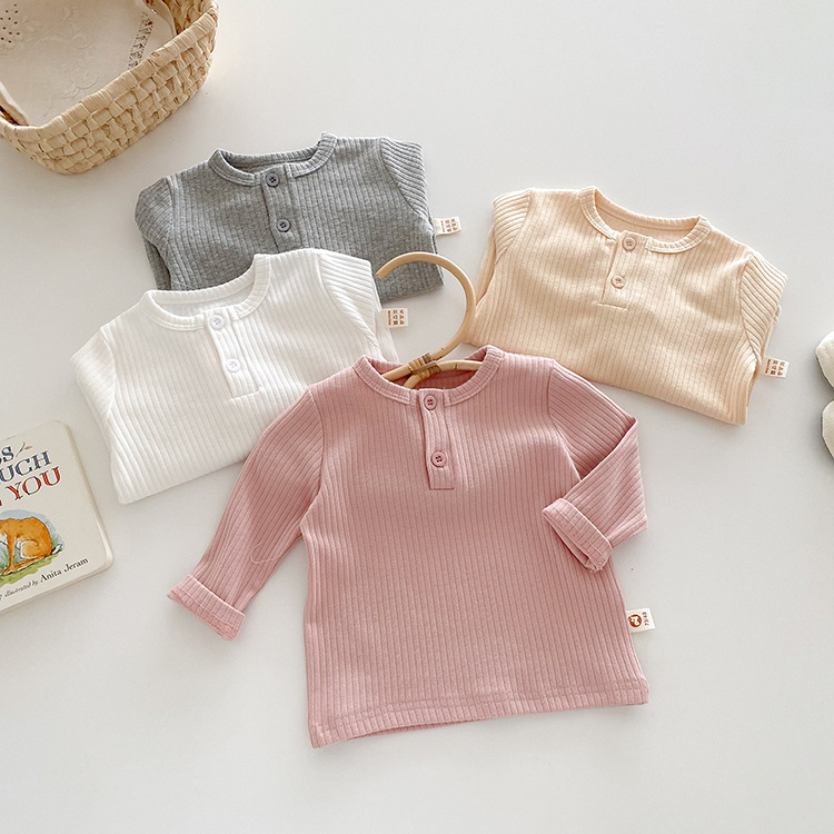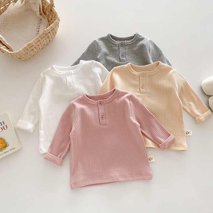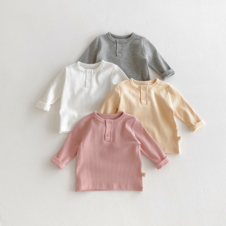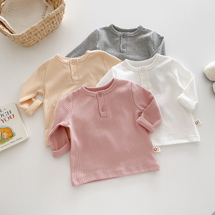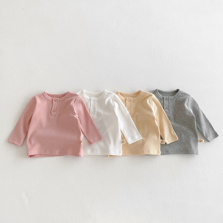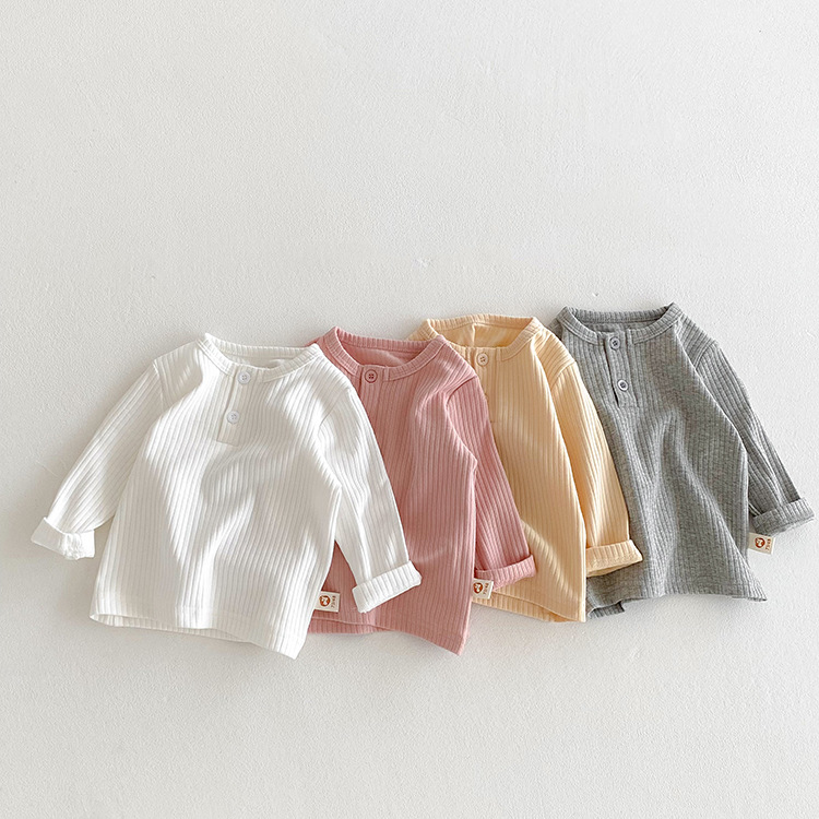 아기 옷 봄과 가을 옷 아기 구덩이 긴팔 티셔츠 단색 기본 셔츠 소년 소녀 어린이 최고의 한국 스타일 트렌디스토어 가기