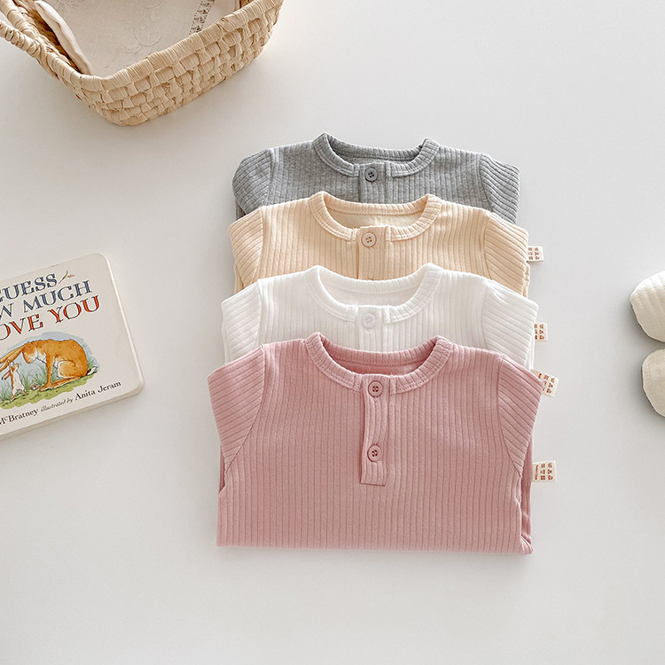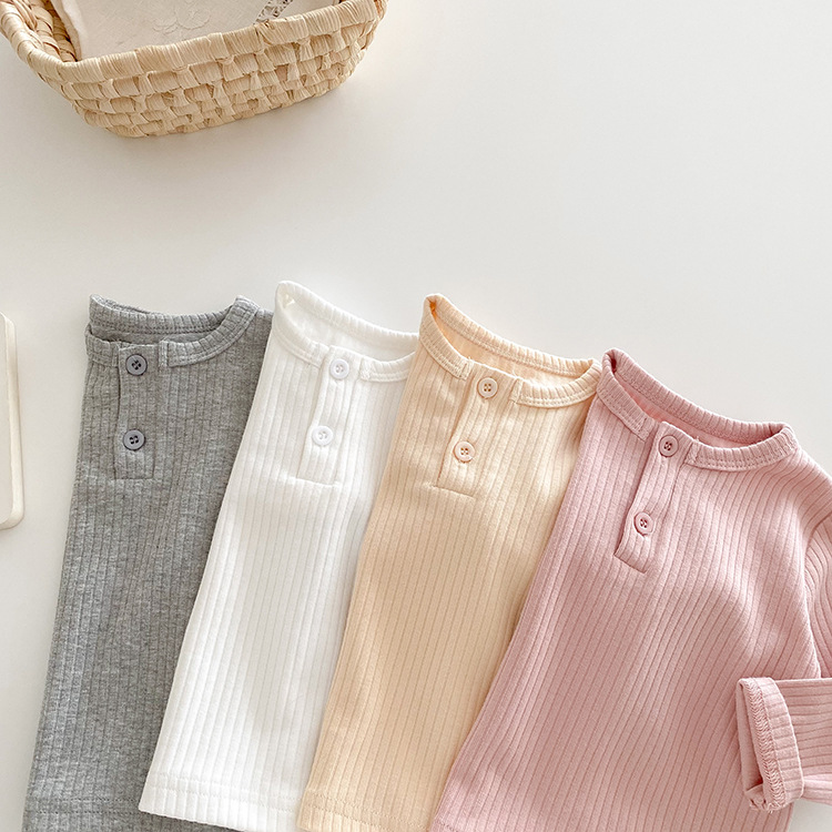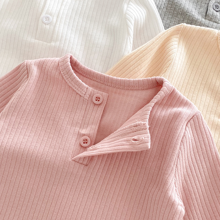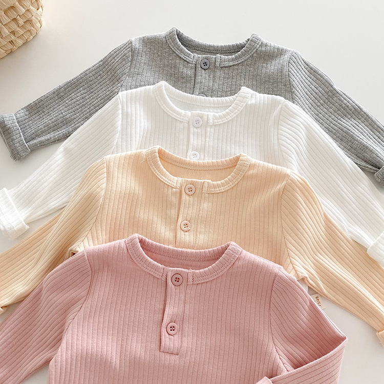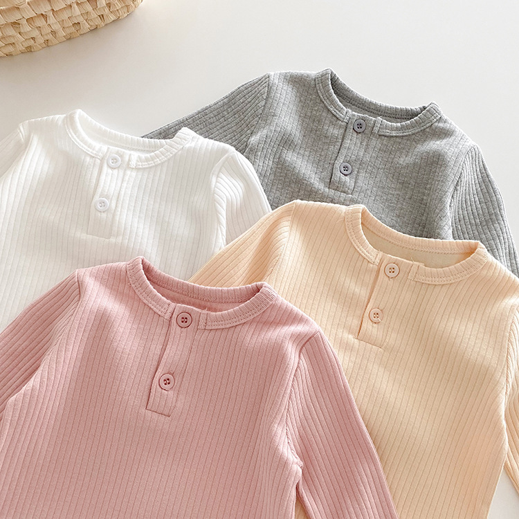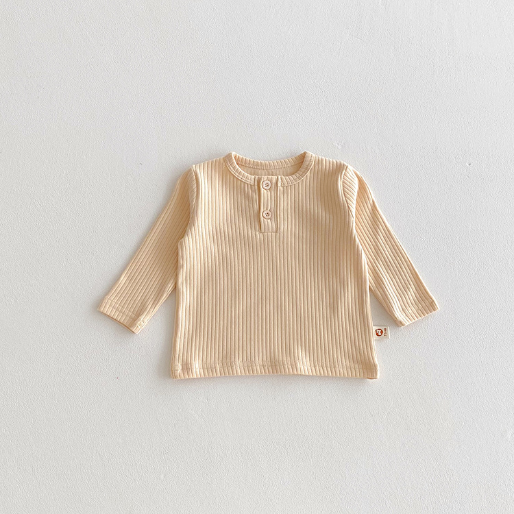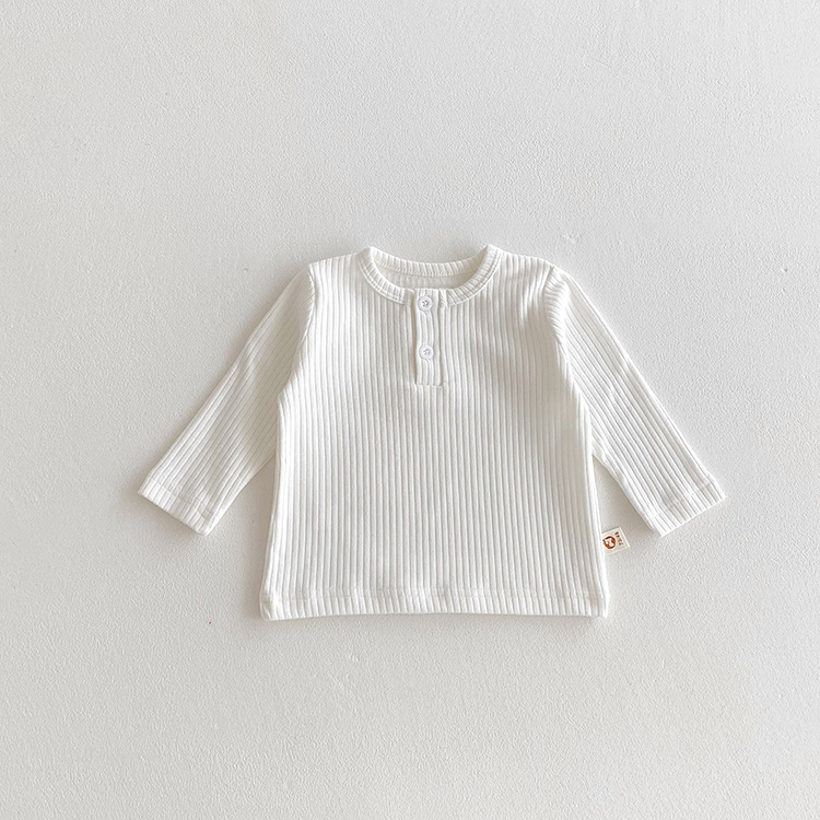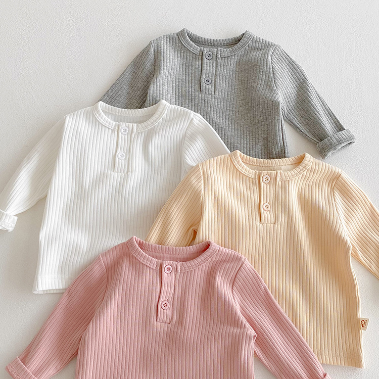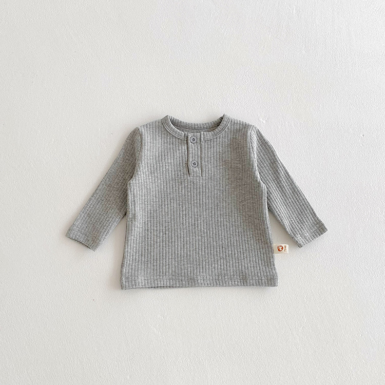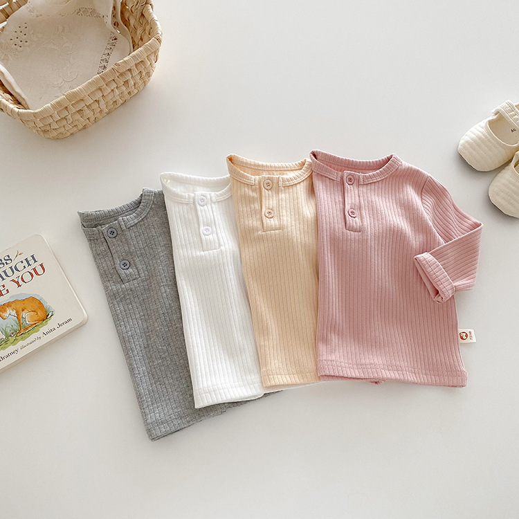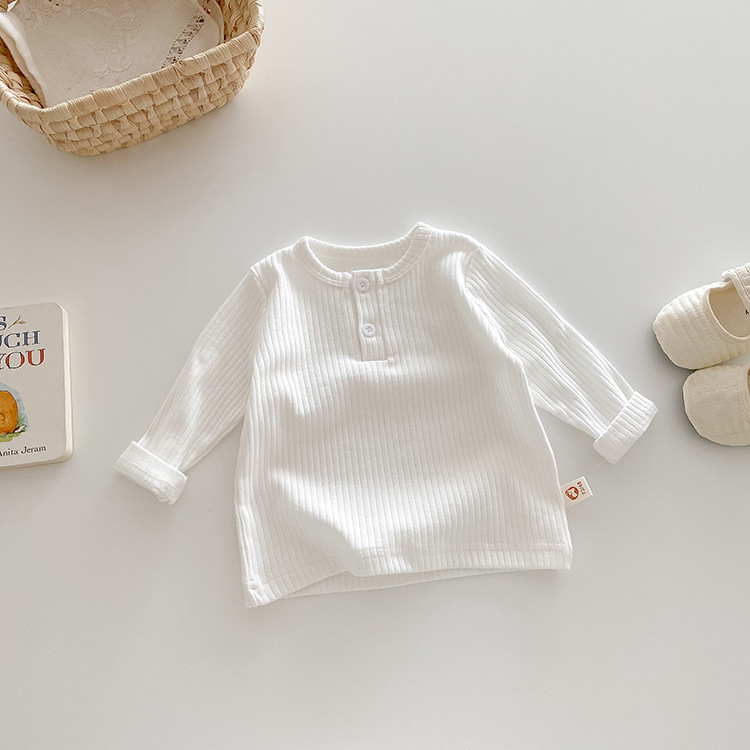 아기 옷 봄과 가을 옷 아기 구덩이 긴팔 티셔츠 단색 기본 셔츠 소년 소녀 어린이 최고의 한국 스타일 트렌디스토어 가기