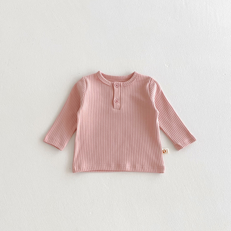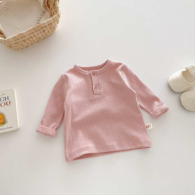 아기 옷 봄과 가을 옷 아기 구덩이 긴팔 티셔츠 단색 기본 셔츠 소년 소녀 어린이 최고의 한국 스타일 트렌디