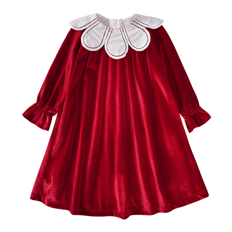【产品】女童金丝绒连衣裙2024秋装复古节日款花瓣领长袖公主裙批发代理