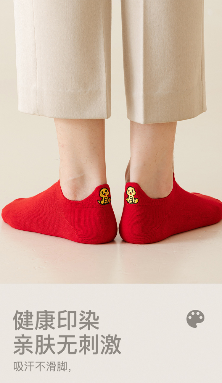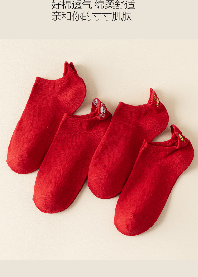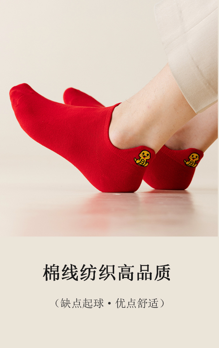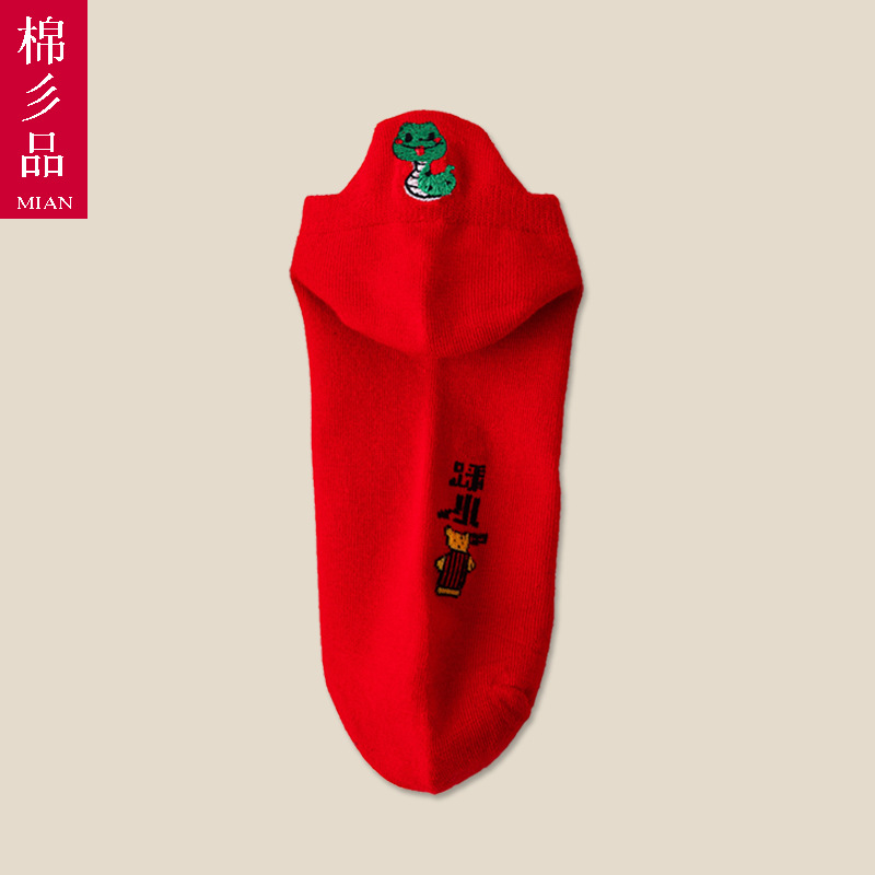 뱀의 해 빨간 양말의 올해 인생의 큰 빨간 양말 남녀 커플 양말 보트 양말 얇은 짧은 양말 축제 결혼식 면화스토어 가기