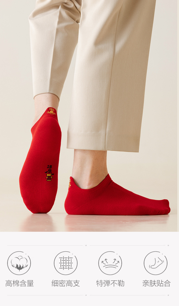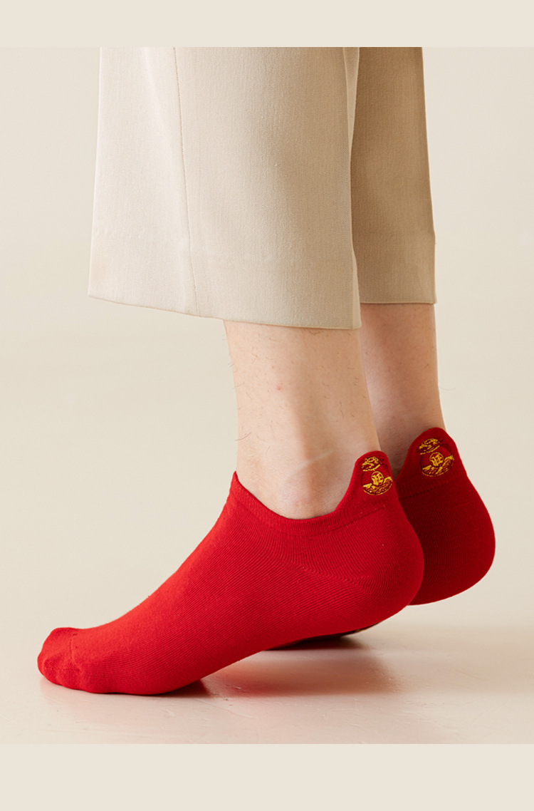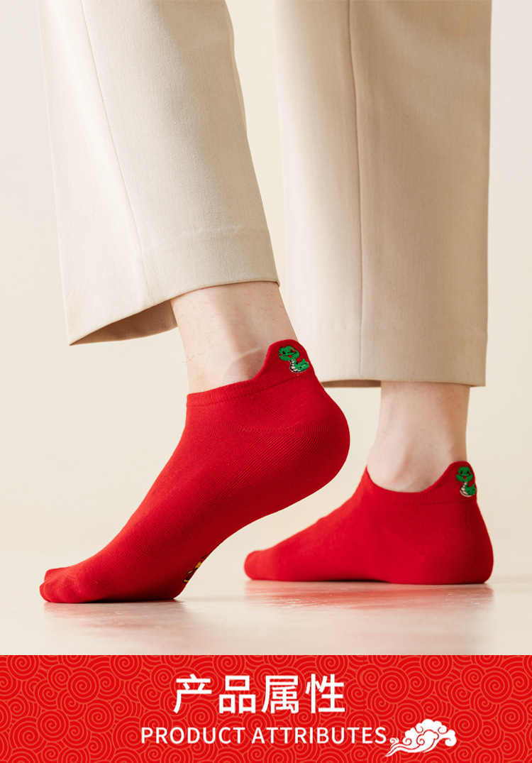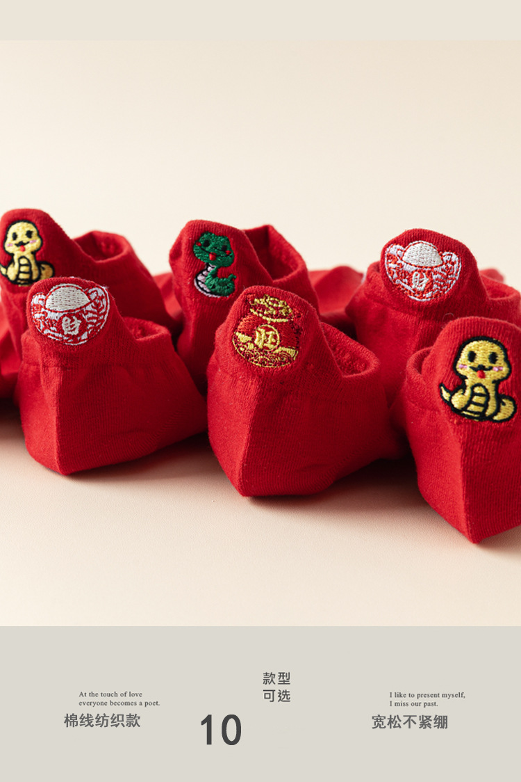 뱀의 해 빨간 양말의 올해 인생의 큰 빨간 양말 남녀 커플 양말 보트 양말 얇은 짧은 양말 축제 결혼식 면화스토어 가기