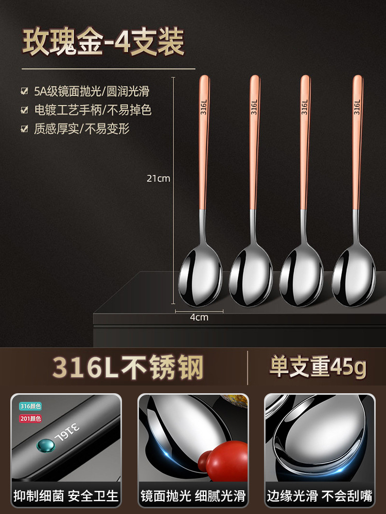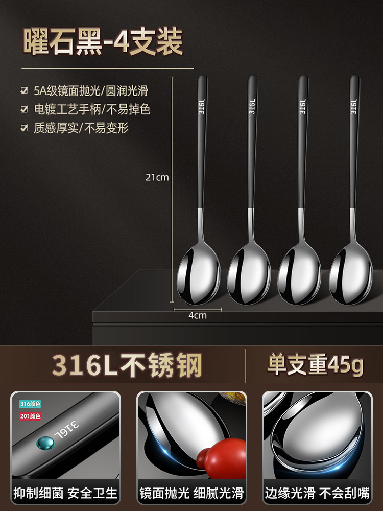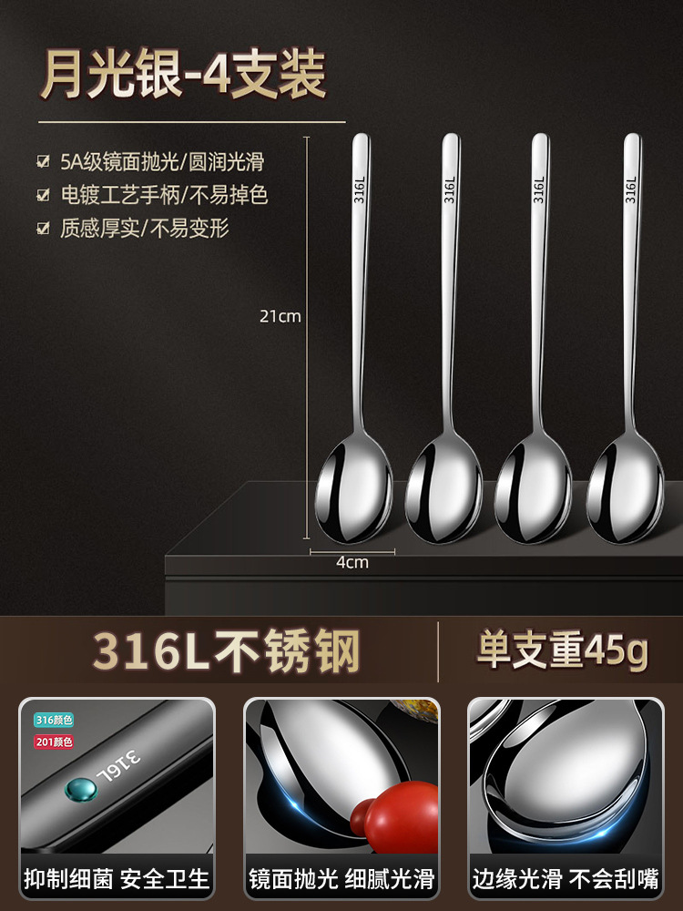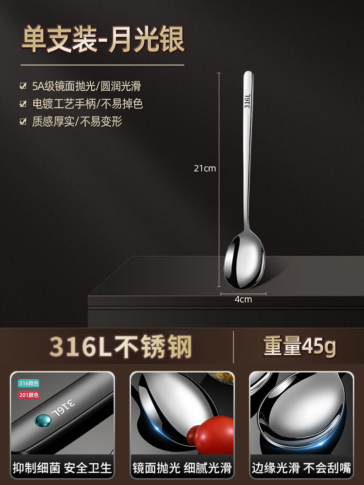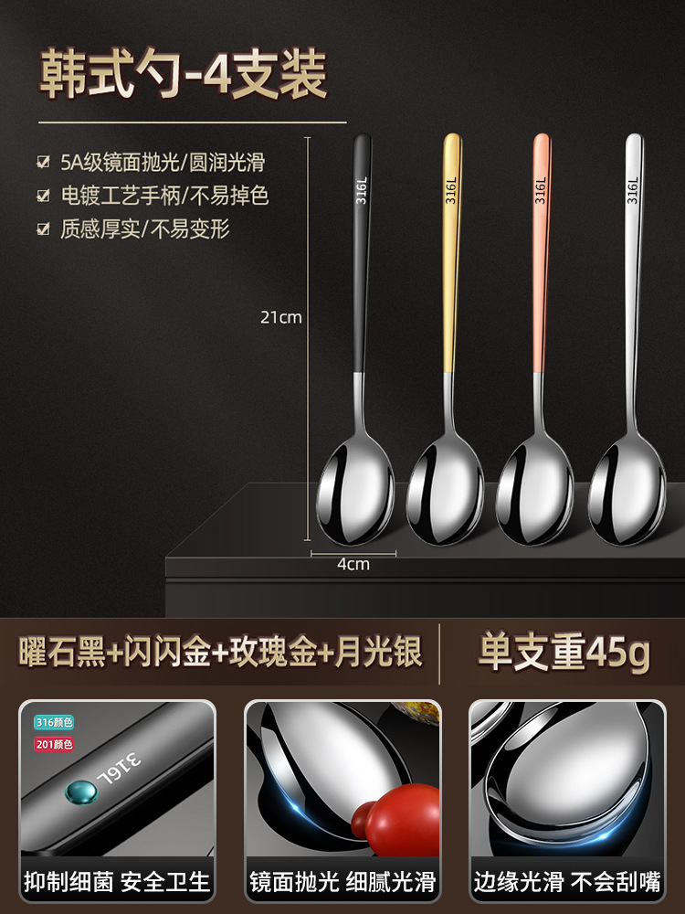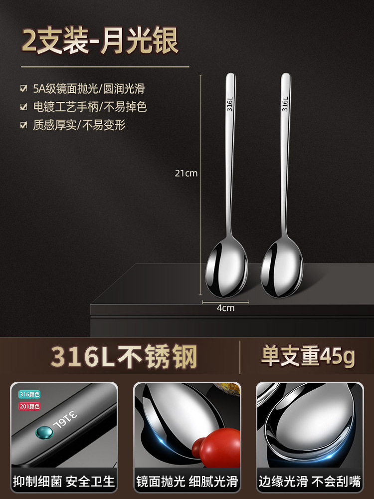 숟가락 작은 숟가락 한국식 숟가락 긴 손잡이 숟가락 316 스테인레스 스틸 스푼 자체 제작 어린이 식사 가정용 식품 등급