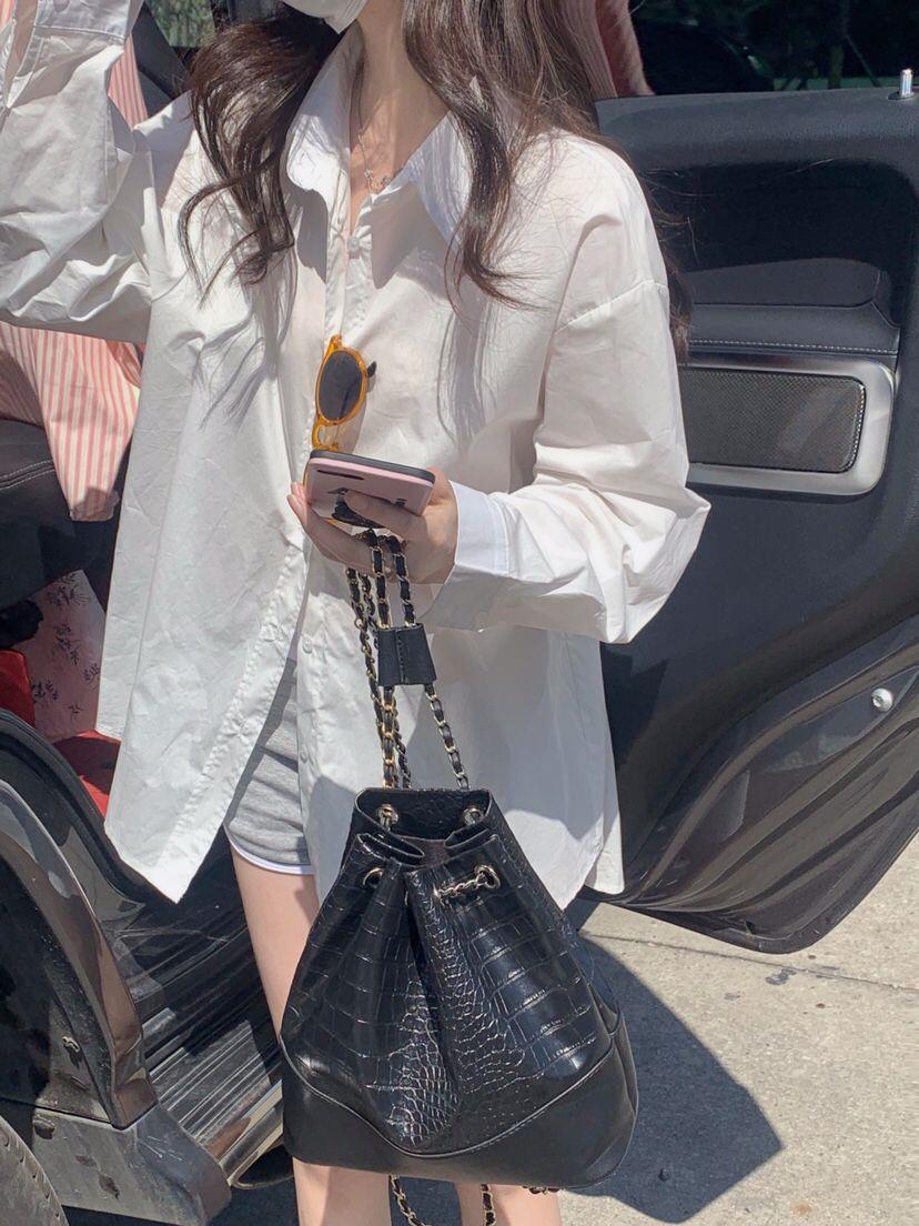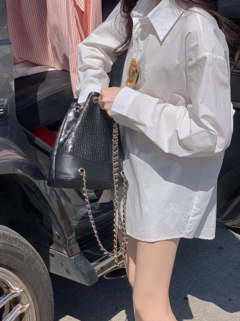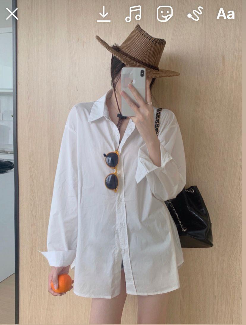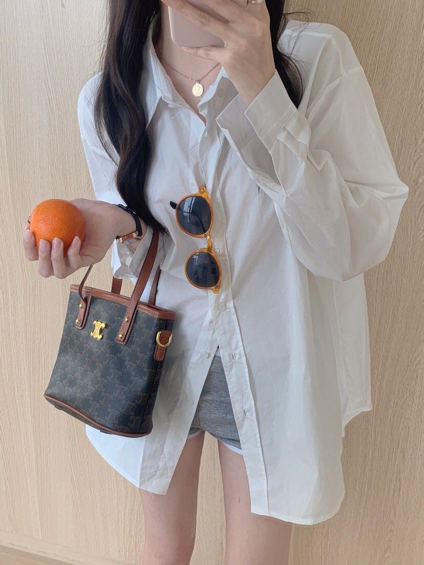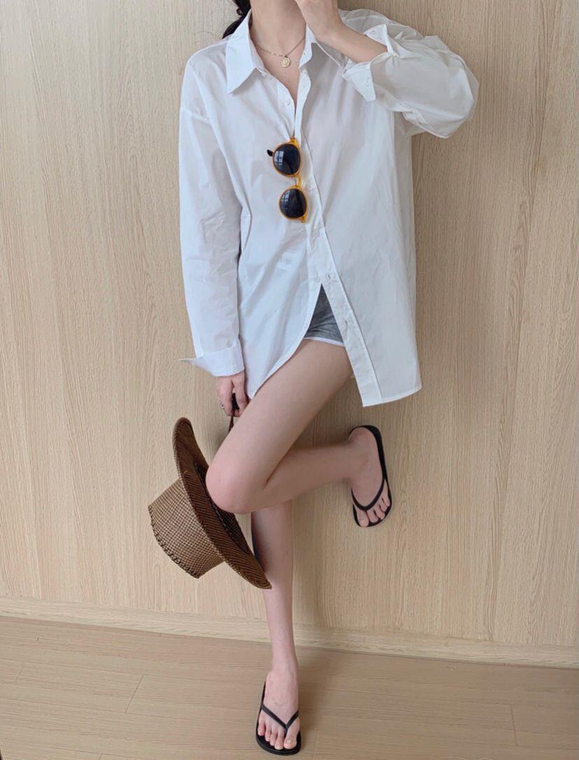 고급 녹색 선 스크린 줄무늬 셔츠 여성의 봄과 여름 얇은 디자인 감각 틈새 중간 길이 소금 탑 코트스토어 가기
