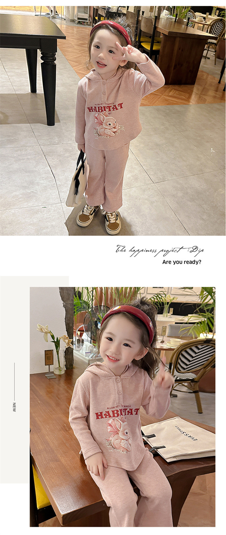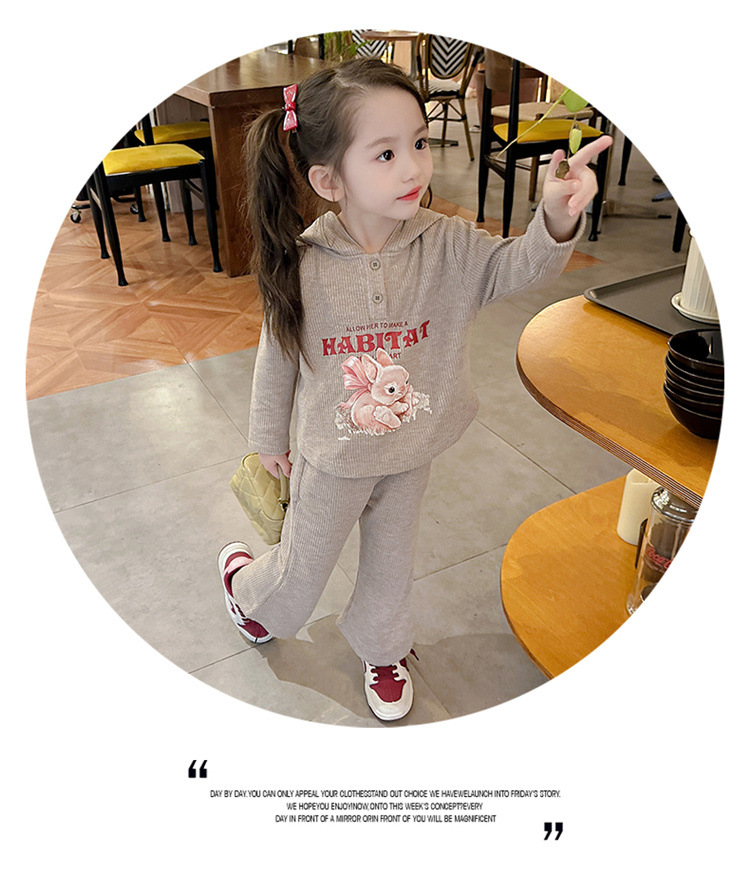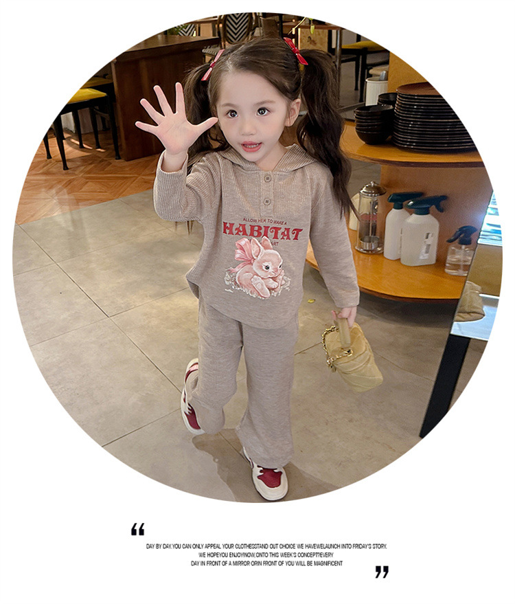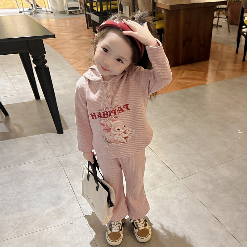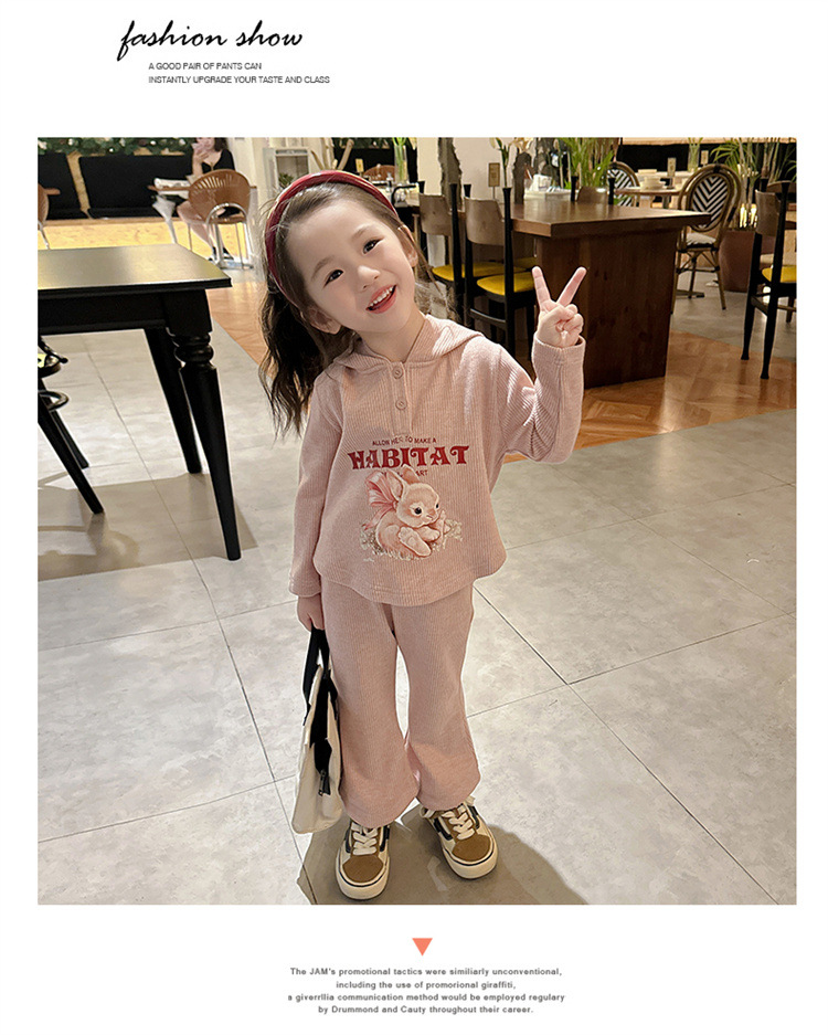 소녀 한국식 세트 어린이 봄과 가을 새로운 세련된 만화 토끼 후드 유행 바지 투피스 세트스토어 가기