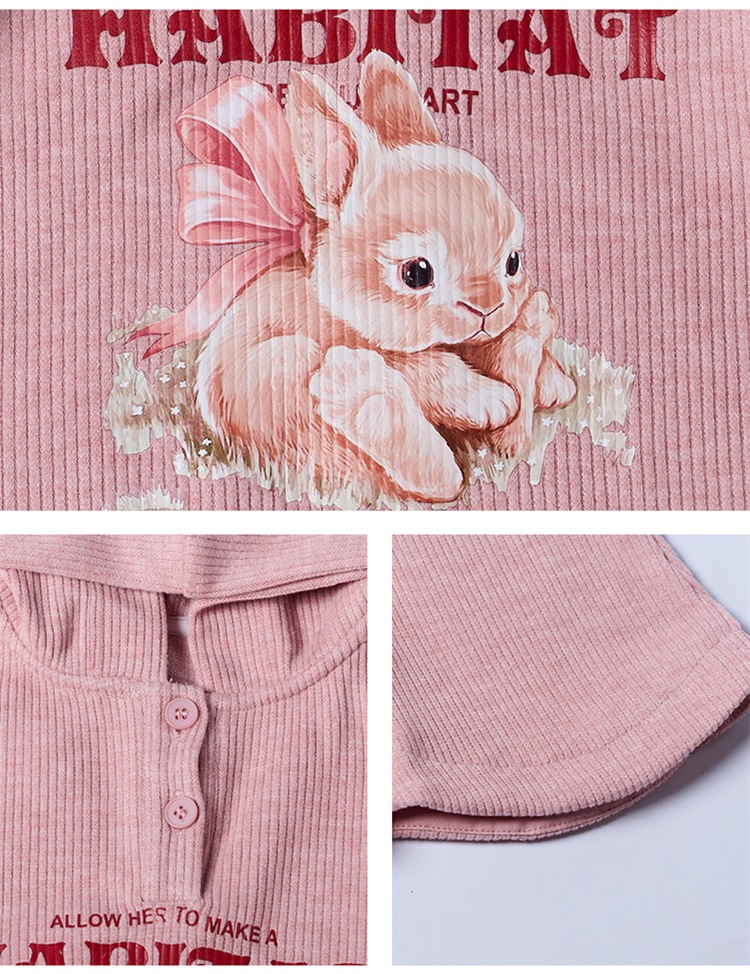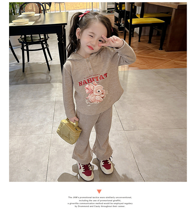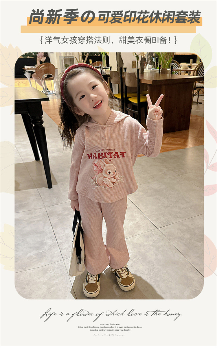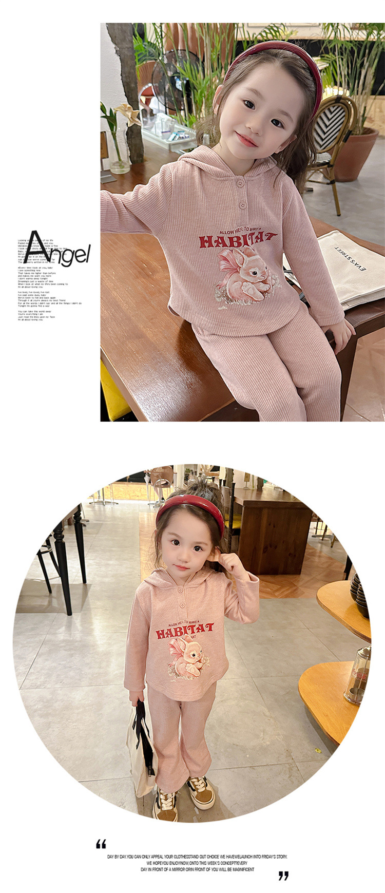 소녀 한국식 세트 어린이 봄과 가을 새로운 세련된 만화 토끼 후드 유행 바지 투피스 세트스토어 가기