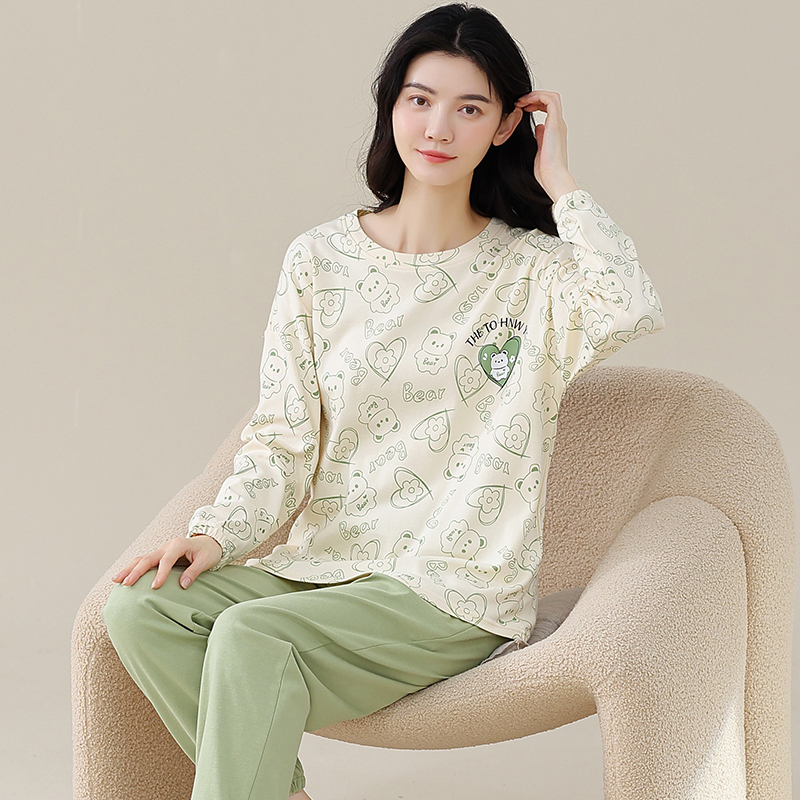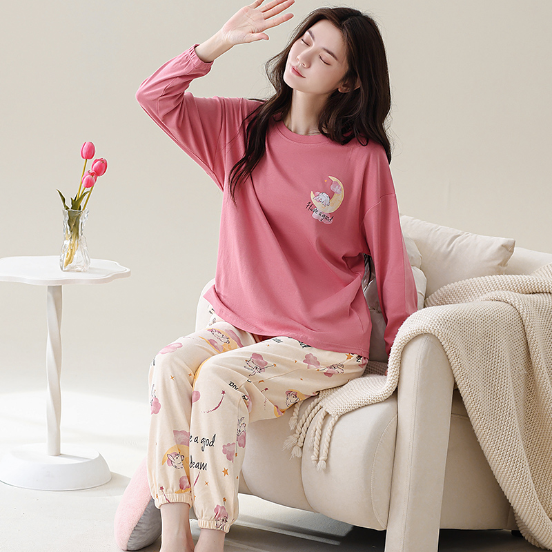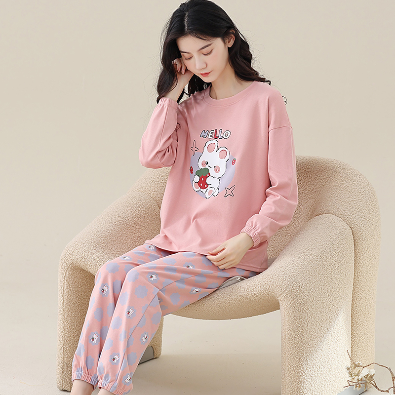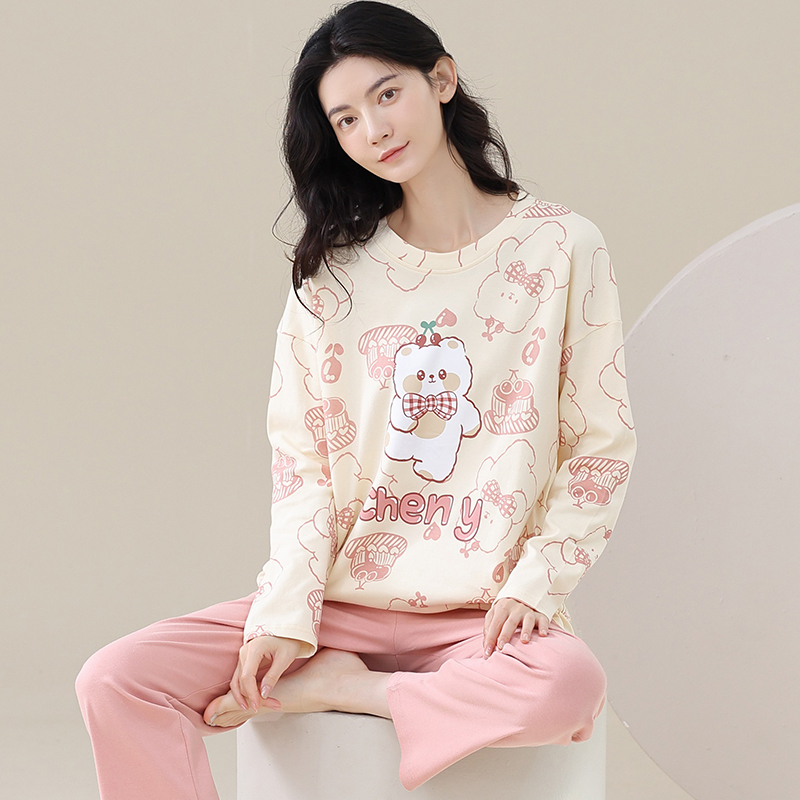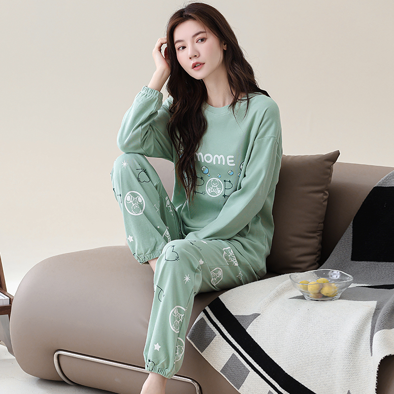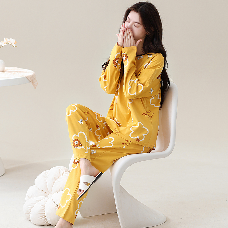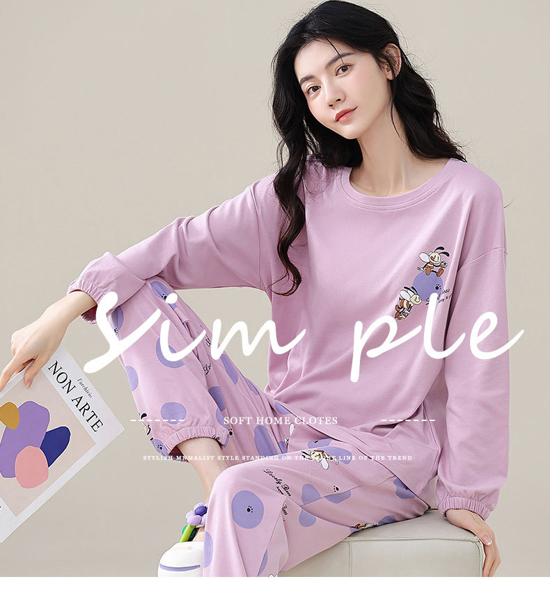 코튼 홈 아이 펜텡 파자마 여성의 봄과 가을 코튼 긴 소매 달콤한 풀오버 겨울 얇은 외부 착용 홈 세트스토어 가기