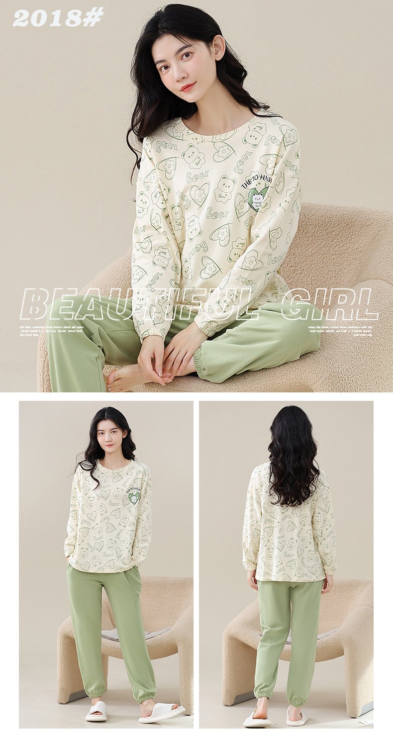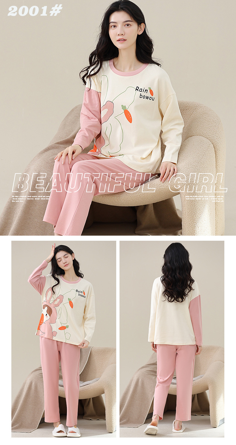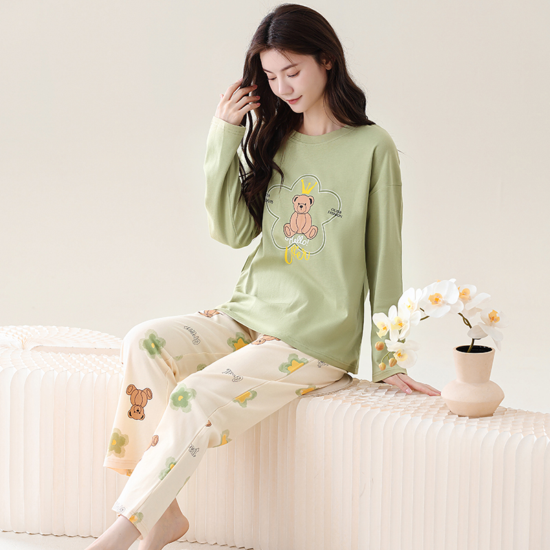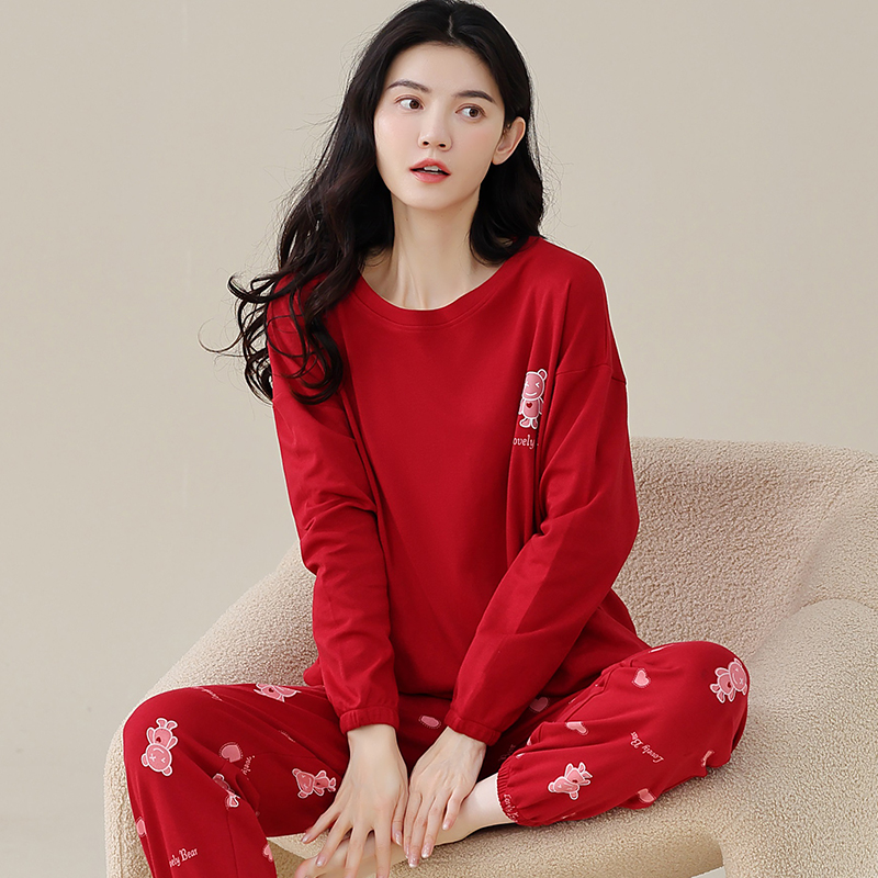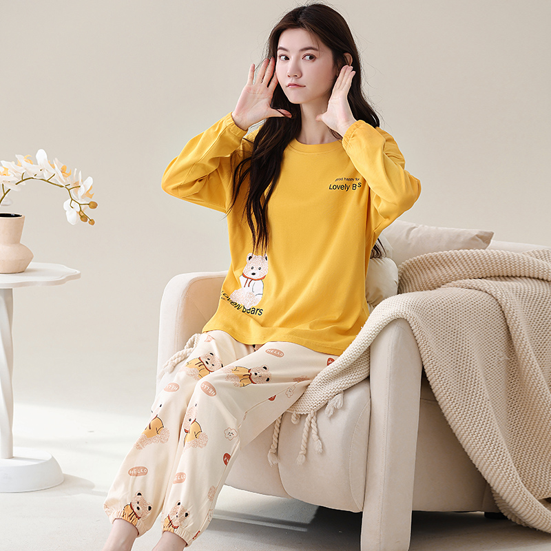 코튼 홈 아이 펜텡 파자마 여성의 봄과 가을 코튼 긴 소매 달콤한 풀오버 겨울 얇은 외부 착용 홈 세트스토어 가기