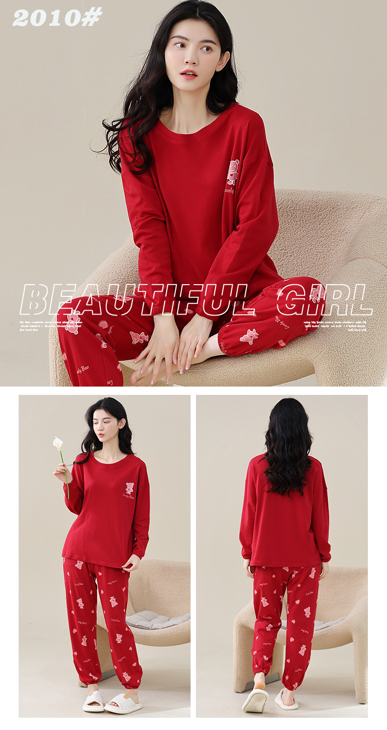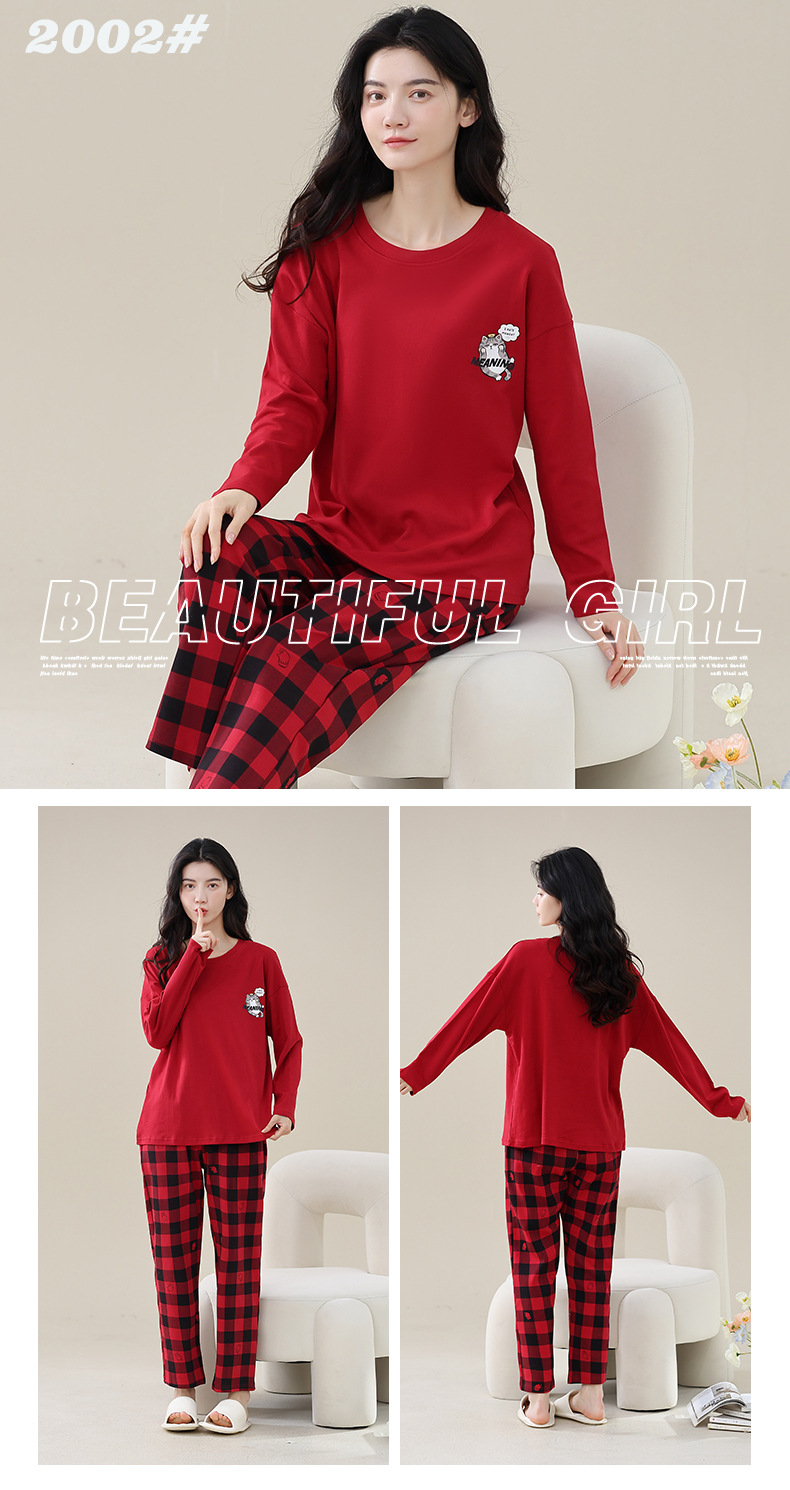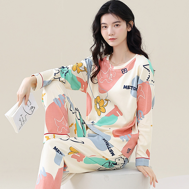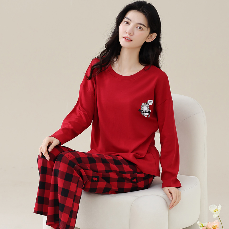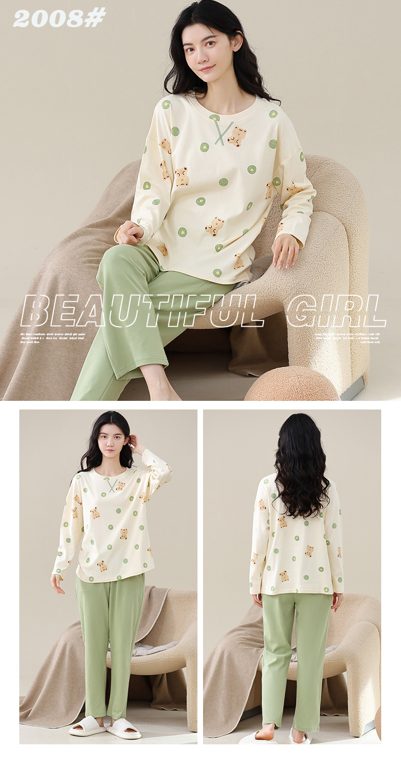 코튼 홈 아이 펜텡 파자마 여성의 봄과 가을 코튼 긴 소매 달콤한 풀오버 겨울 얇은 외부 착용 홈 세트스토어 가기