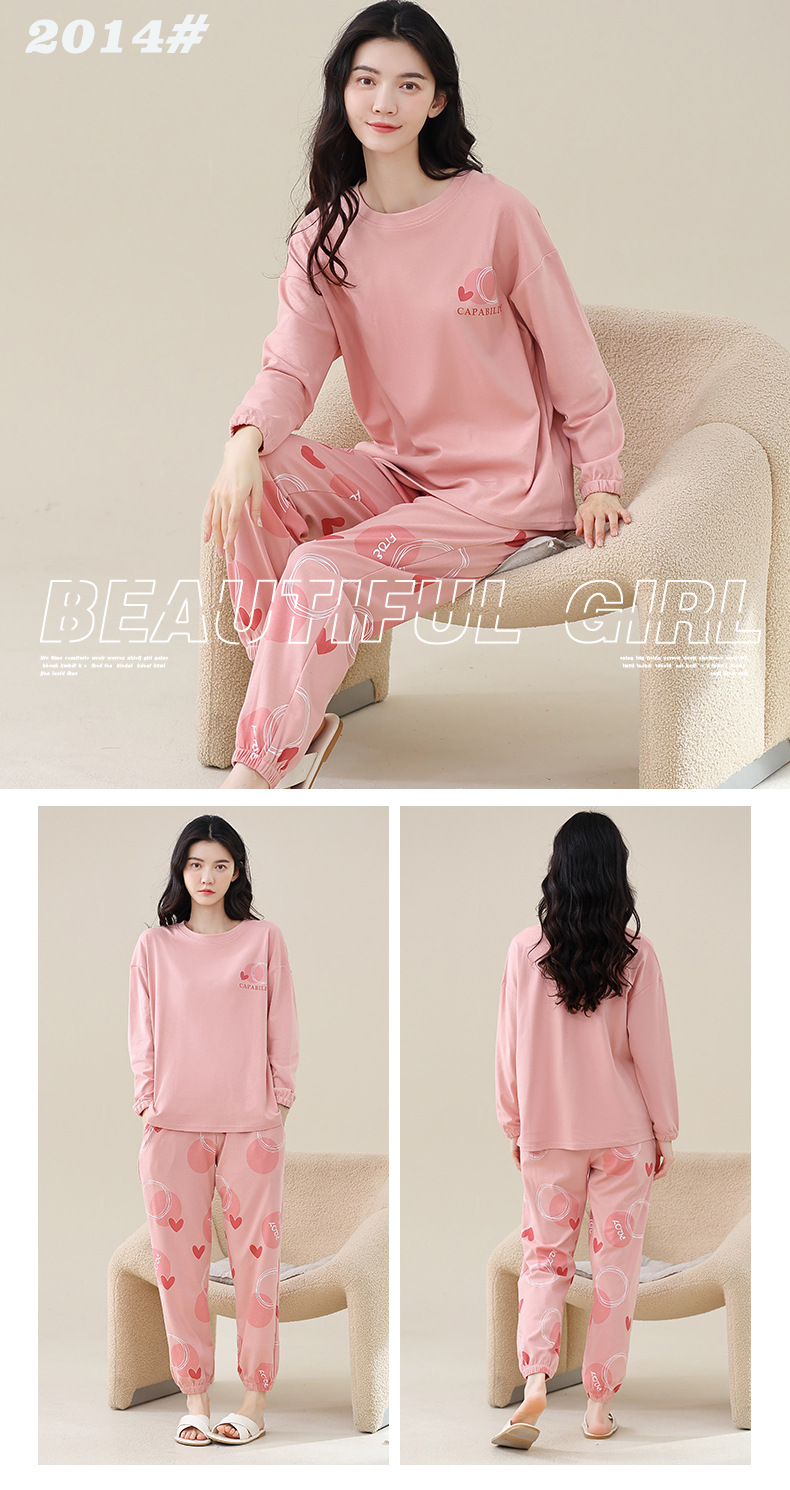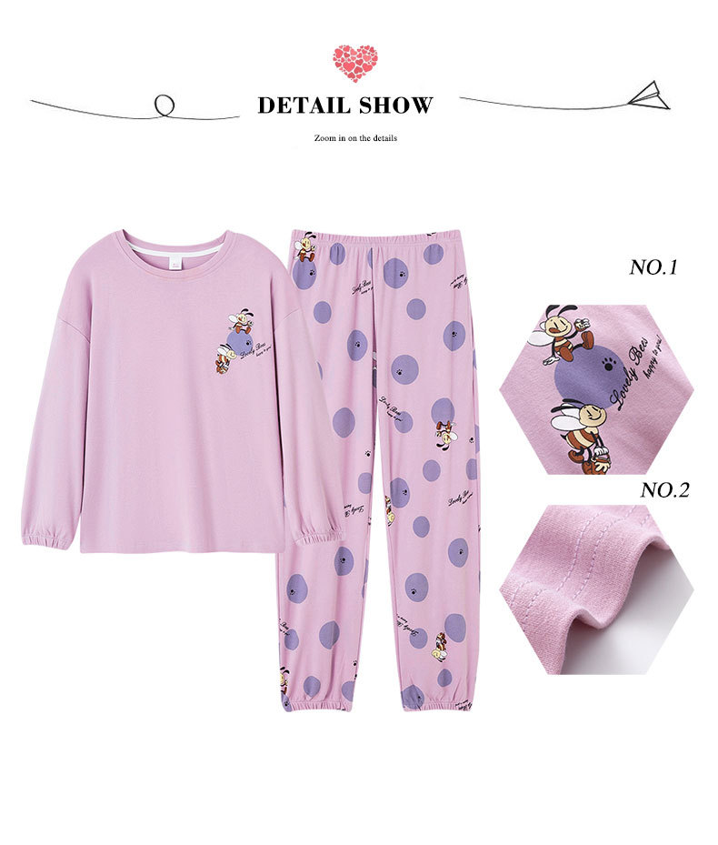 코튼 홈 아이 펜텡 파자마 여성의 봄과 가을 코튼 긴 소매 달콤한 풀오버 겨울 얇은 외부 착용 홈 세트