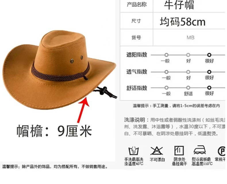 웨스턴 카우보이 모자 스웨이드 자외선 차단제 대형 챙 비치 크로스보더 남성 및 여성 나이트 바이저 모자 하이킹 모자 재즈스토어 가기