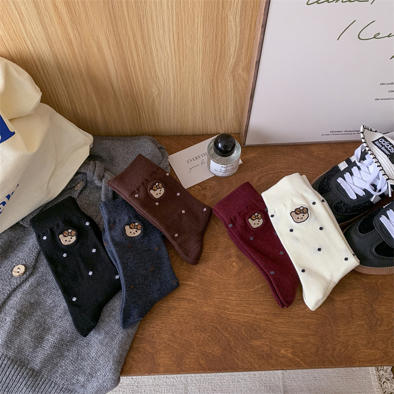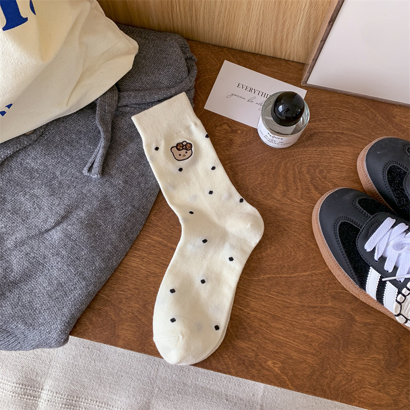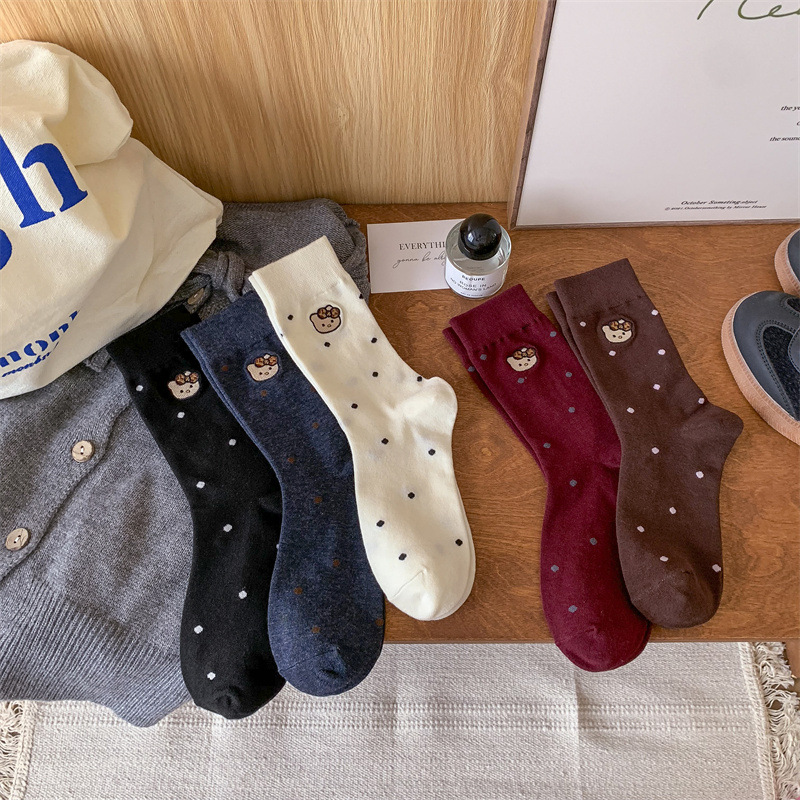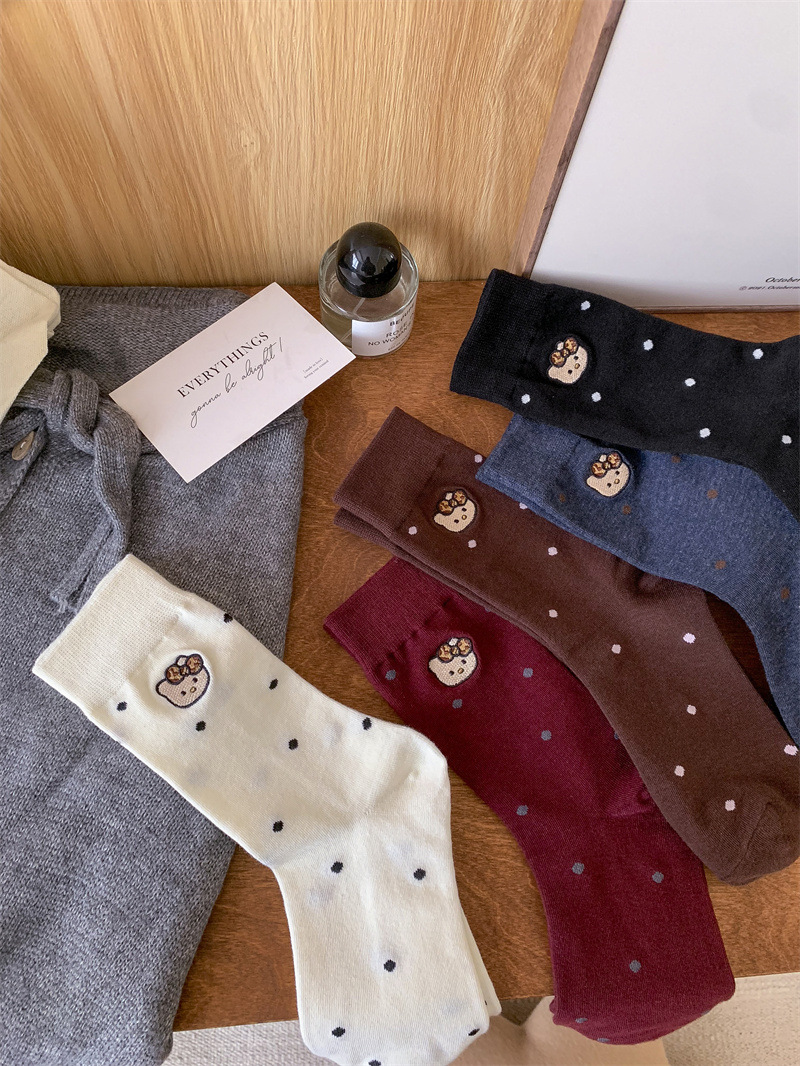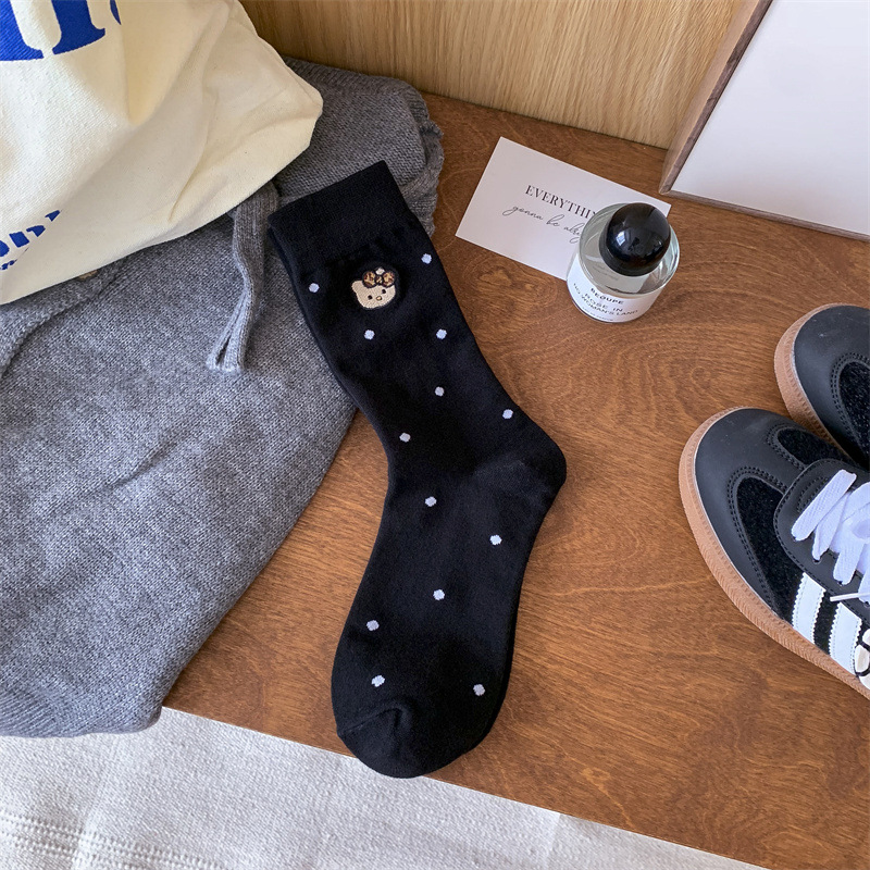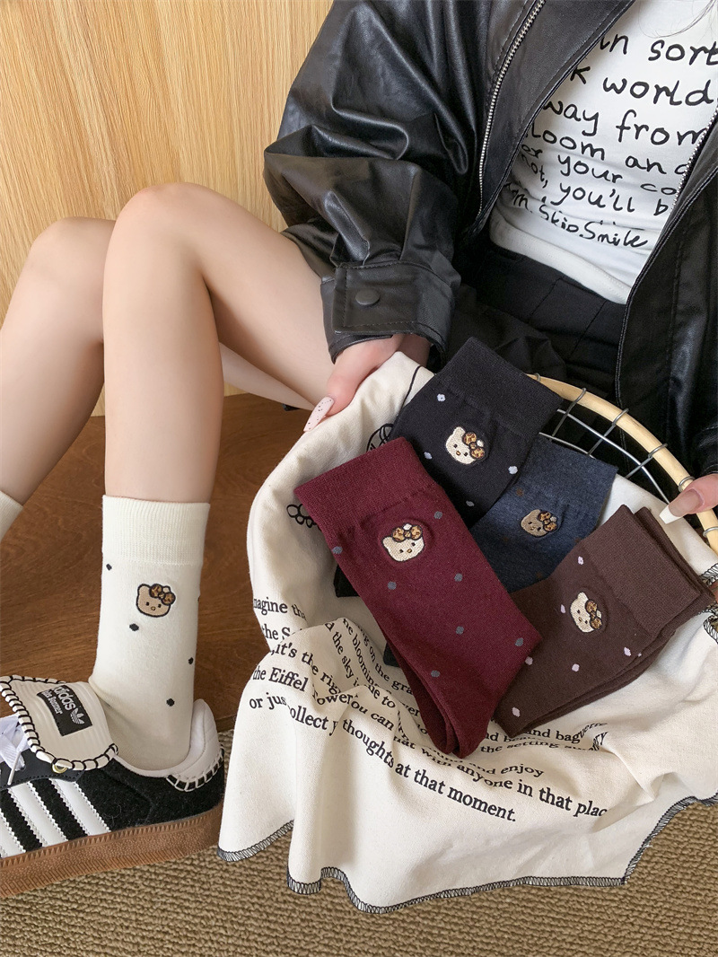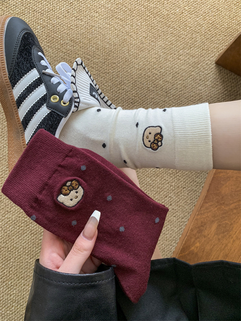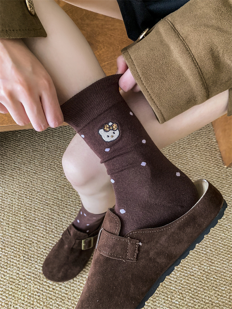 가을 겨울 새로운 귀여운 고양이 수 놓은 포스터 양말 여성을위한 한국 스타일 만화 사이버 연예인 양말 면화 양말