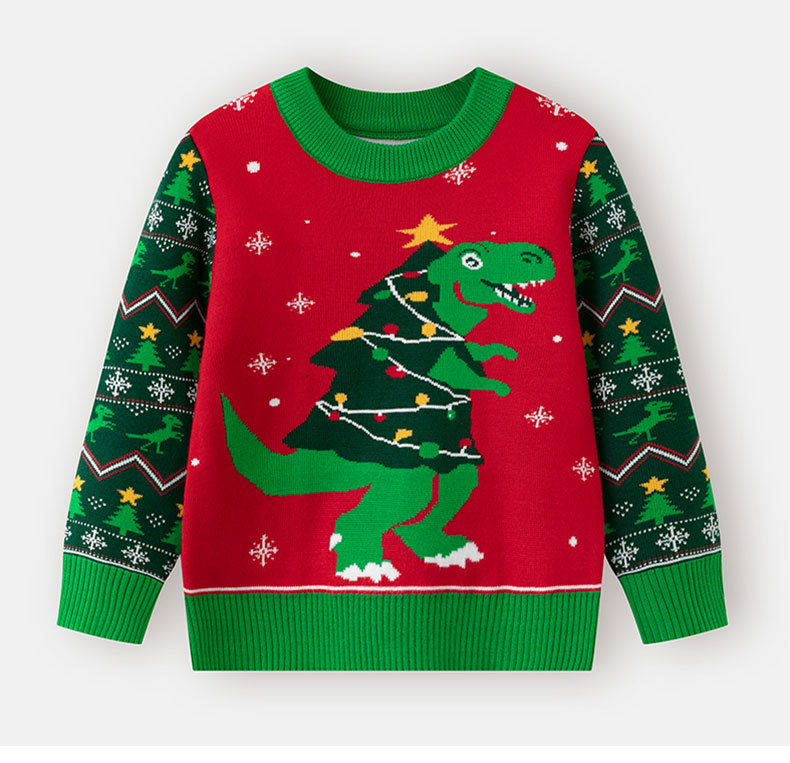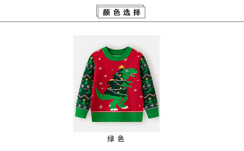 2025년 신상 유럽 및 미국 가을 겨울 어린이 크리스마스 스웨터 남아용 만화 공룡 니트 스웨터스토어 가기