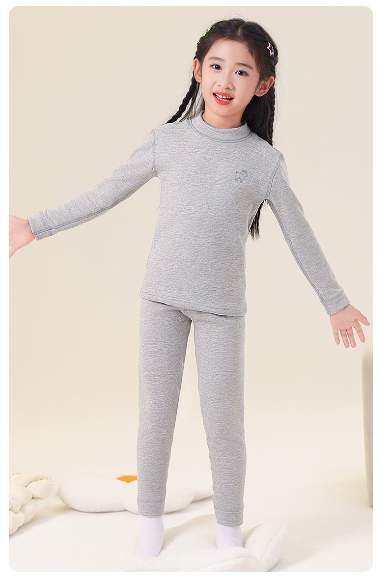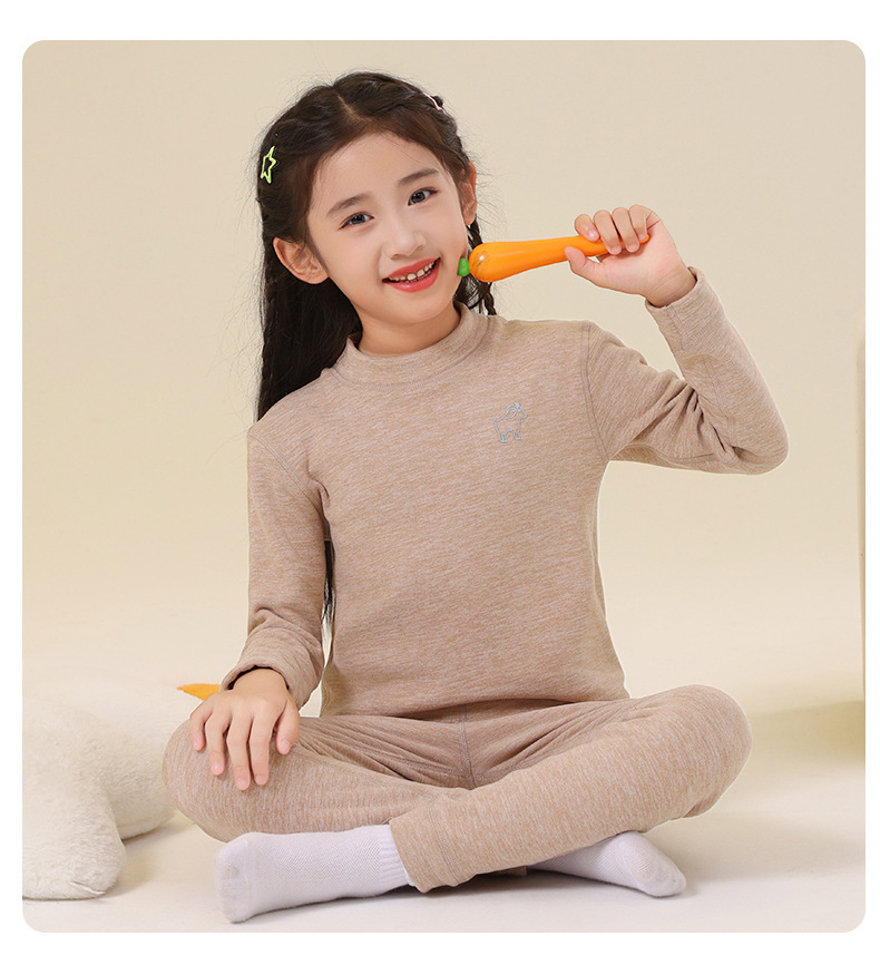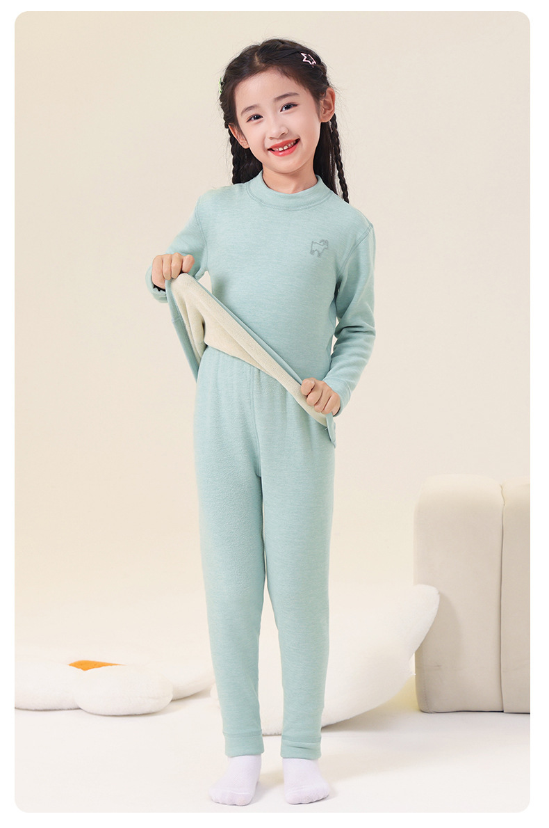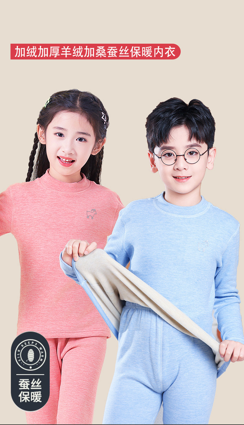2024秋冬儿童羊毛蚕丝保暖内衣套装中大男女童加厚中领家居服睡衣