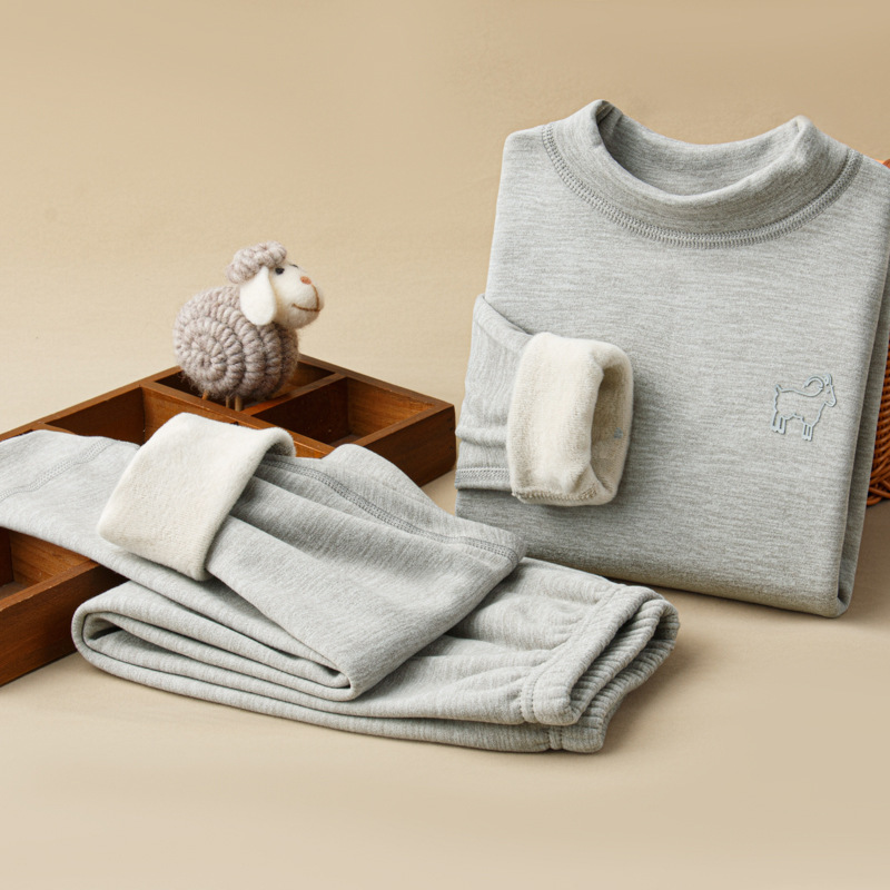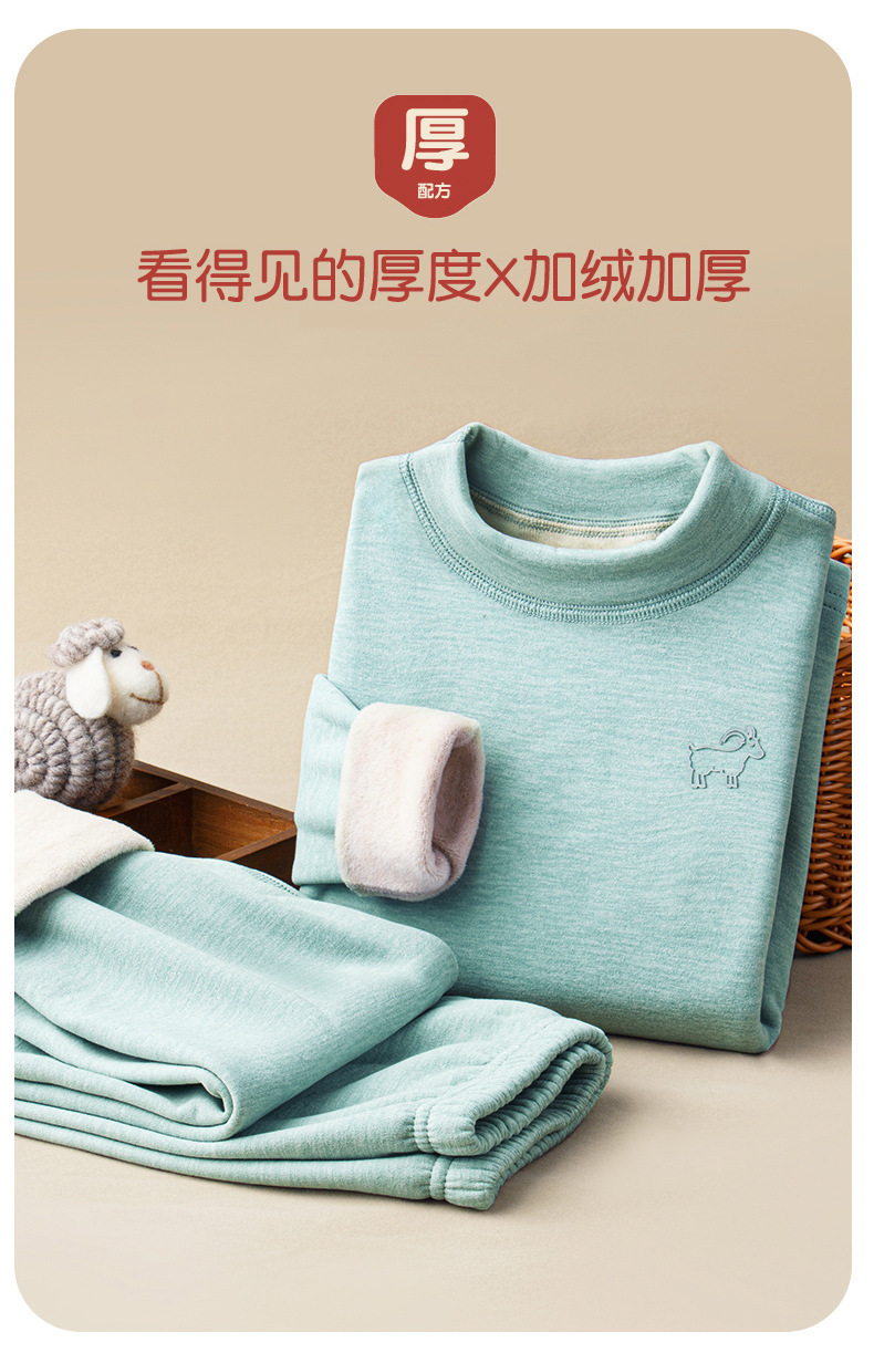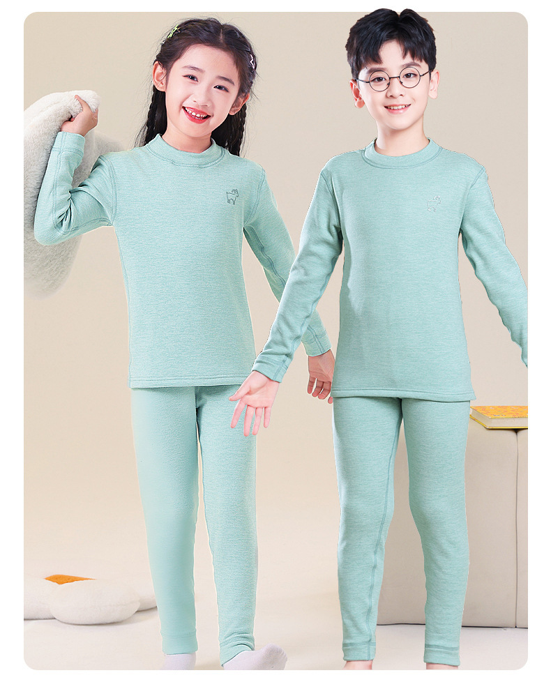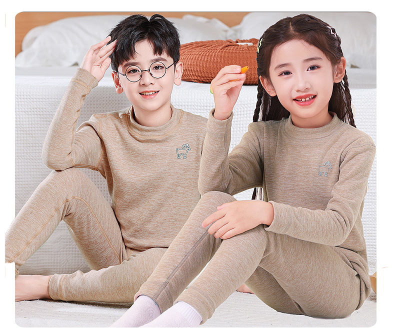 2024秋冬儿童羊毛蚕丝保暖内衣套装中大男女童加厚中领家居服睡衣