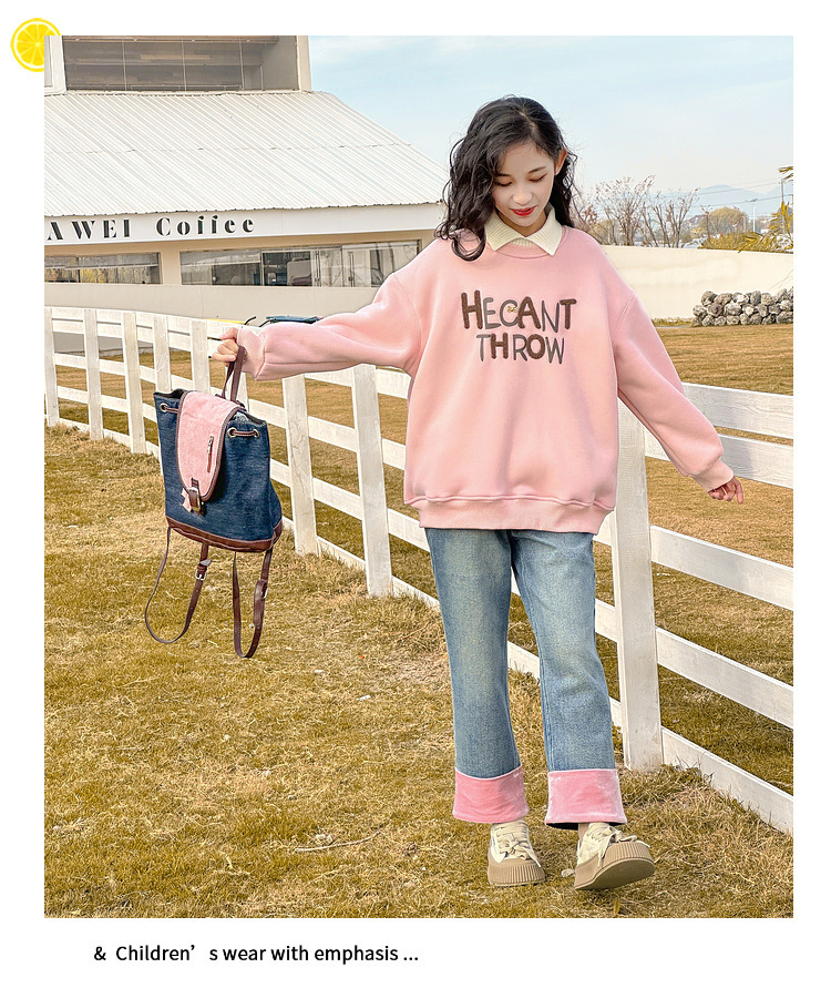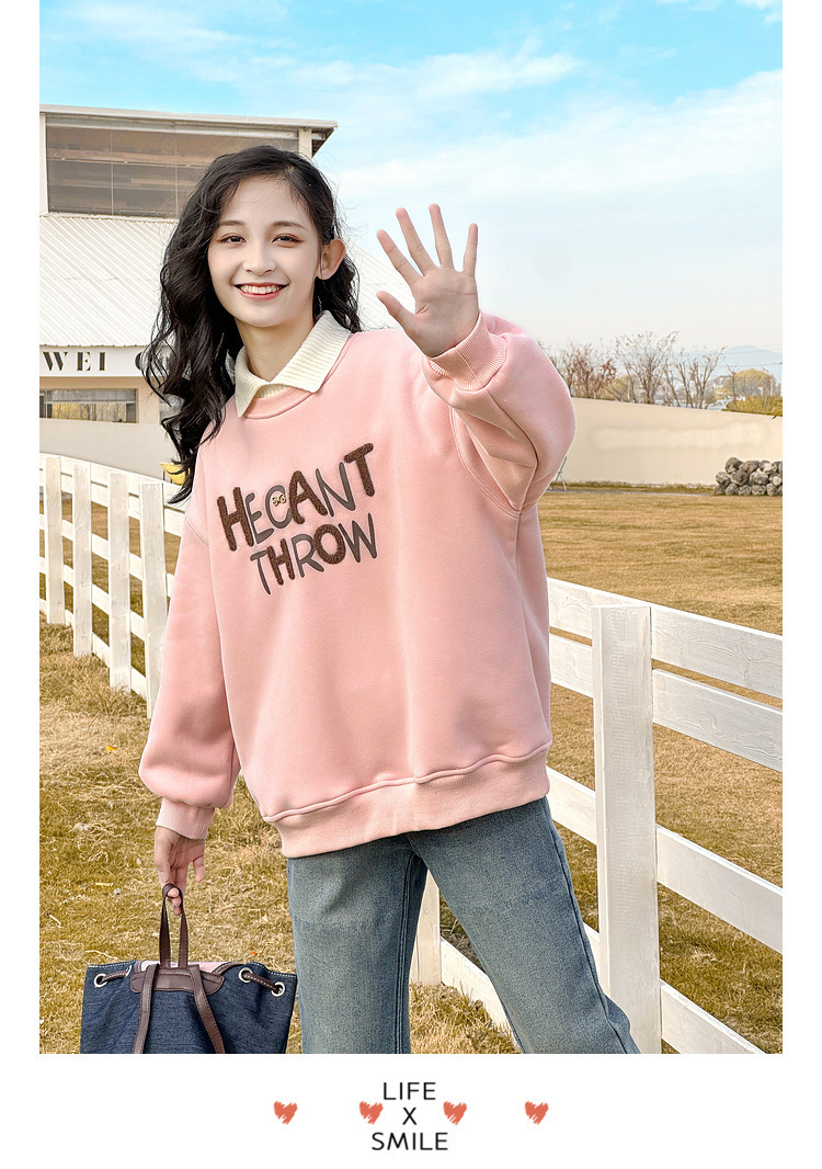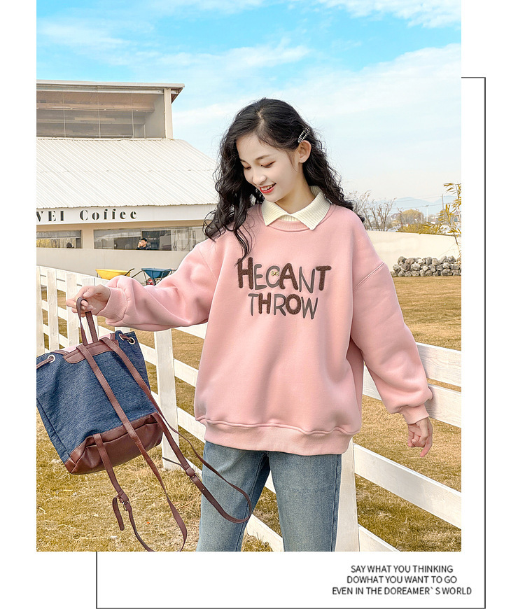 24春季新款儿童卫衣中大女童休闲字母印花圆领上衣假两件批发스토어 가기