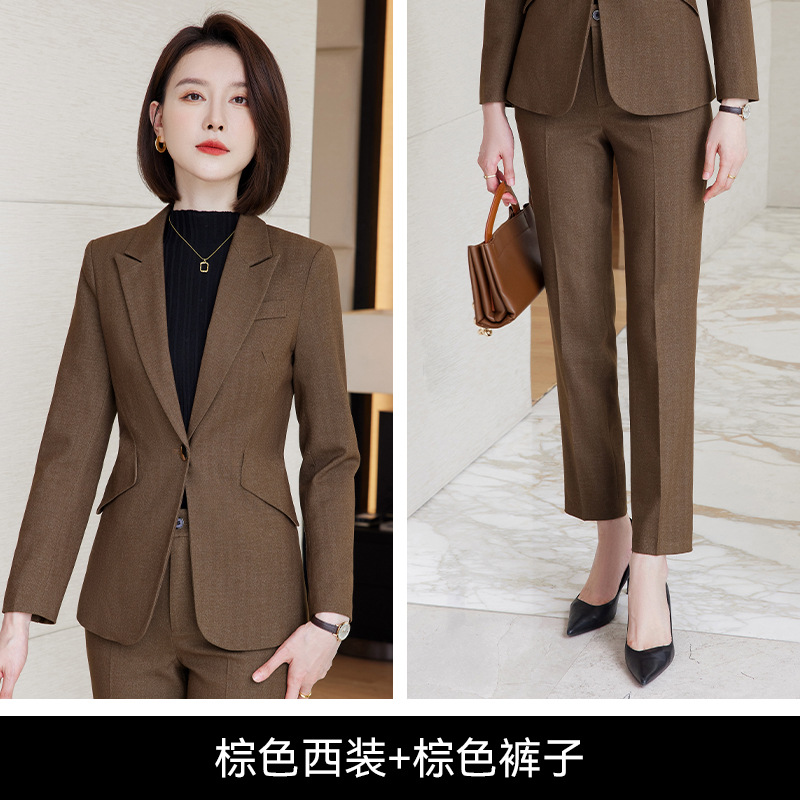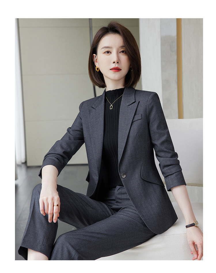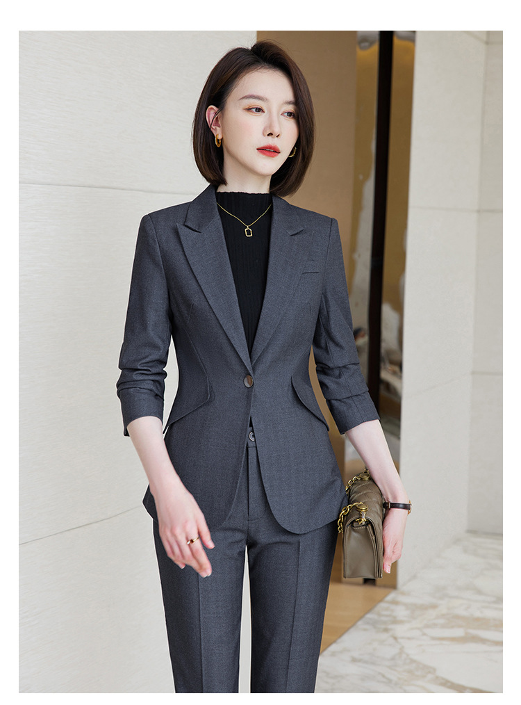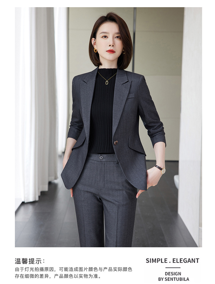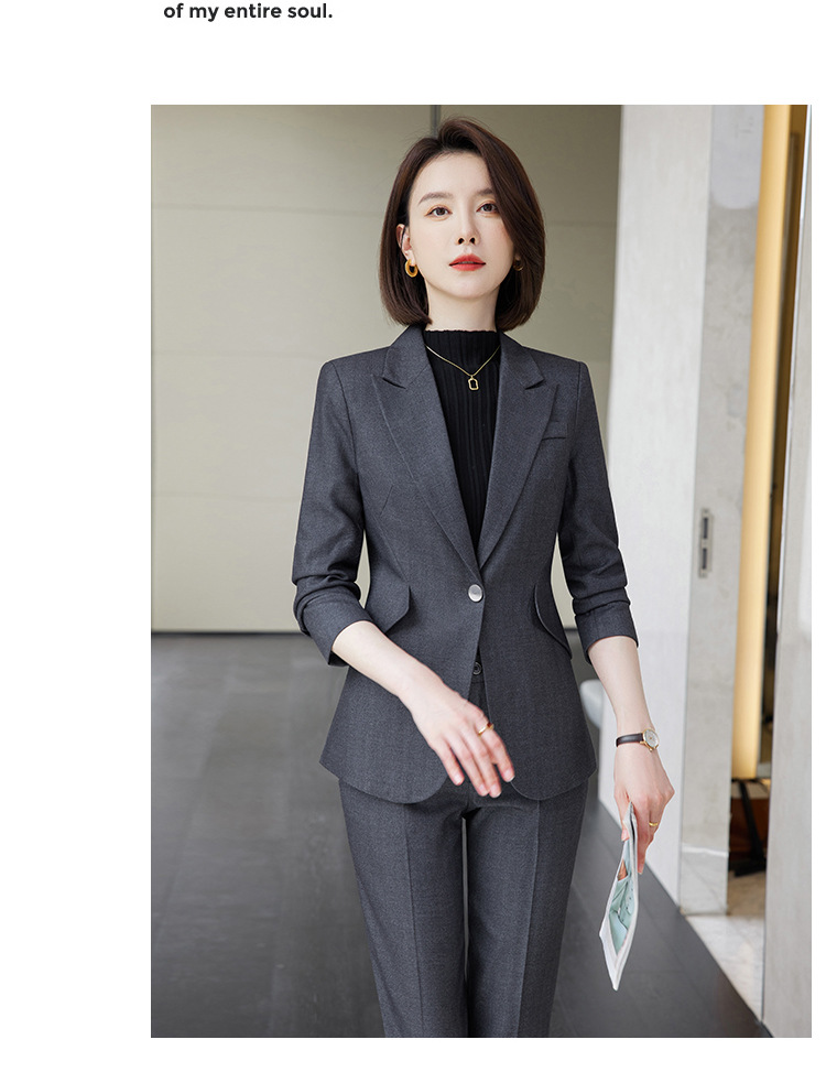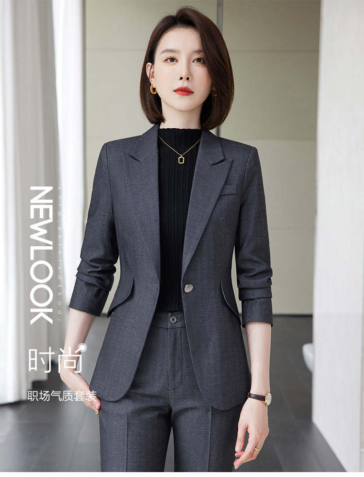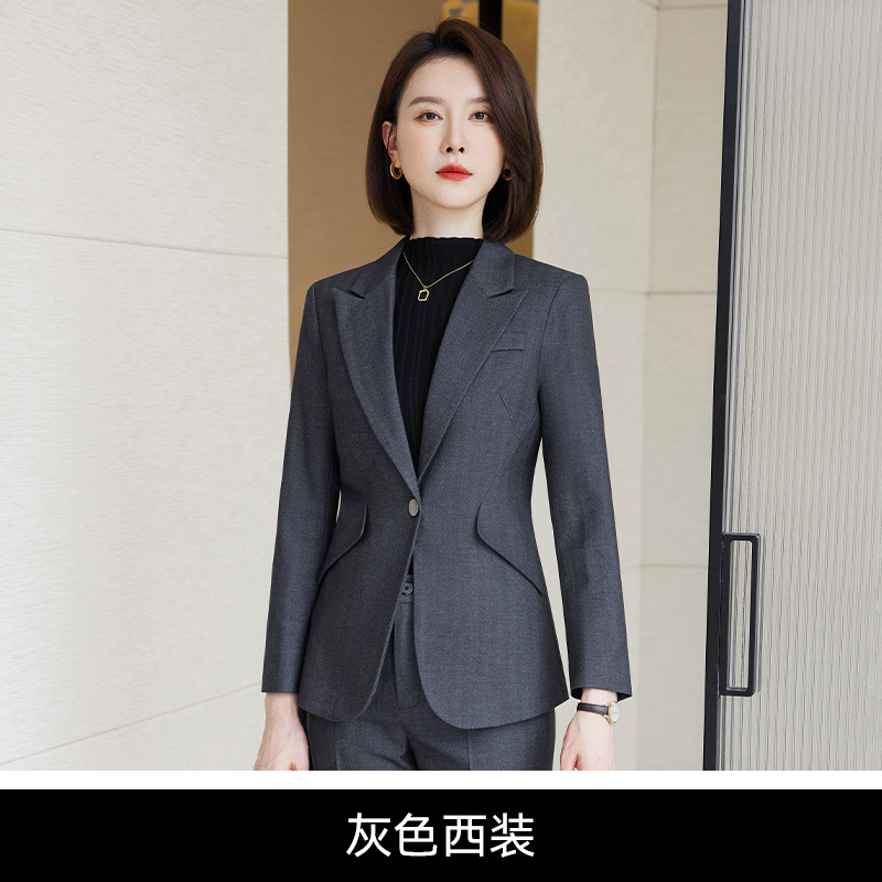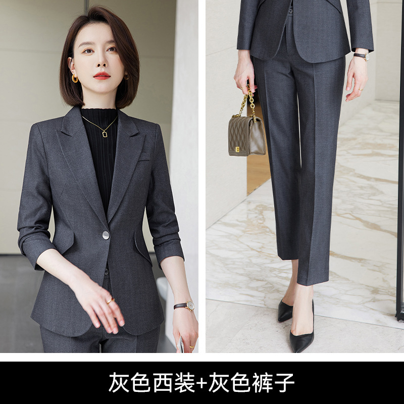 회색 세트 세트 여성의 봄과 가을 비즈니스 패션 기질 여신 팬 하이 엔드 원피스 세트 관리자 작업 옷