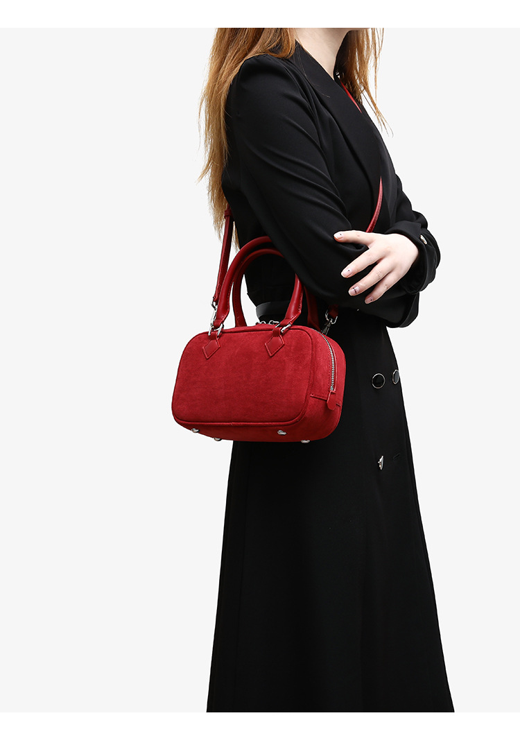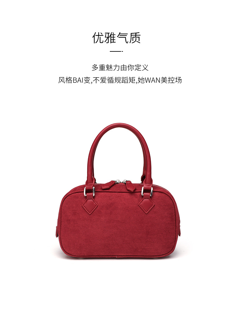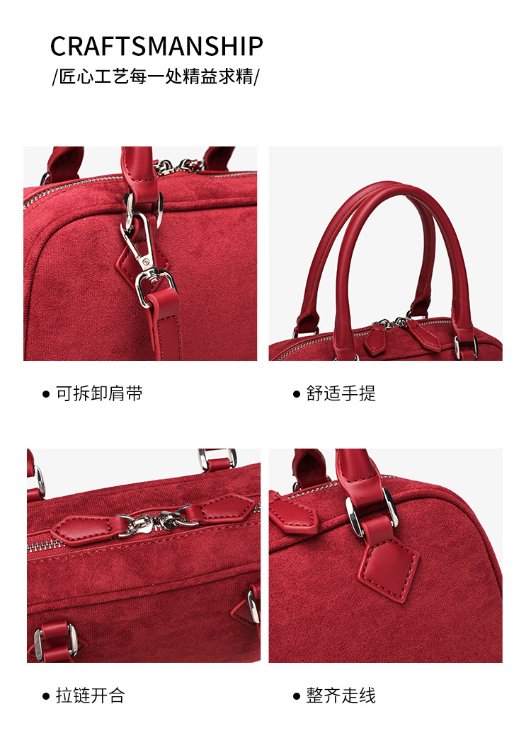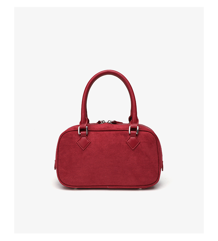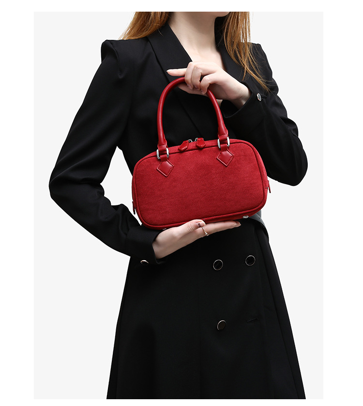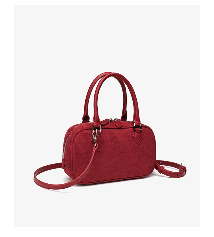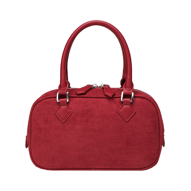 니치 레트로 스웨이드 보스턴 가방 핸드백 여성 2024 가을 고급 레드 신부 웨딩 백 통근 크로스 바디 백