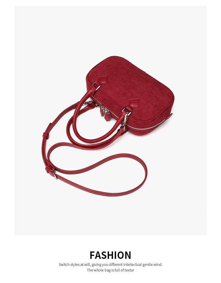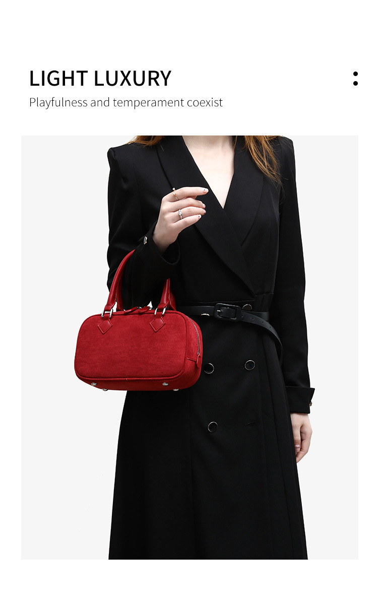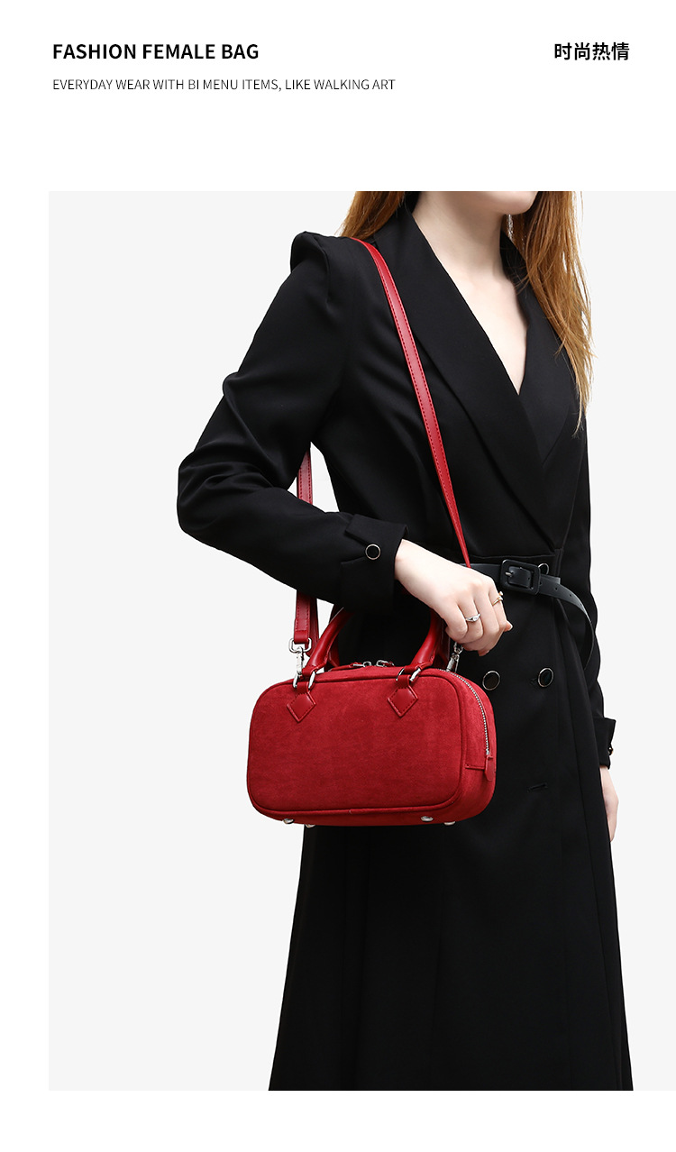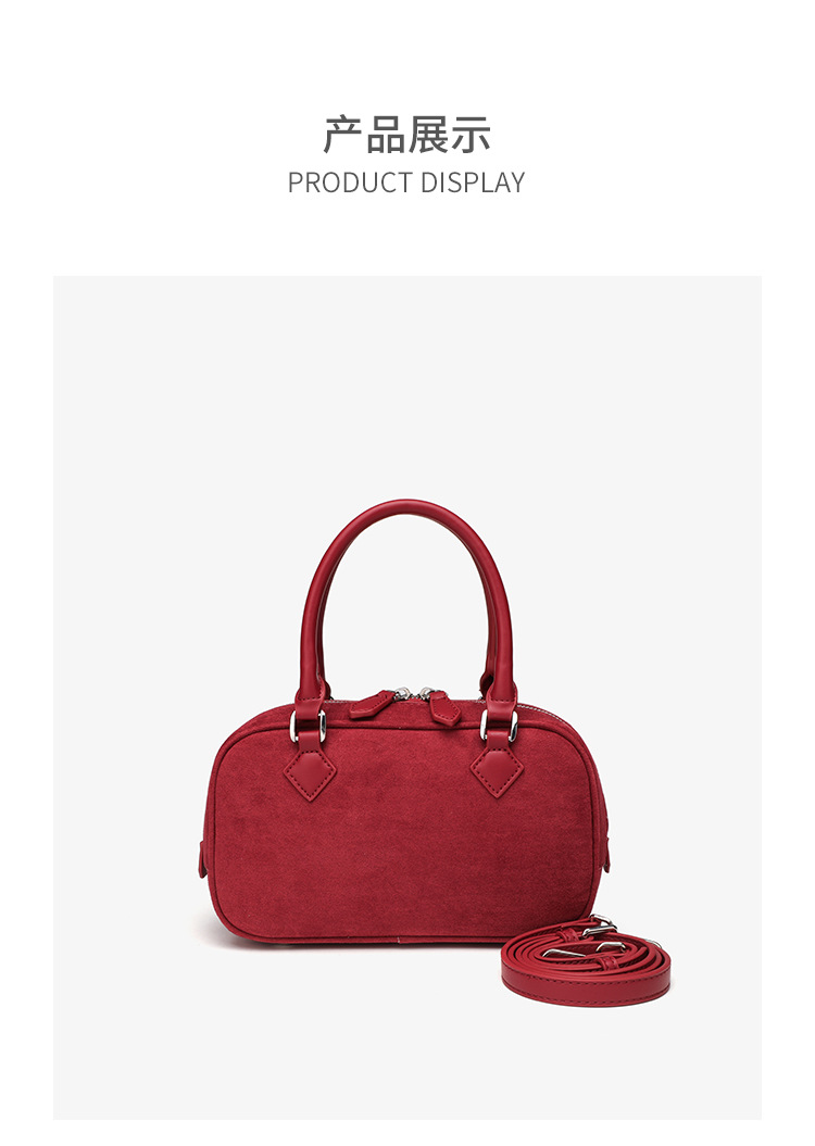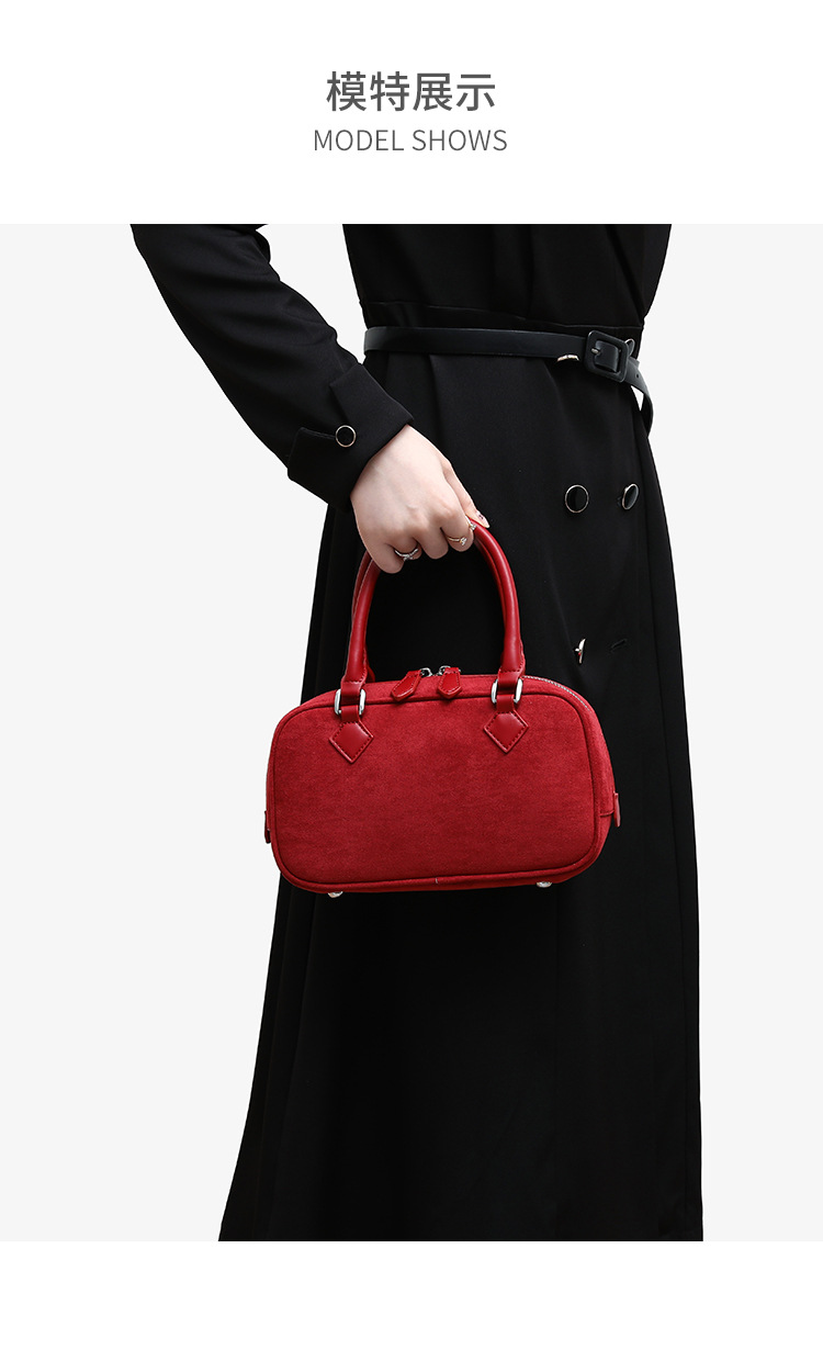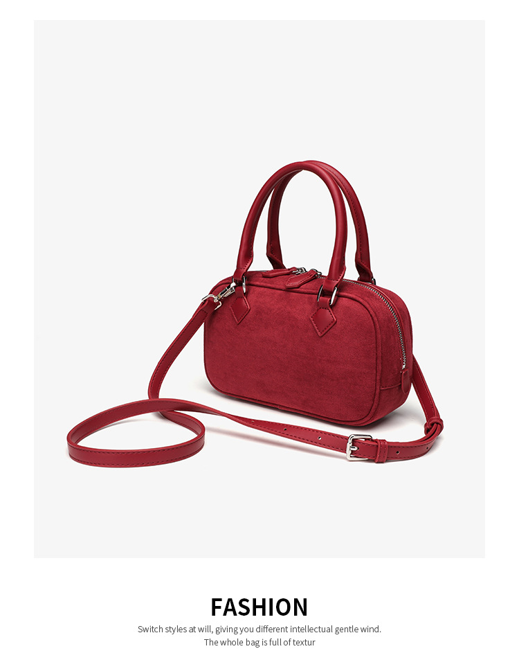 니치 레트로 스웨이드 보스턴 가방 핸드백 여성 2024 가을 고급 레드 신부 웨딩 백 통근 크로스 바디 백