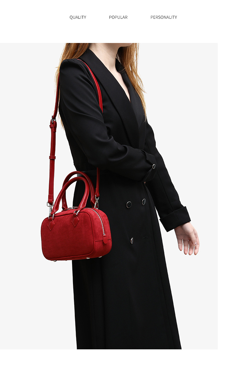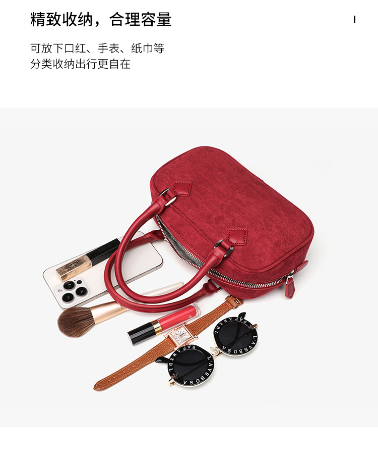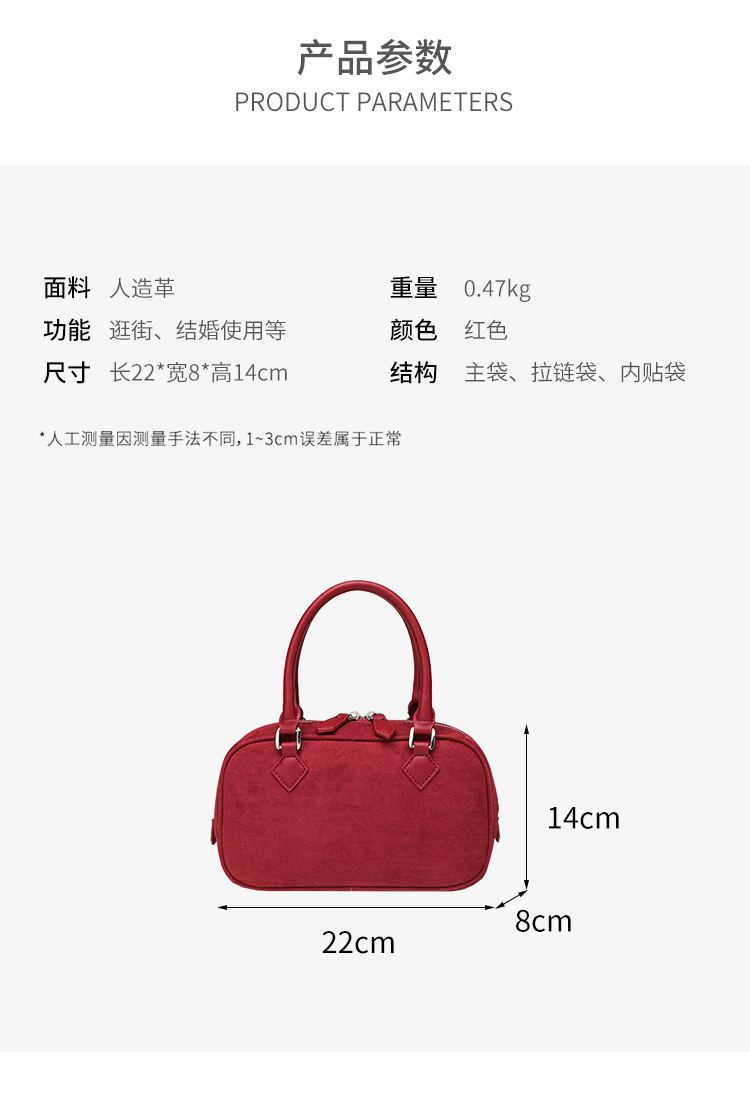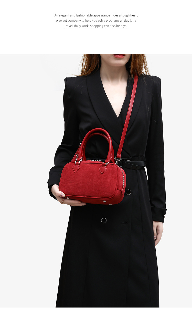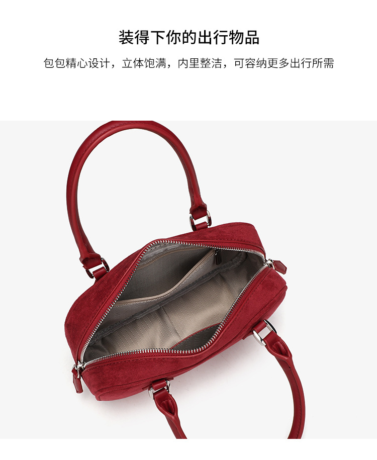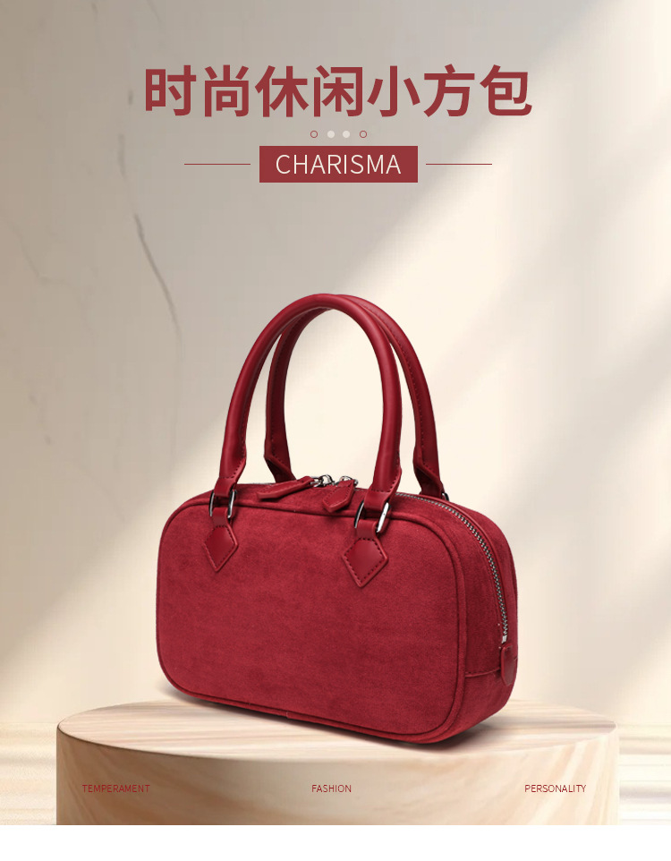 니치 레트로 스웨이드 보스턴 가방 핸드백 여성 2024 가을 고급 레드 신부 웨딩 백 통근 크로스 바디 백