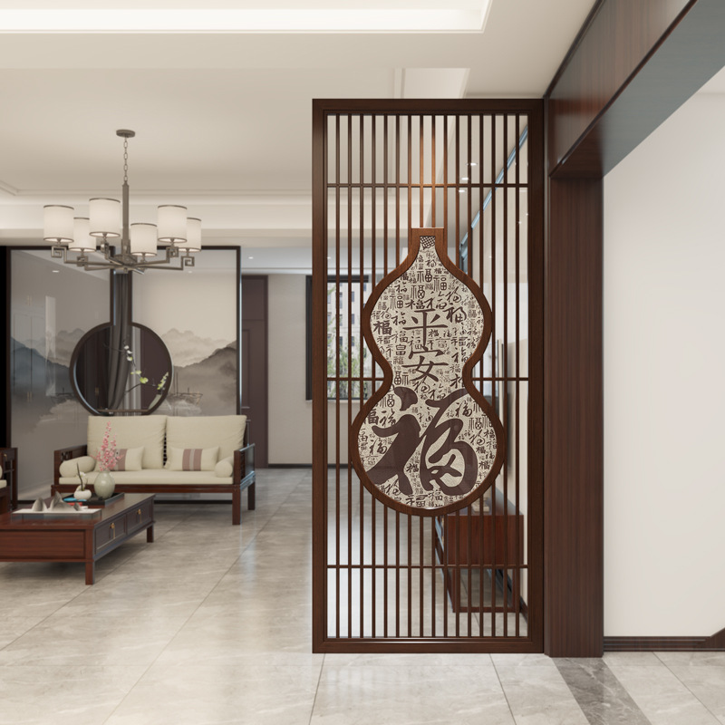 신중국풍 현관 화분형 스크린 칸막이 원목 격자문 입구 거실 가림막 그릴 장식 문화