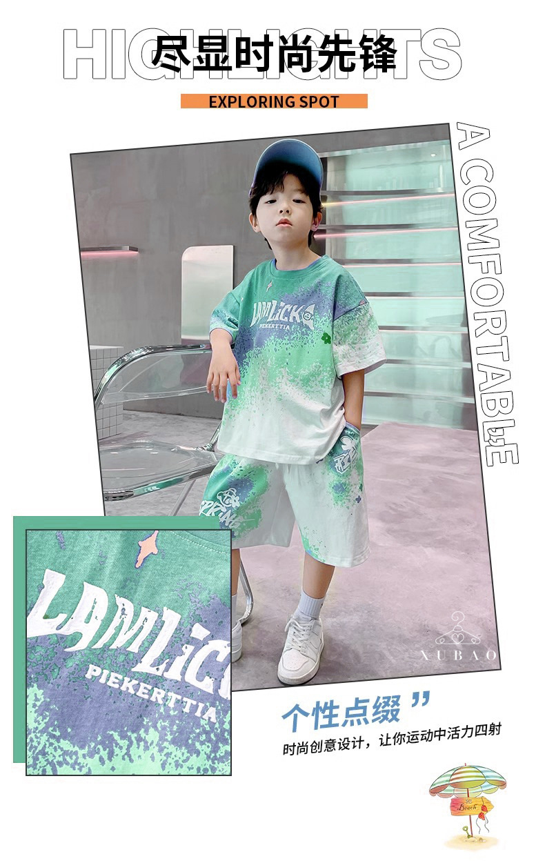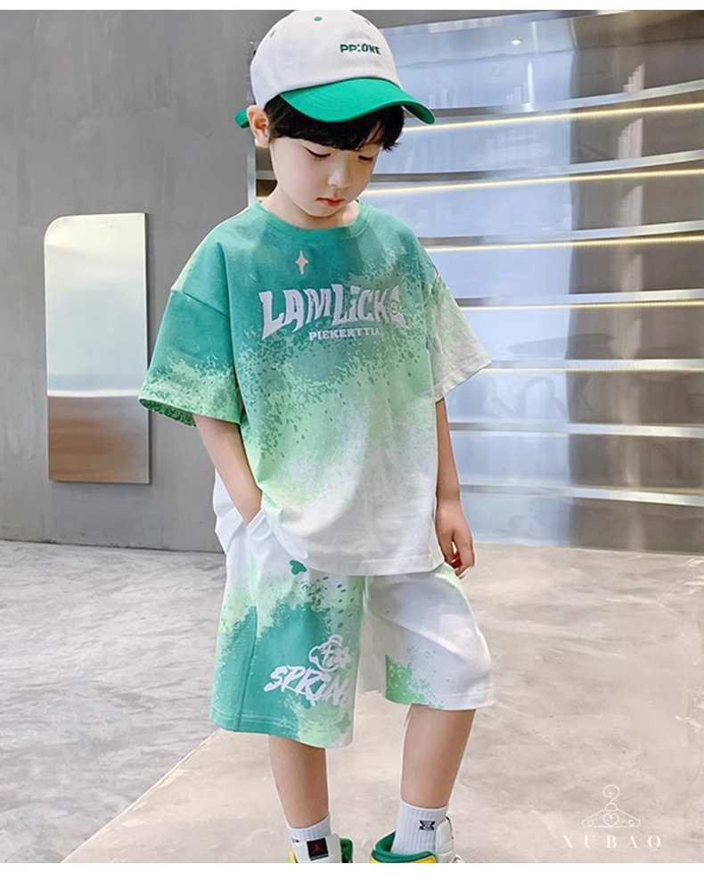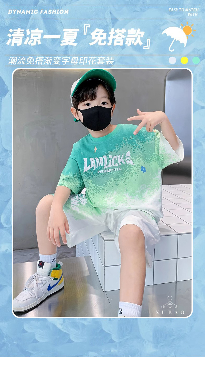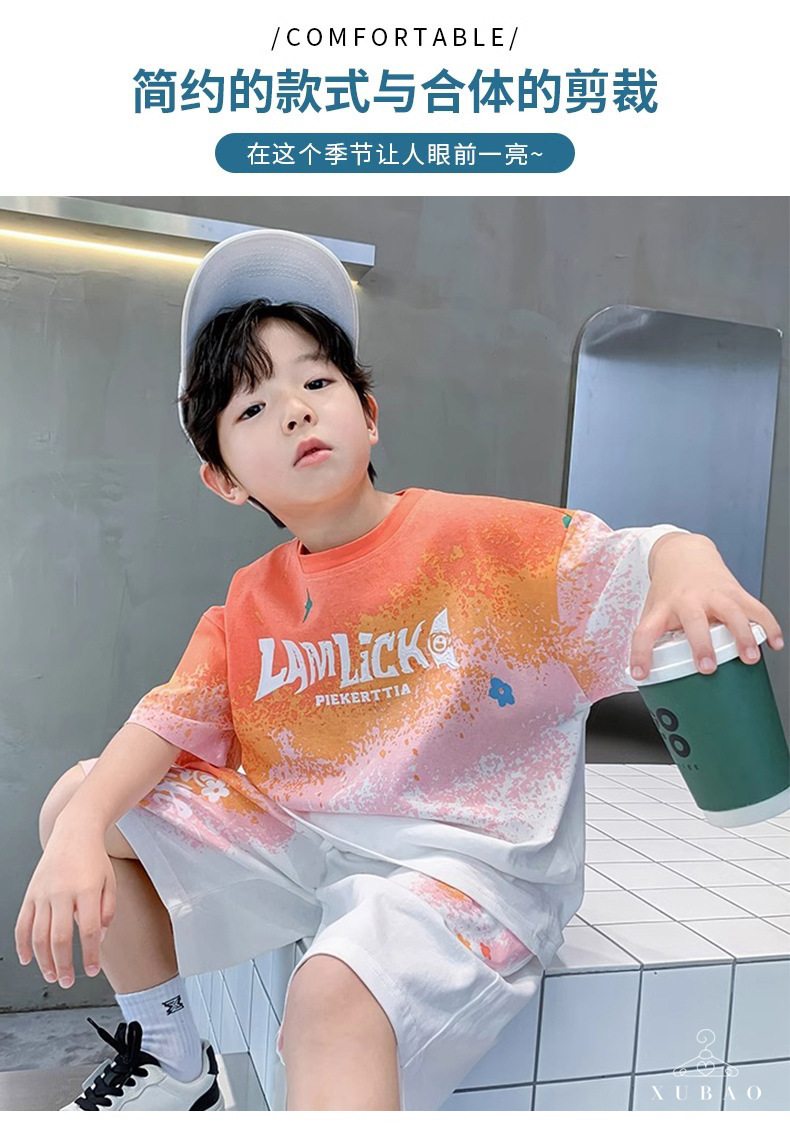 2024夏季儿童运动短袖套装潮范渐变色字母男童帅气T恤短裤两件套스토어 가기