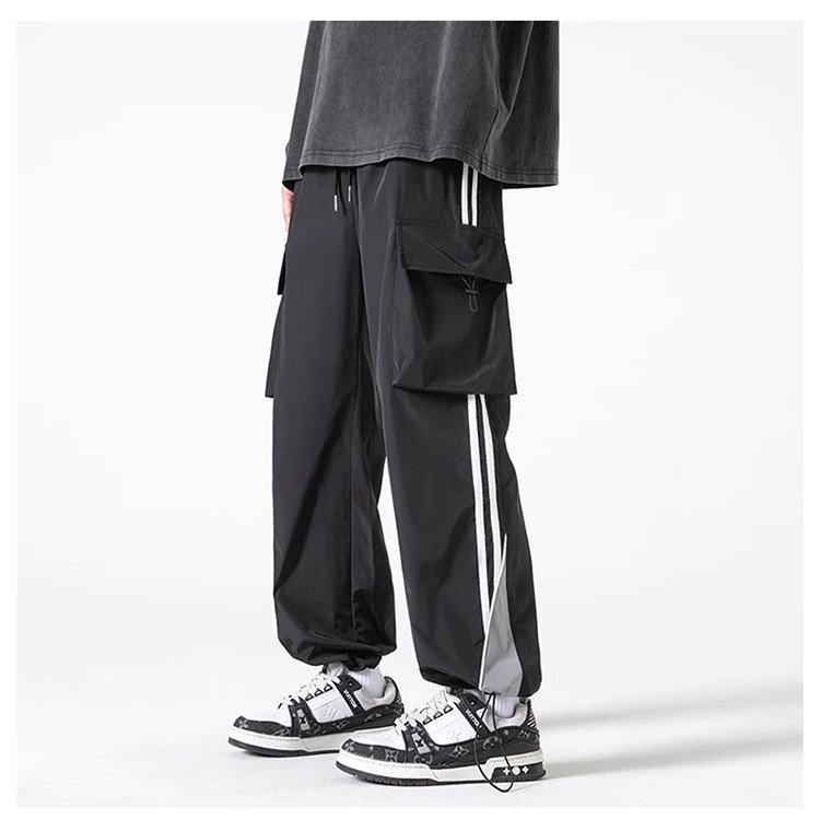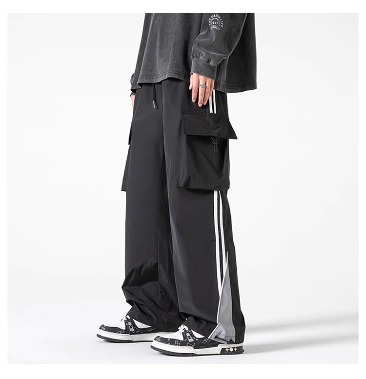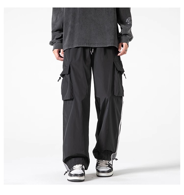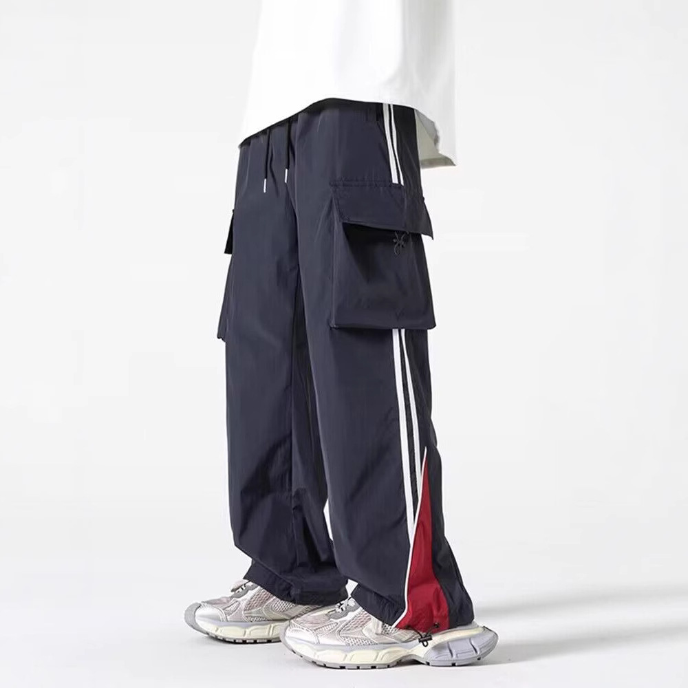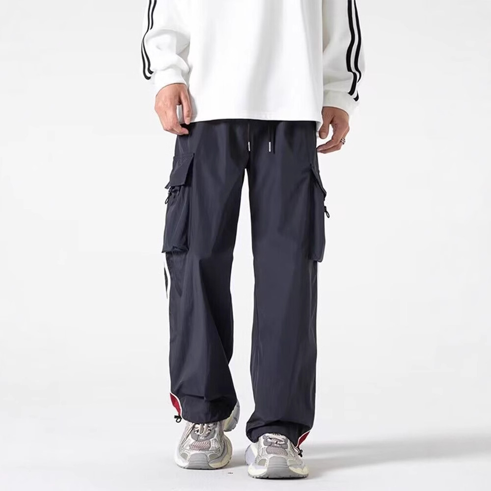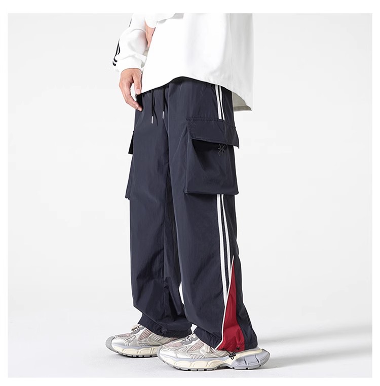아메리칸 스타일 크레인 바지 남성 봄과 가을 트렌디 한 브랜드 스티칭 대조 캐주얼 바지 기능성 스타일 복고풍 낙하산 바지