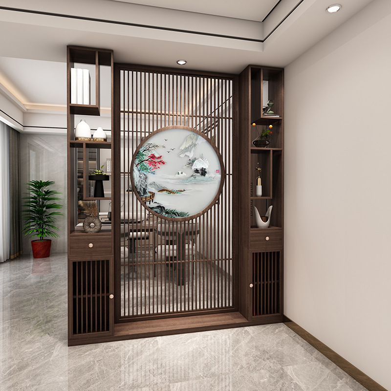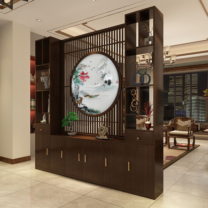 새로운 중국식 파티션 스크린 입구 문 저장 랙 거실 입구 복도 홀 단단한 나무 입구 캐비닛 화면스토어 가기