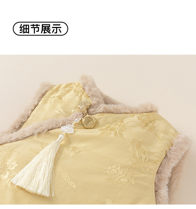 유바오 아동복 겨울 소녀 기모 조끼 겨울 새 어린이 새 중국 국가 스타일 탕 원피스 아기 소녀 조끼