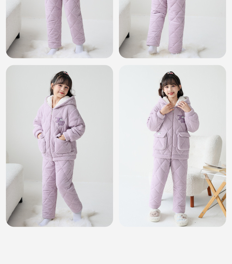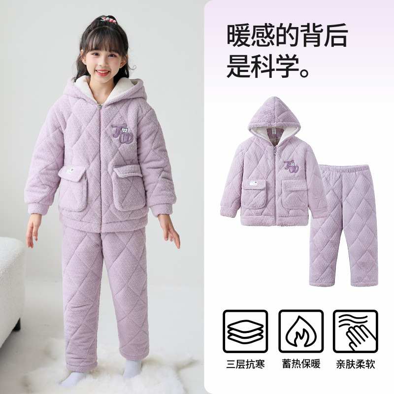 겨울 어린이 잠옷 소녀의 산호 양털 3 층 두꺼운 면 퀼트 중형 어린이 겨울 플란넬 소녀의 집 옷