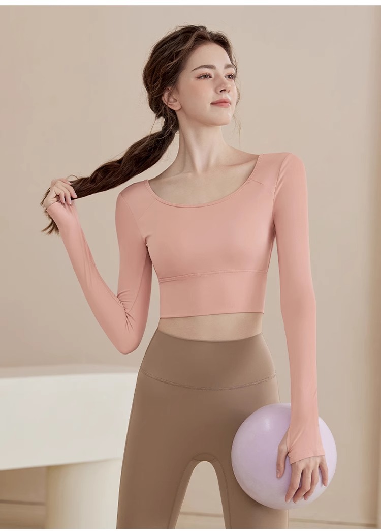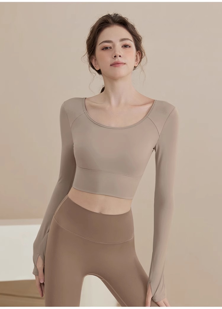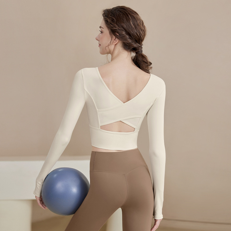 요가 의류 2024 새로운 스타일 여성용 긴팔 크로스 백 슬리밍 스포츠 긴팔 피트니스 의류스토어 가기