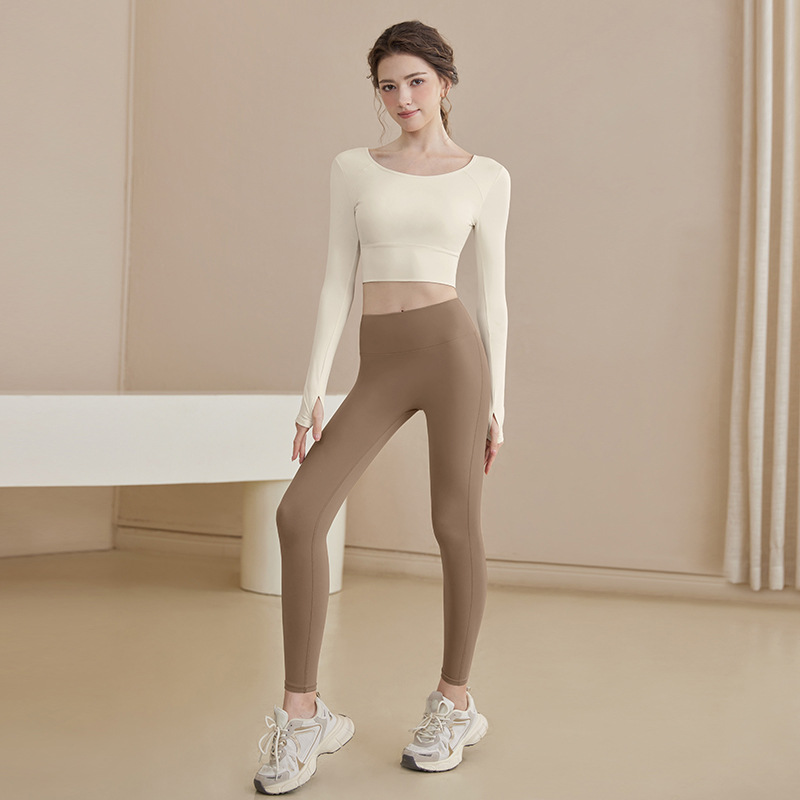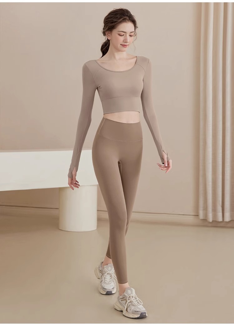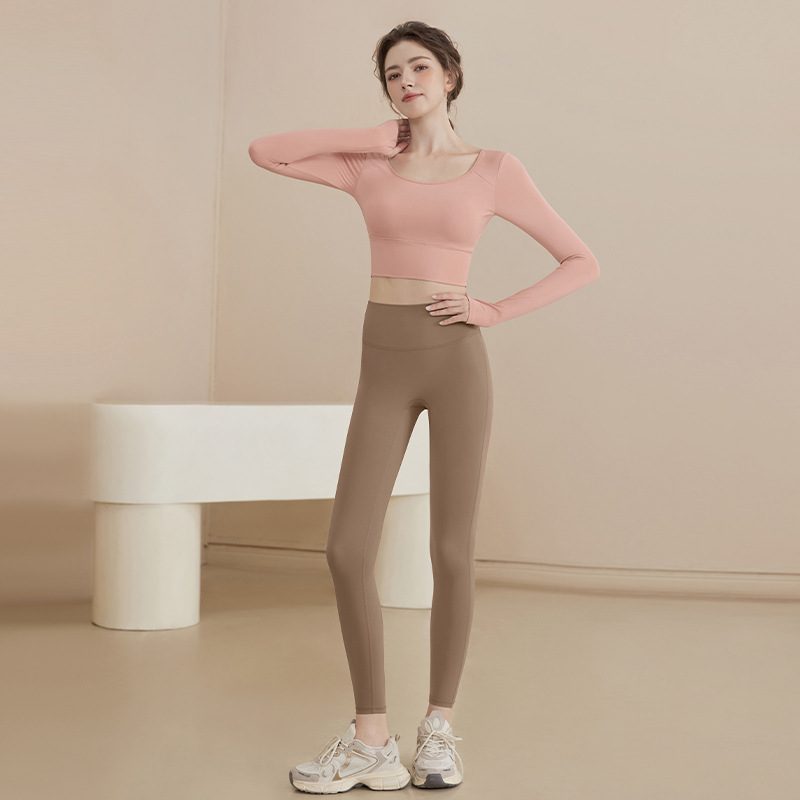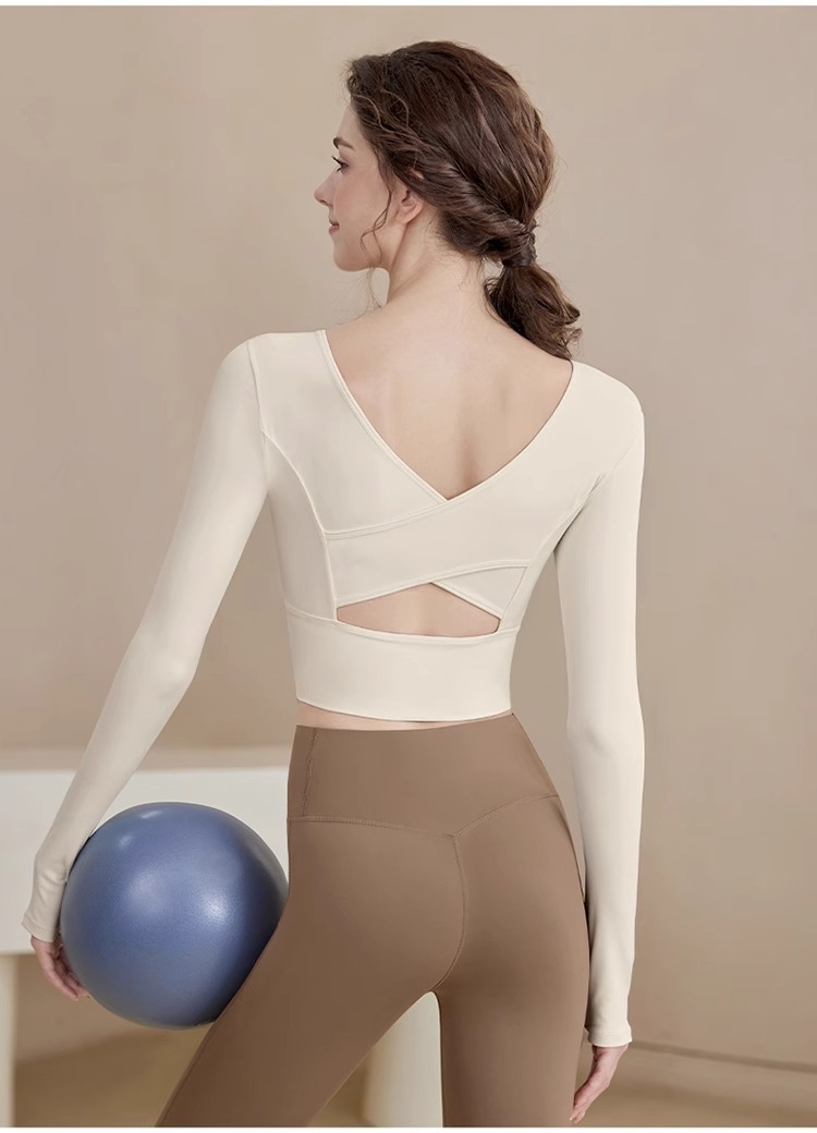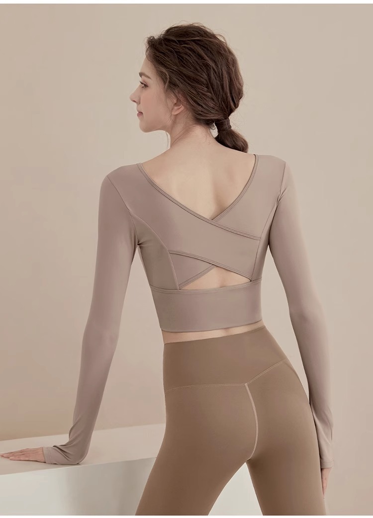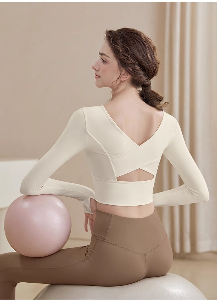 요가 의류 2024 새로운 스타일 여성용 긴팔 크로스 백 슬리밍 스포츠 긴팔 피트니스 의류
