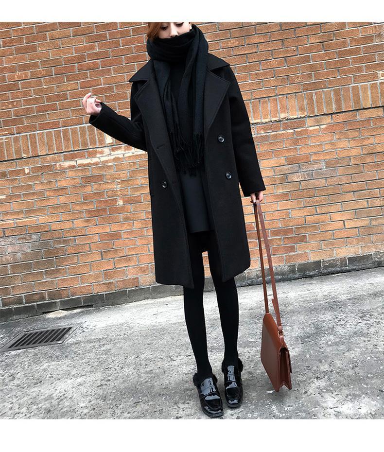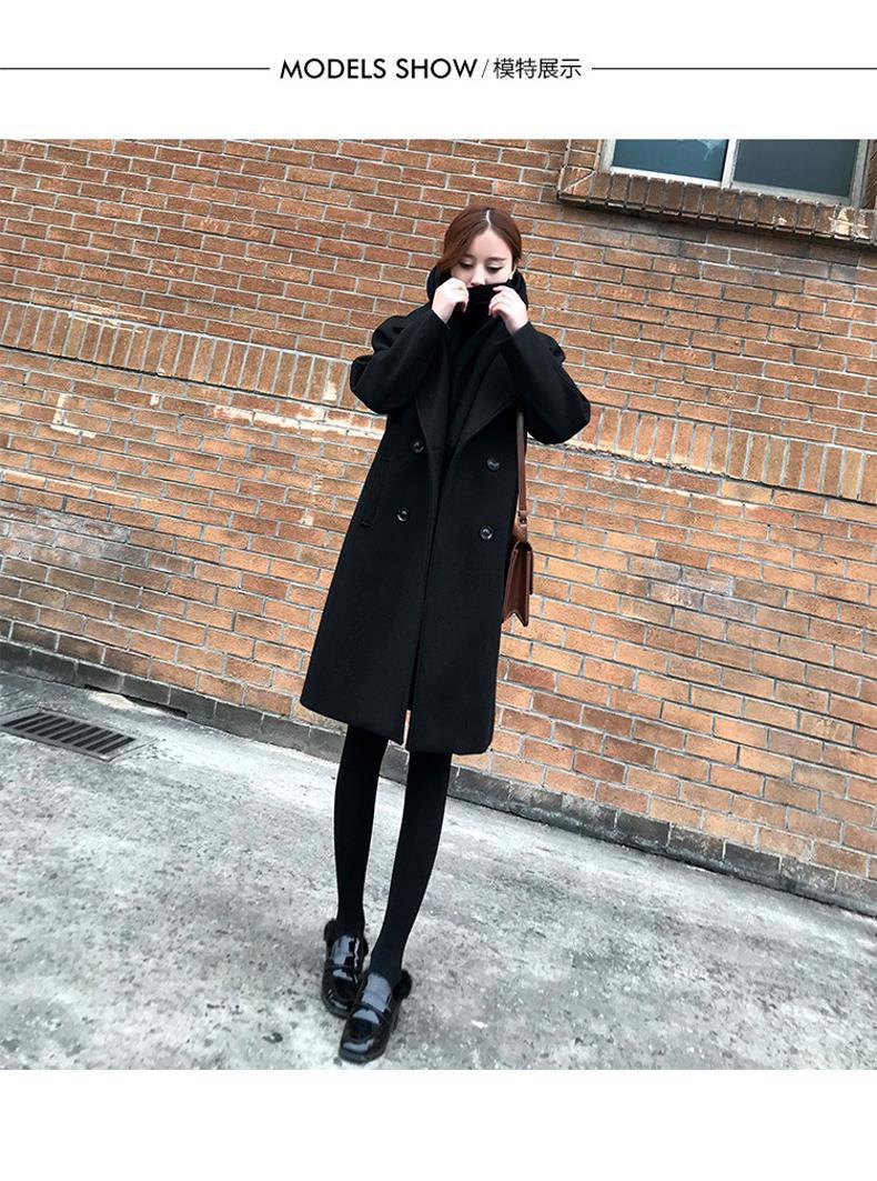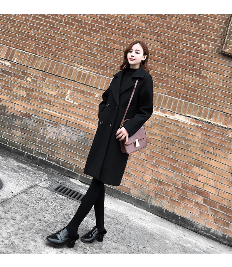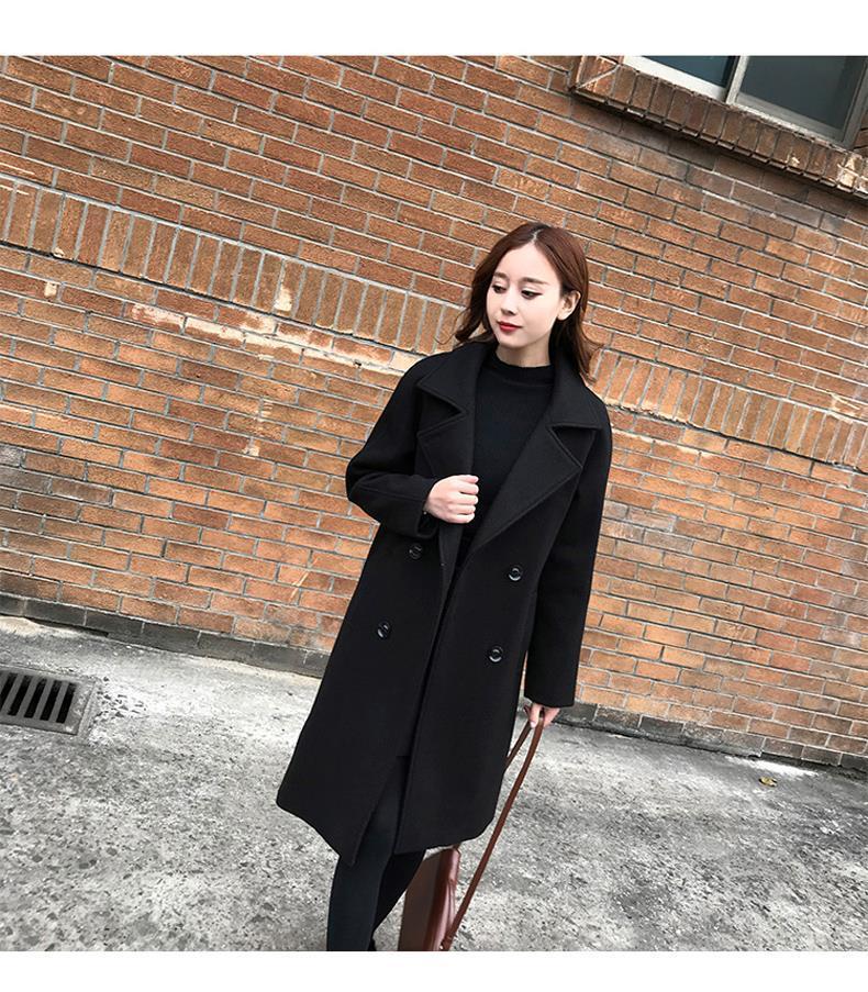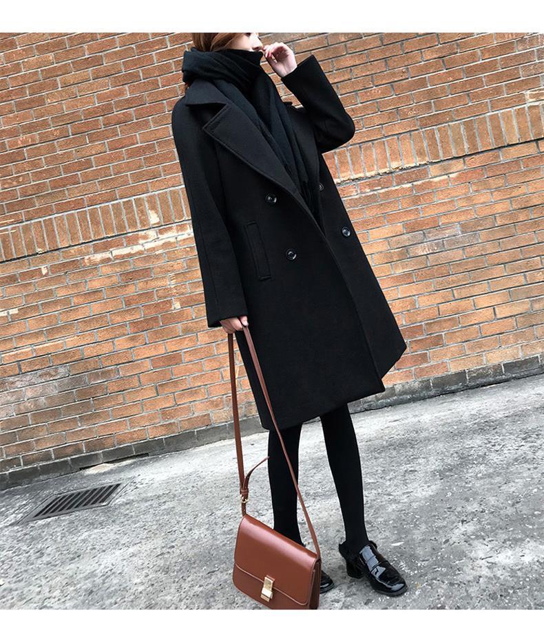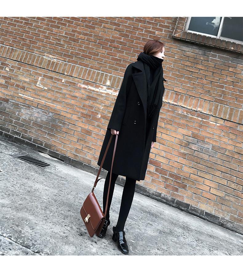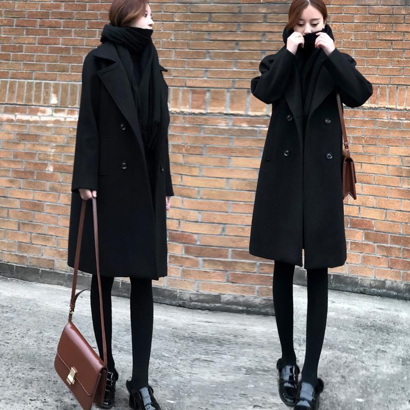 검은 모직 코트 여성의 중간 길이 2020 가을과 겨울 새 가슴 슬림 작은 우아한 모직 코트 년스토어 가기