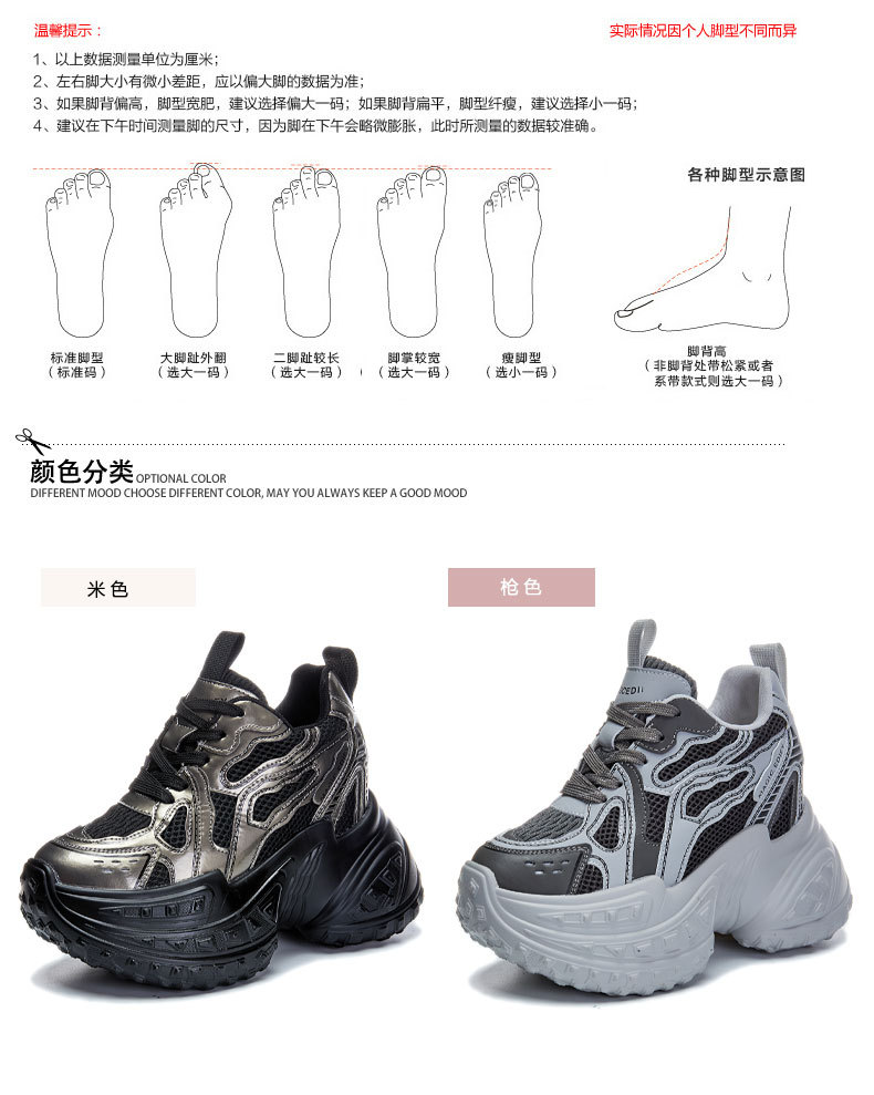 내부 높이 여성 신발 12cm 새로운 통기성 토르 신발 두꺼운 단독 메쉬 작은 스포츠 캐주얼 신발 여성 A8936스토어 가기